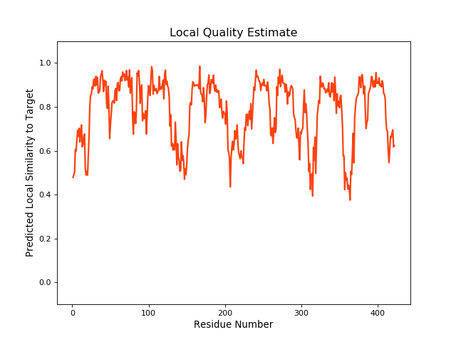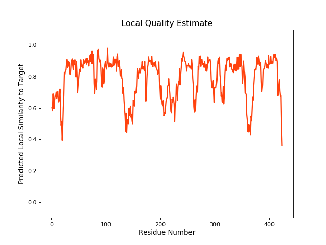 ![]() Ramz Z Score:-1.71 ±0.35 Residues in Favored Region:399 Ramachandran favored:94.77% Number of Outliers:3 Ramachandran outliers:0.71% |