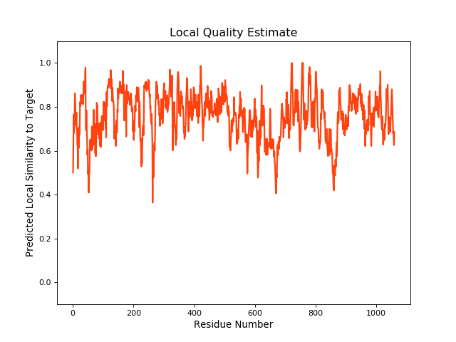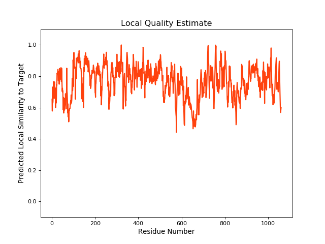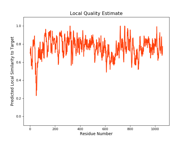 ![]() Ramz Z Score:-0.85 ±0.24 Residues in Favored Region:1024 Ramachandran favored:96.79% Number of Outliers:1 Ramachandran outliers:0.09% |