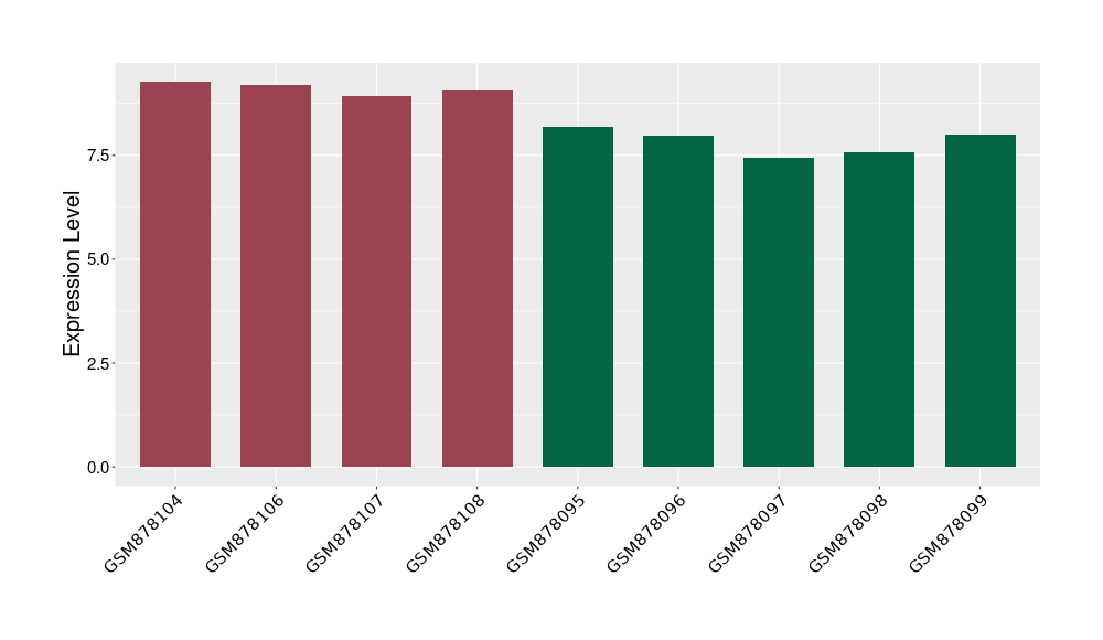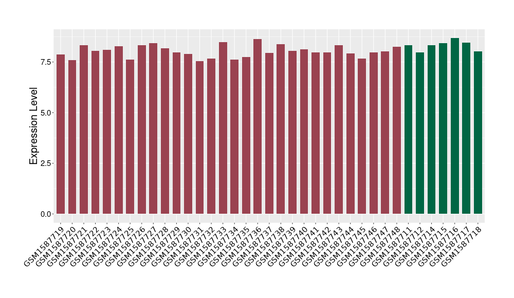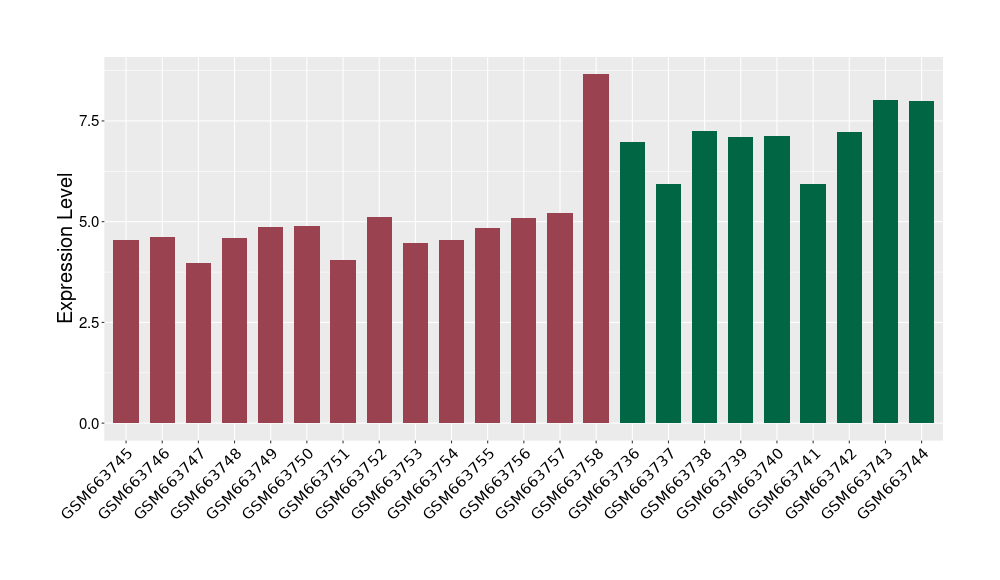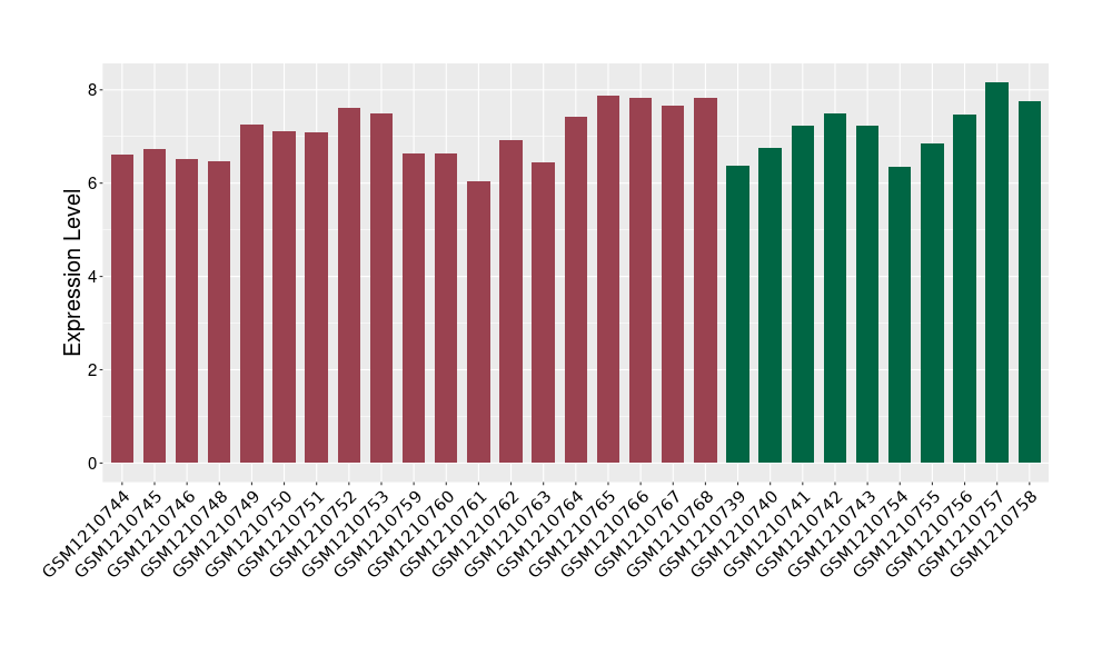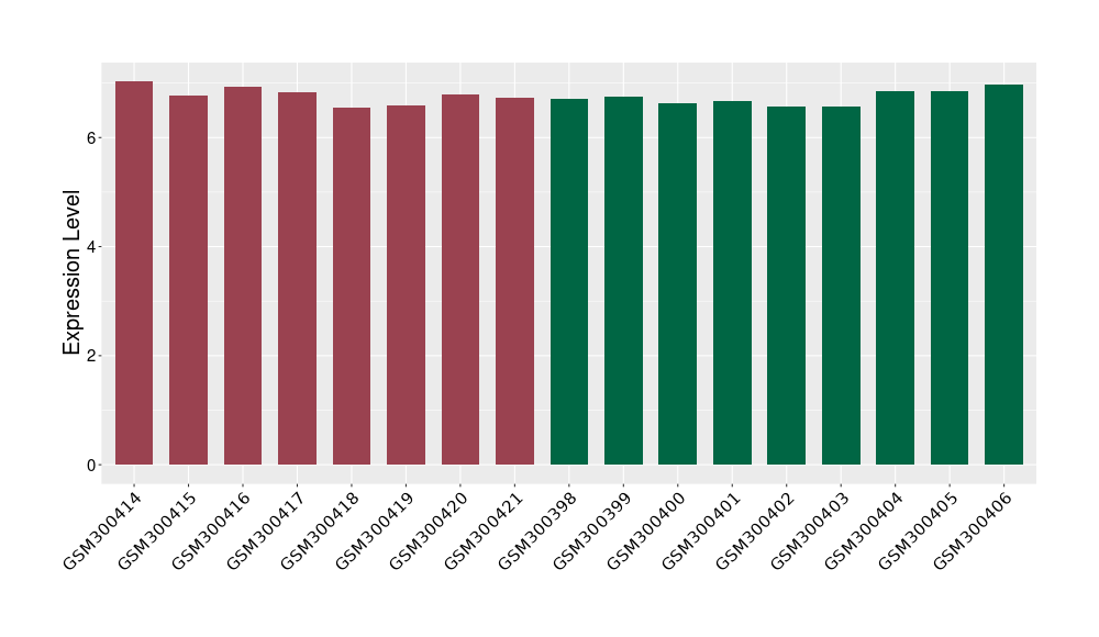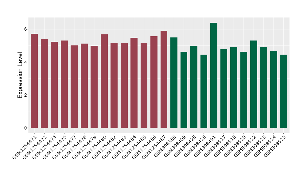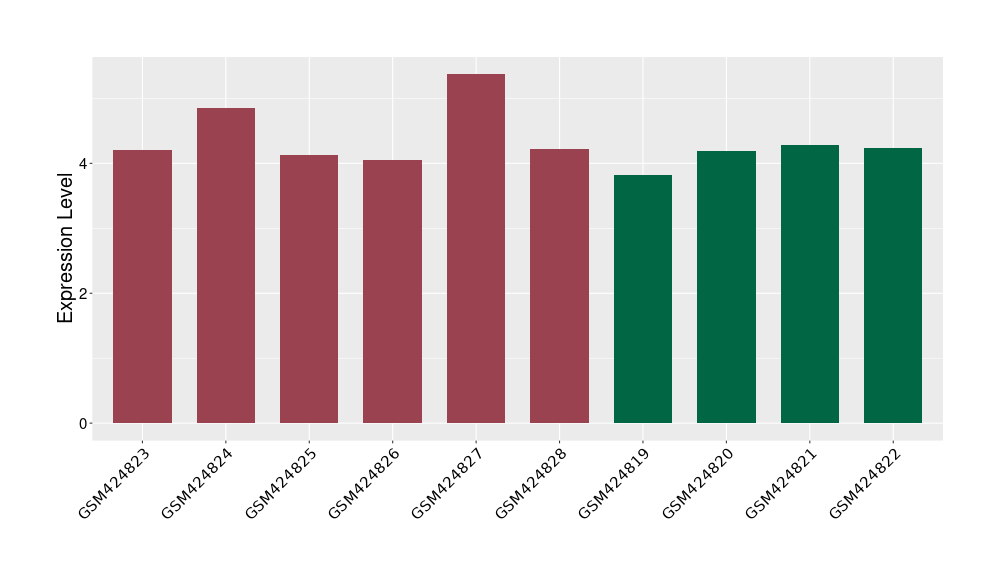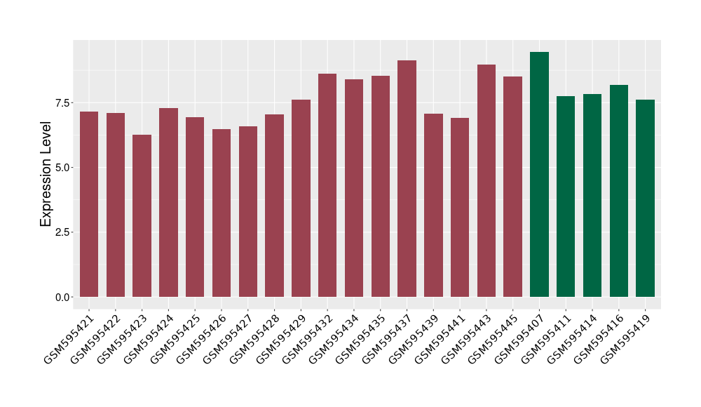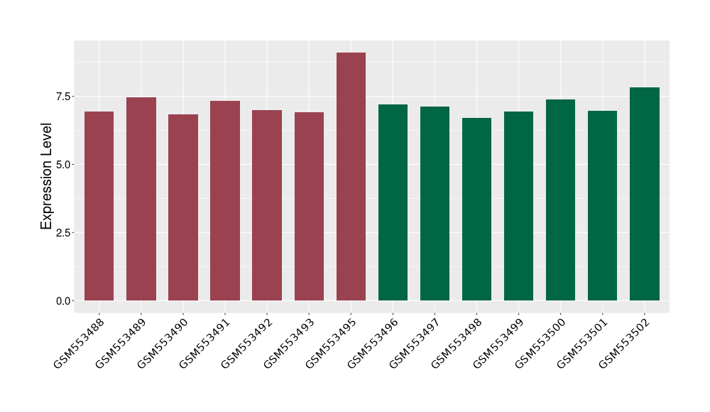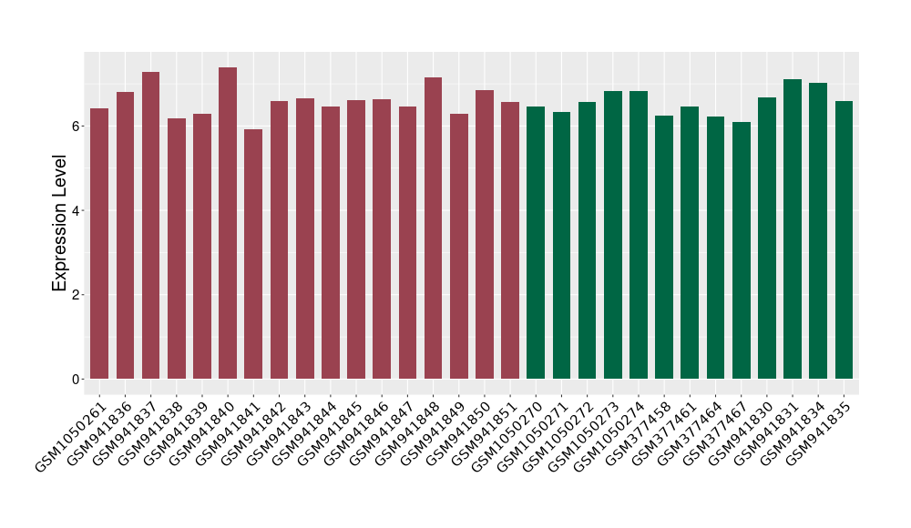 The Expression Level of Disease Section Compare with the Healthy Individual Tissue | p-value:0.010845596; Fold-change:-0.954408289; Z-score:-1.828725474 | ||||