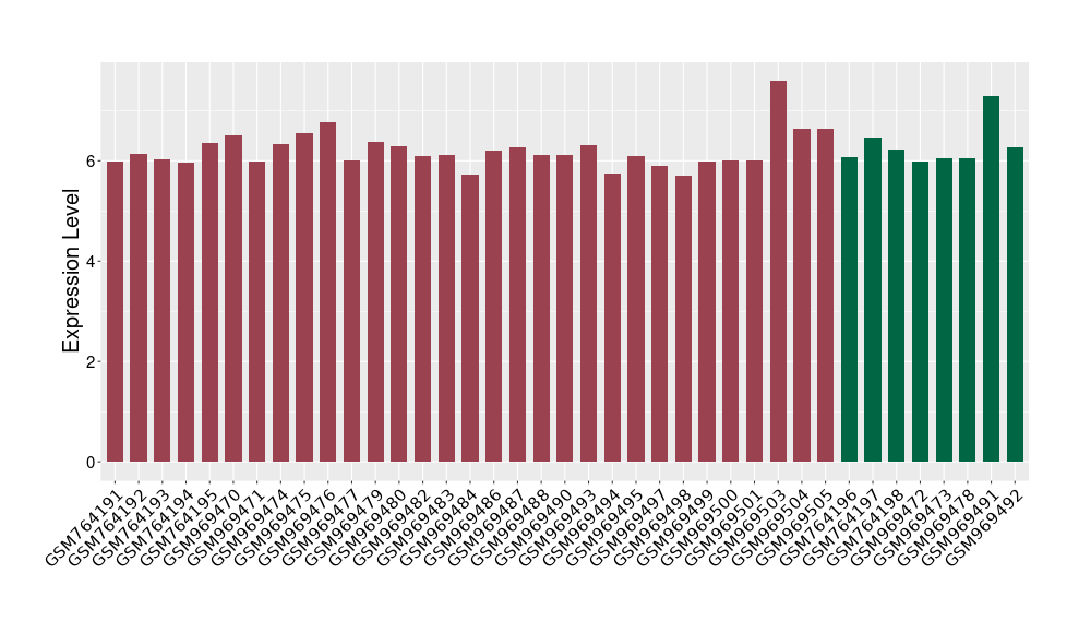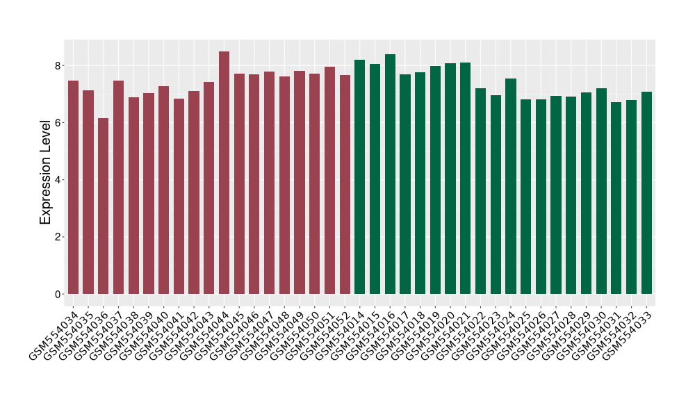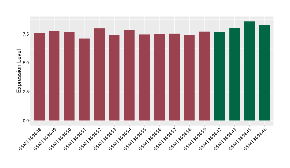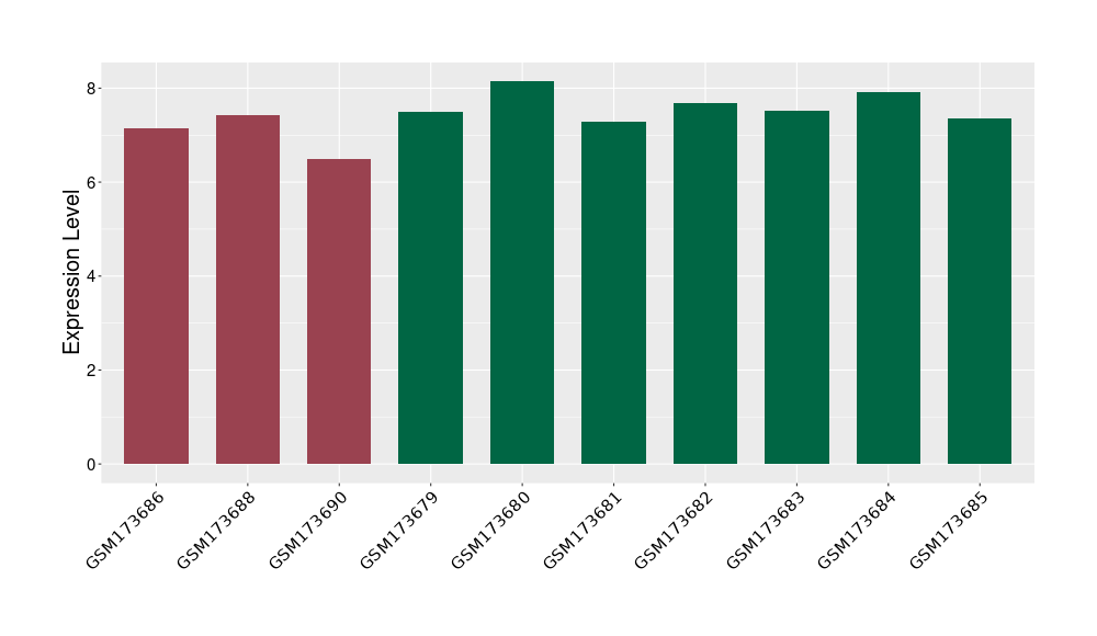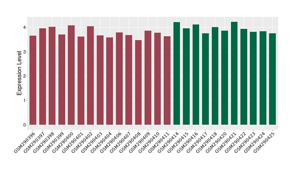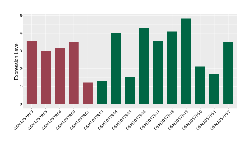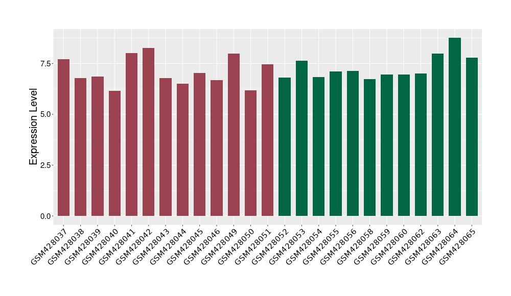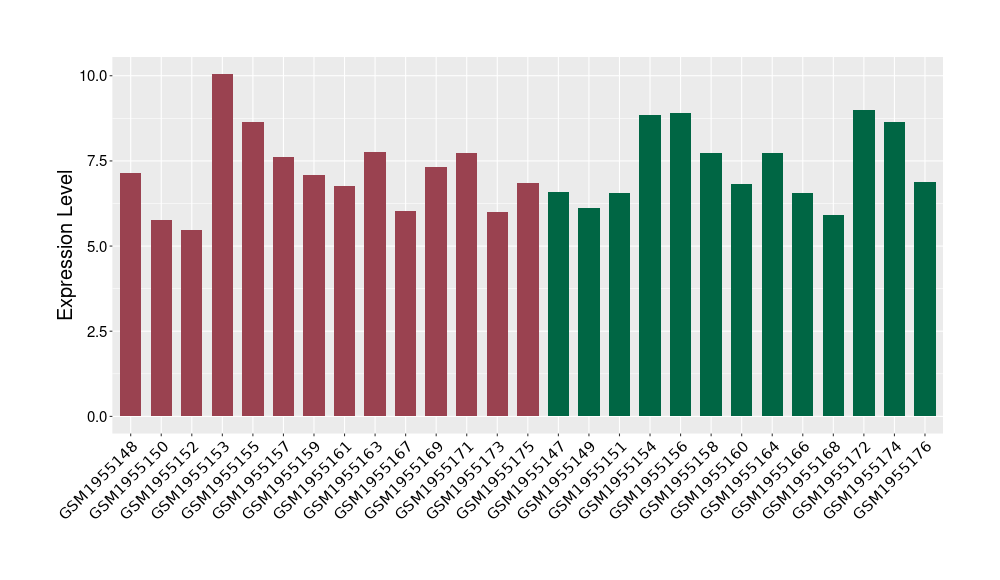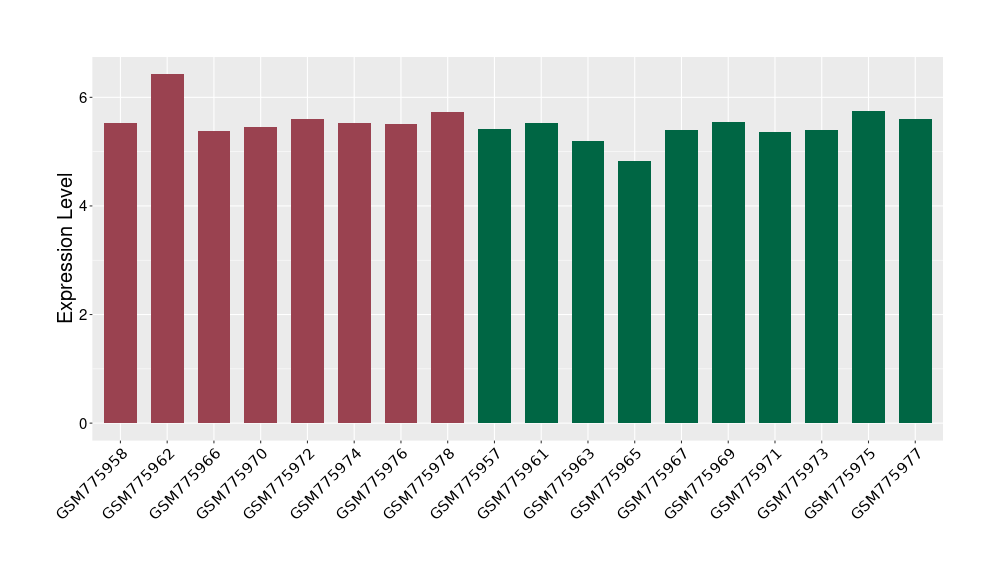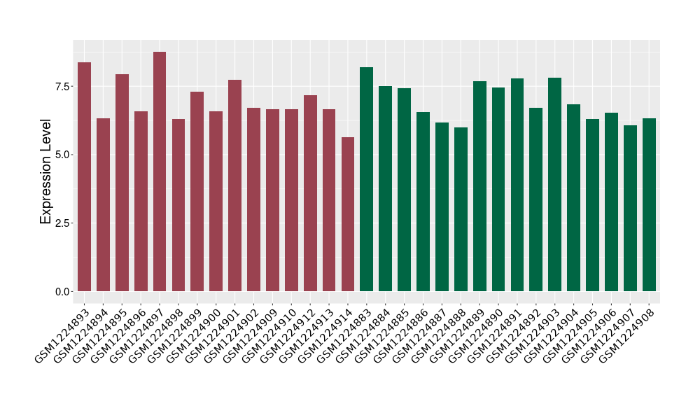 The Expression Level of Disease Section Compare with the Healthy Individual Tissue | p-value:0.010845596; Fold-change:-0.954408289; Z-score:-1.828725474 | ||||