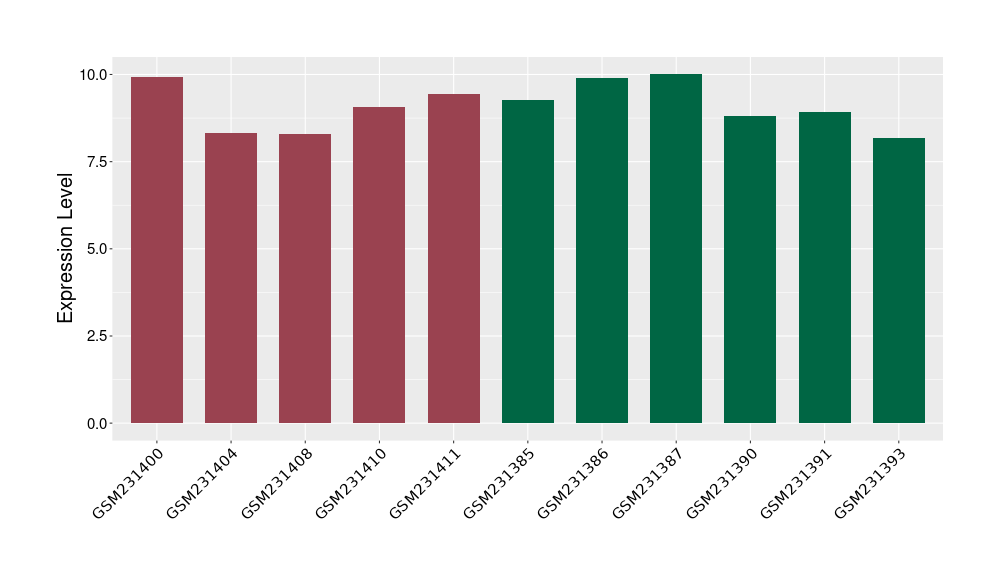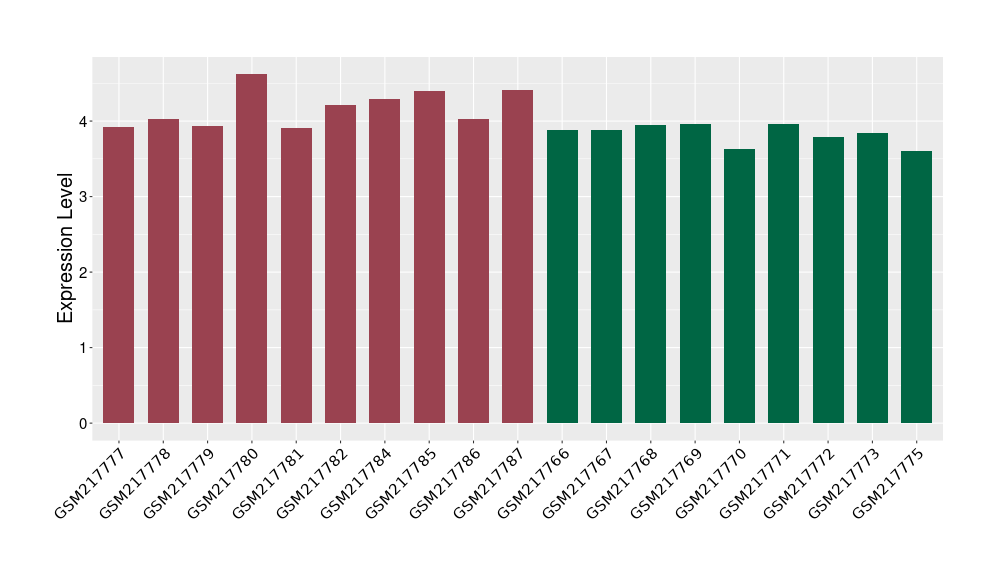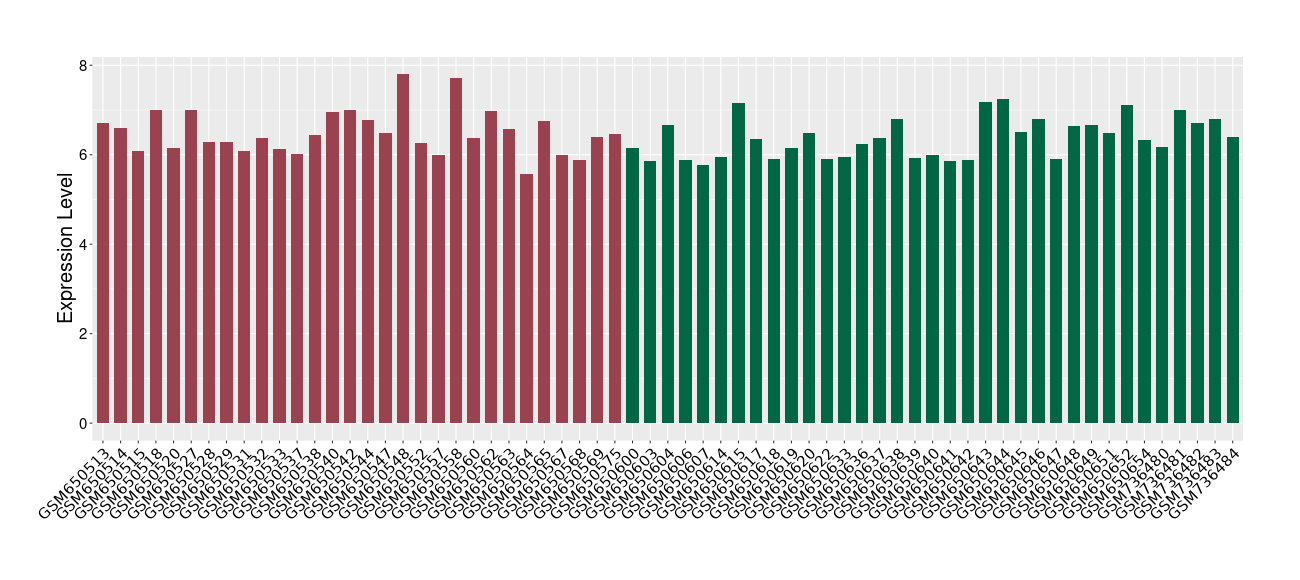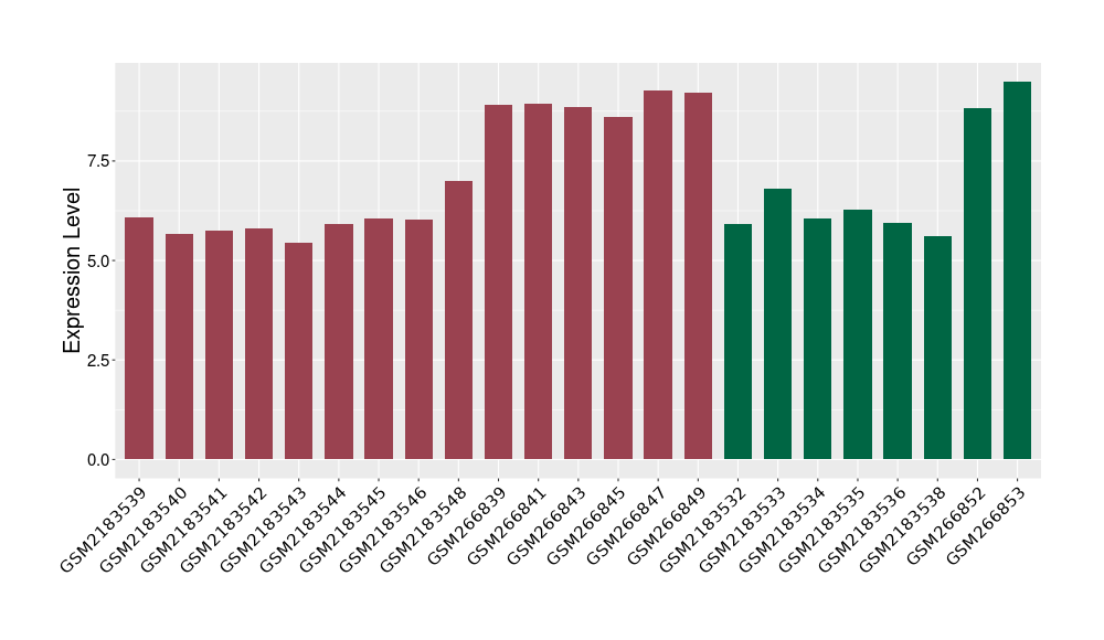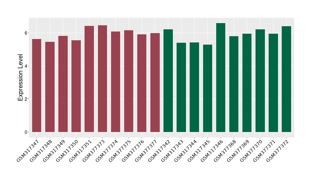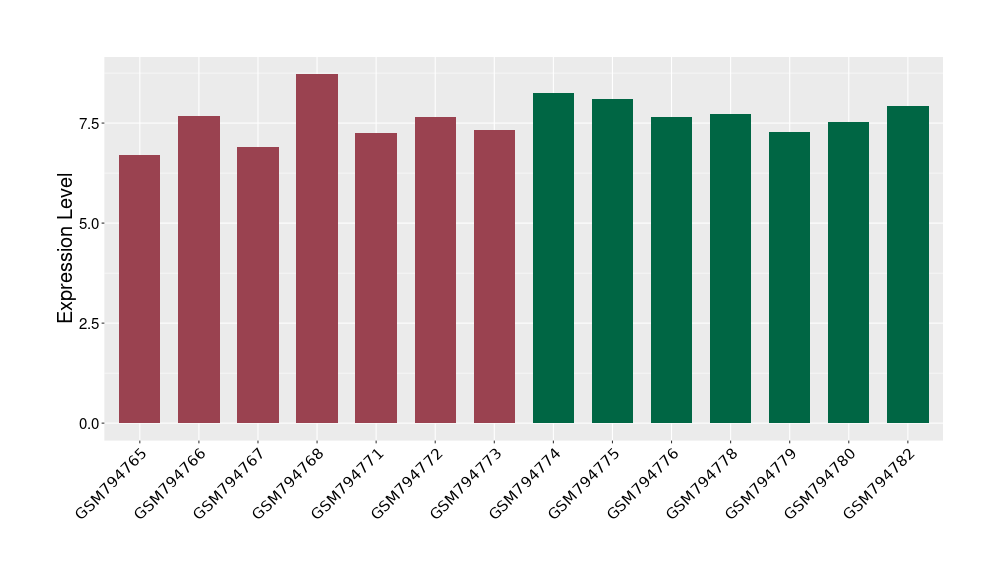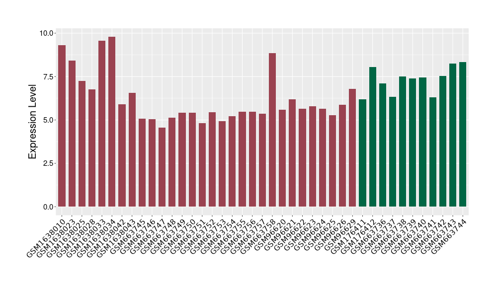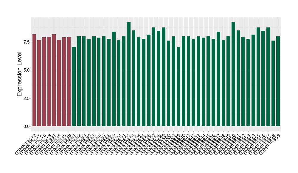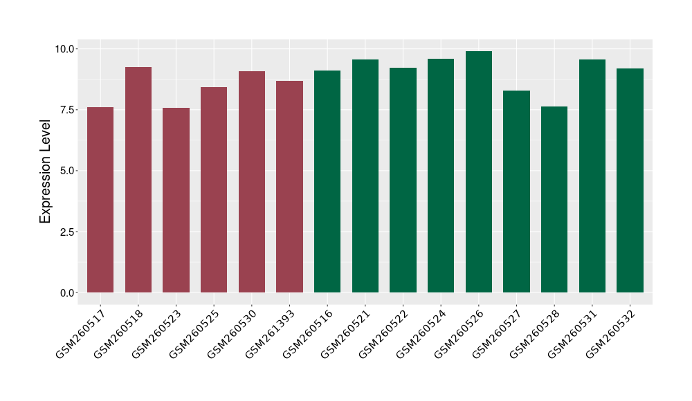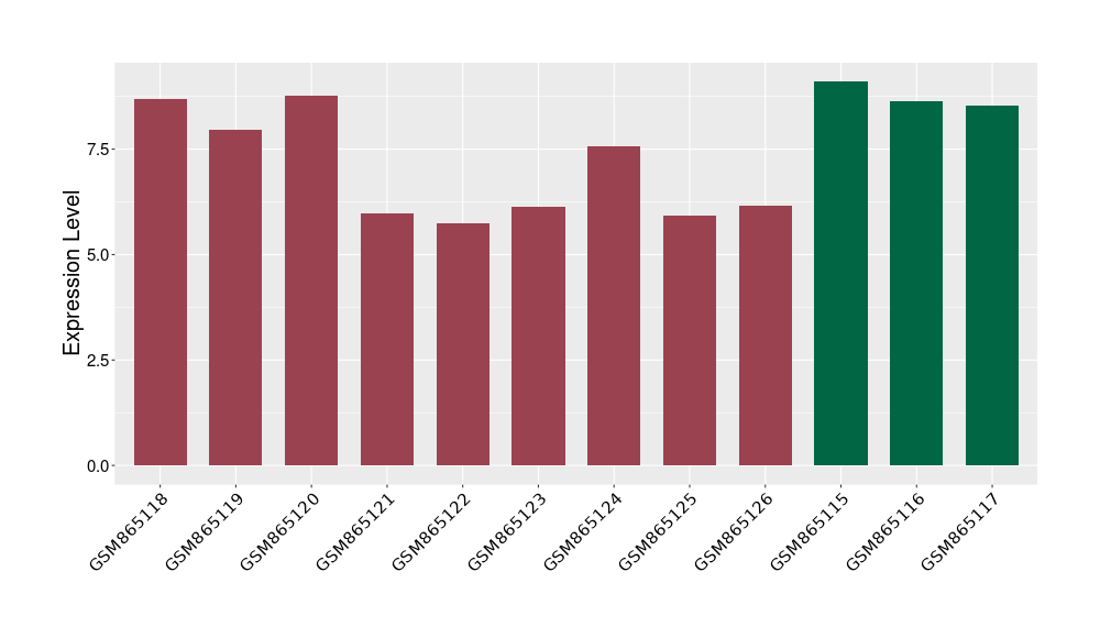 The Expression Level of Disease Section Compare with the Healthy Individual Tissue | p-value:0.010845596; Fold-change:-0.954408289; Z-score:-1.828725474 | ||||