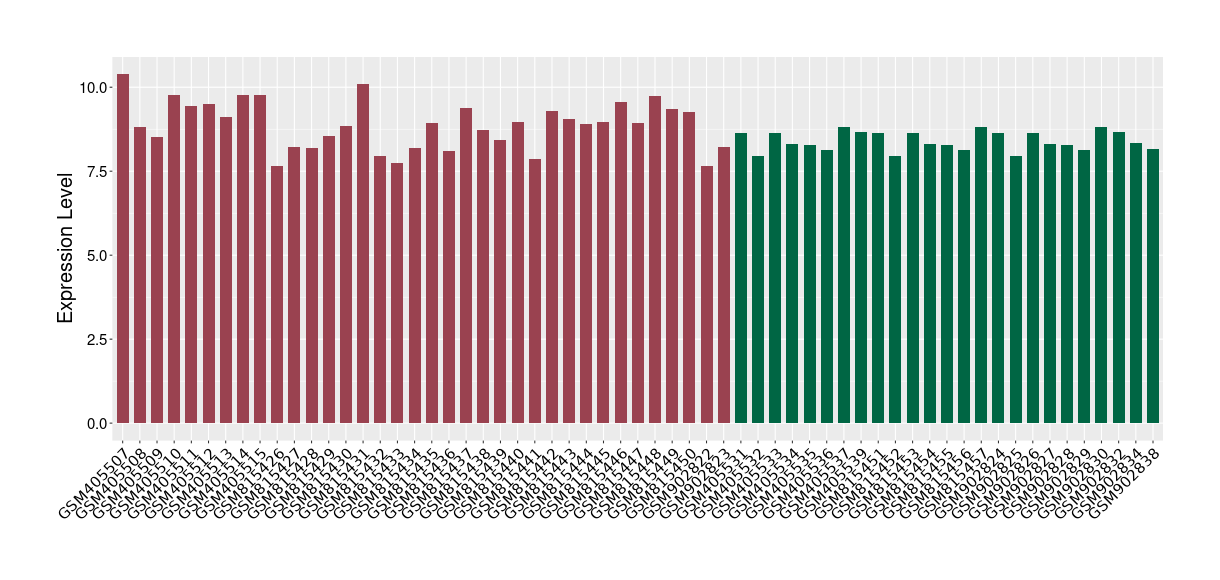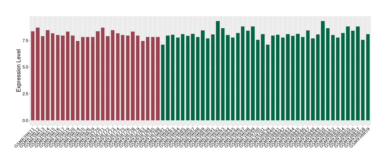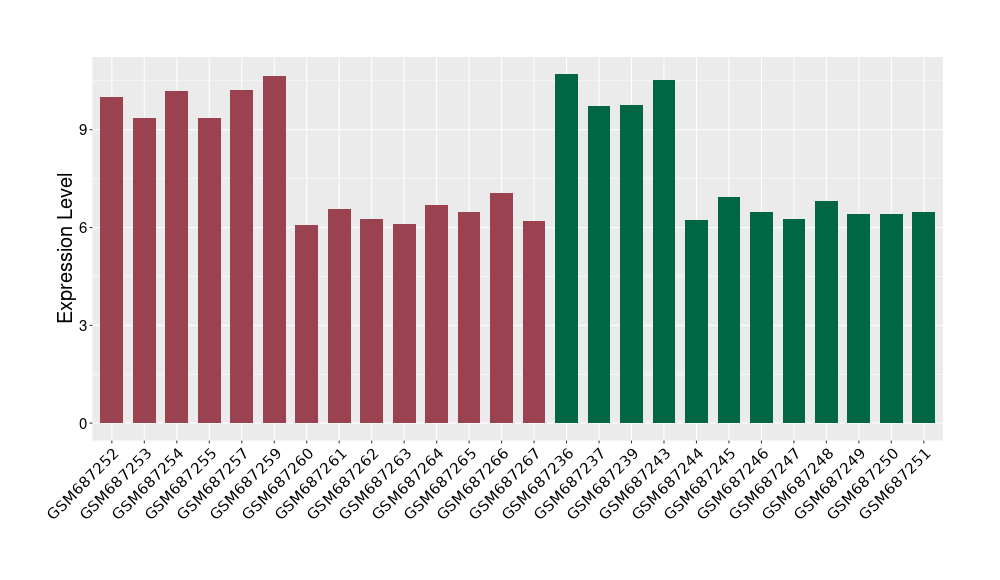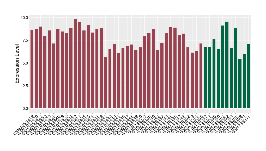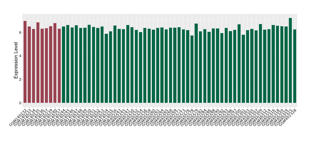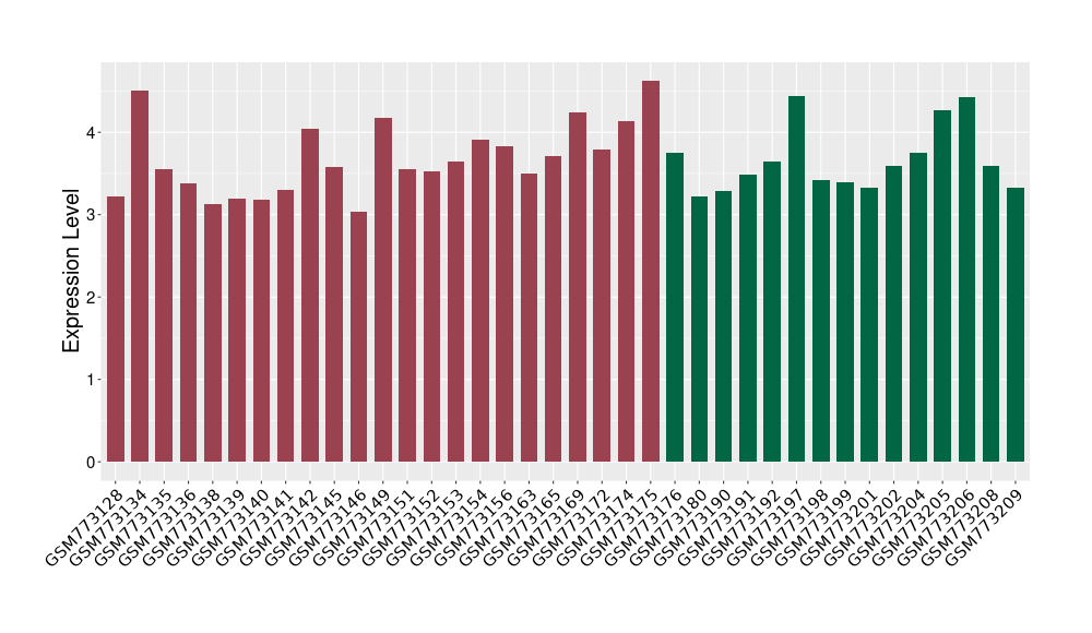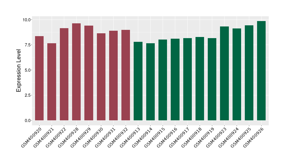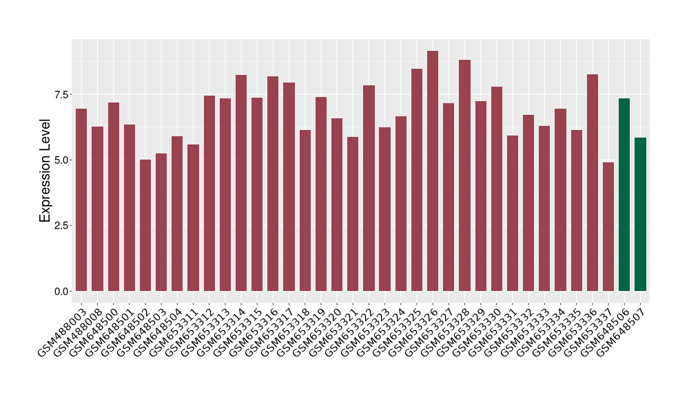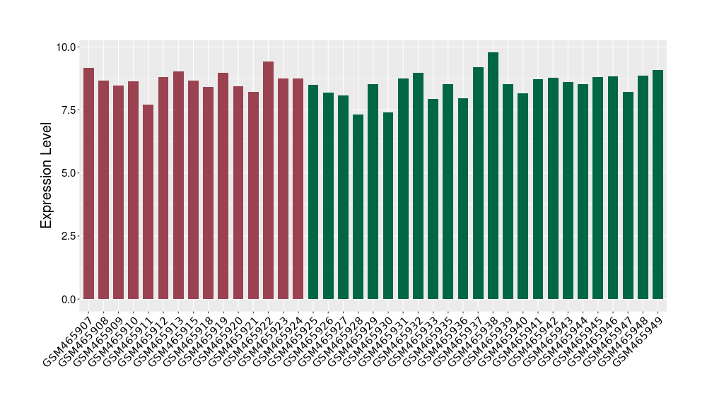 The Expression Level of Disease Section Compare with the Healthy Individual Tissue | p-value:0.010845596; Fold-change:-0.954408289; Z-score:-1.828725474 | ||||