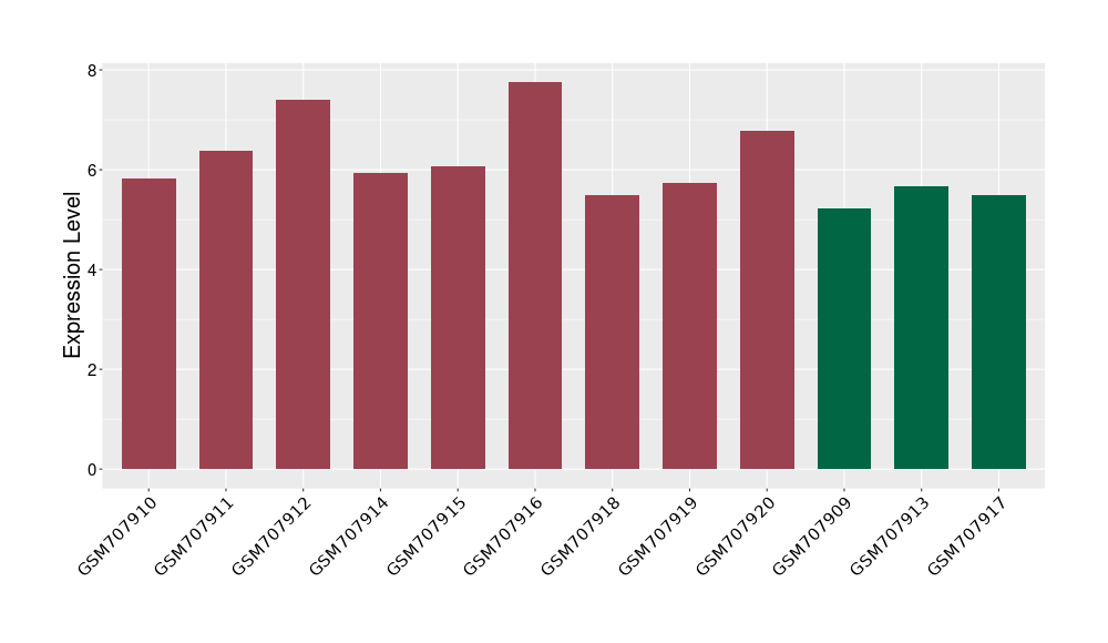 The Expression Level of Disease Section Compare with the Healthy Individual Tissue | p-value:0.000283164; Fold-change:1.448863702; Z-score:2.849188473 | ||||