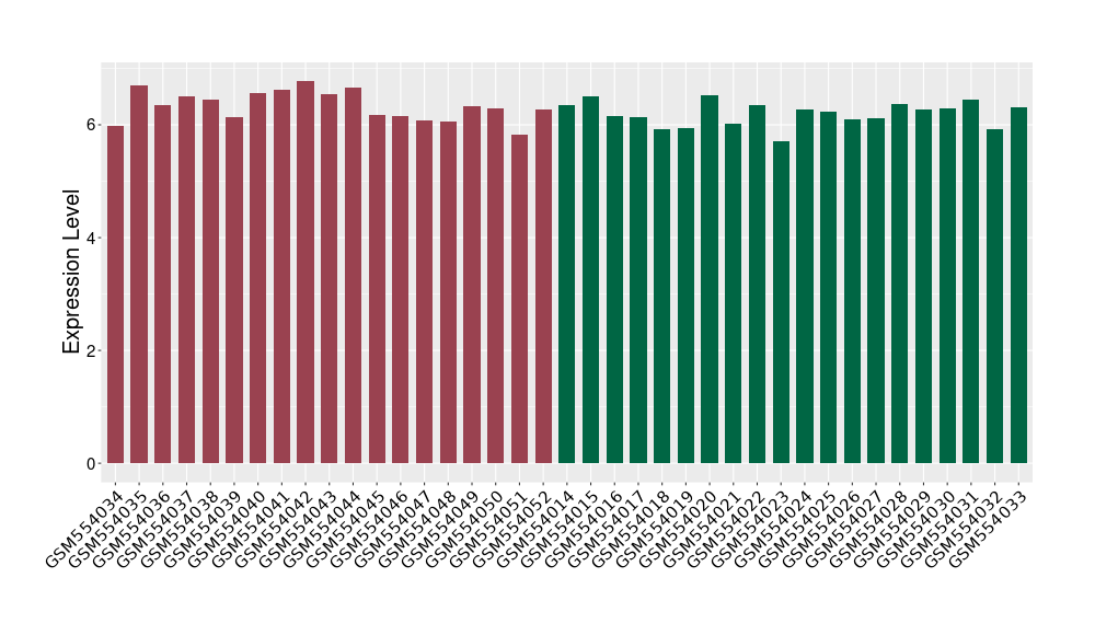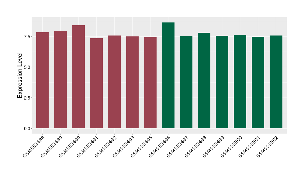 The Expression Level of Disease Section Compare with the Healthy Individual Tissue | p-value:0.744369067; Fold-change:-0.064179453; Z-score:-0.443872677 | ||||