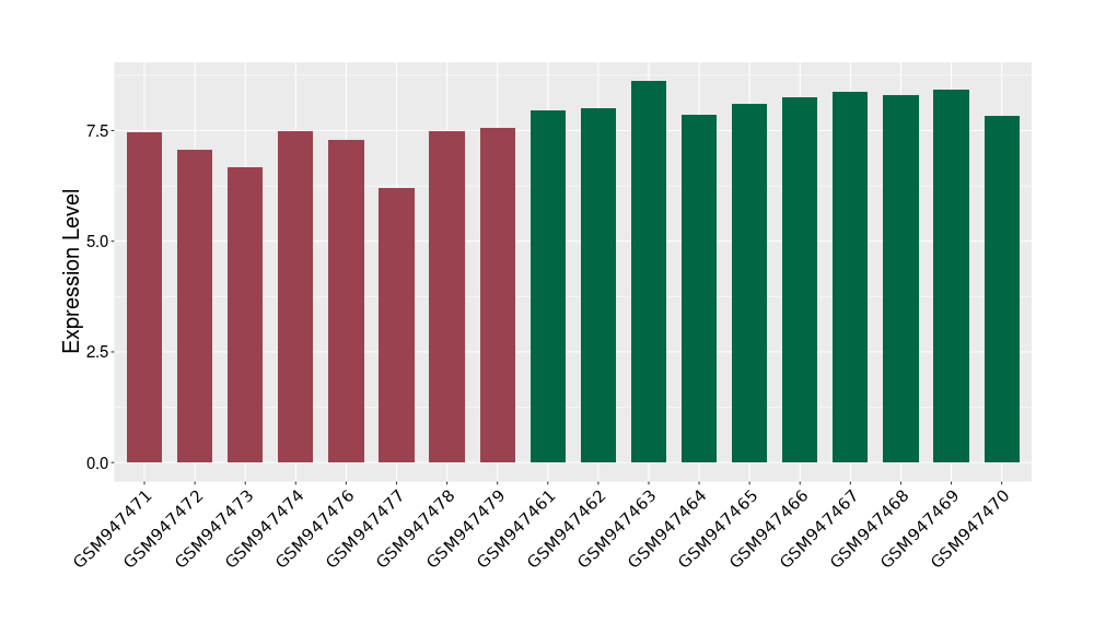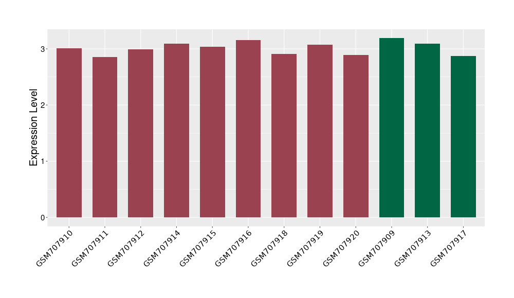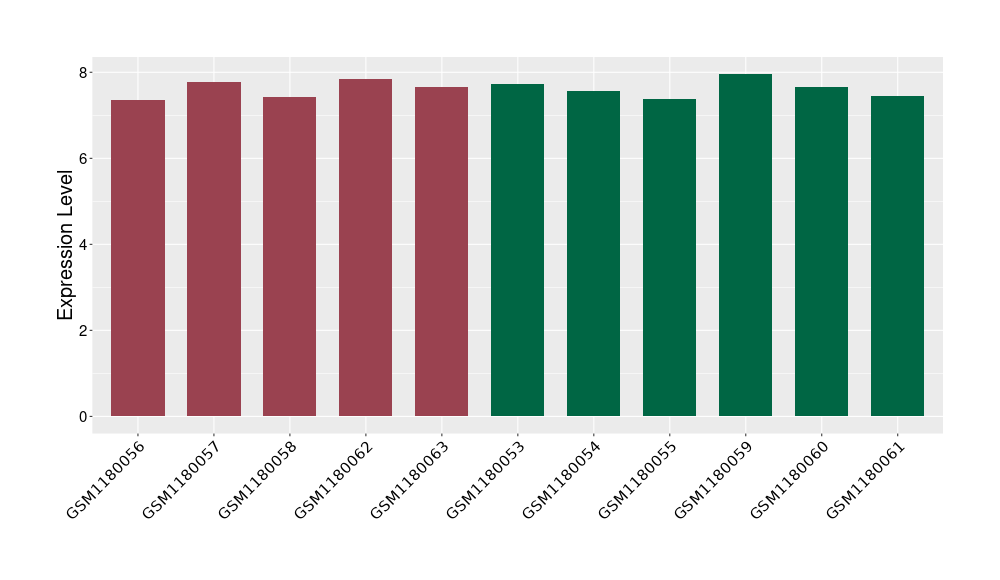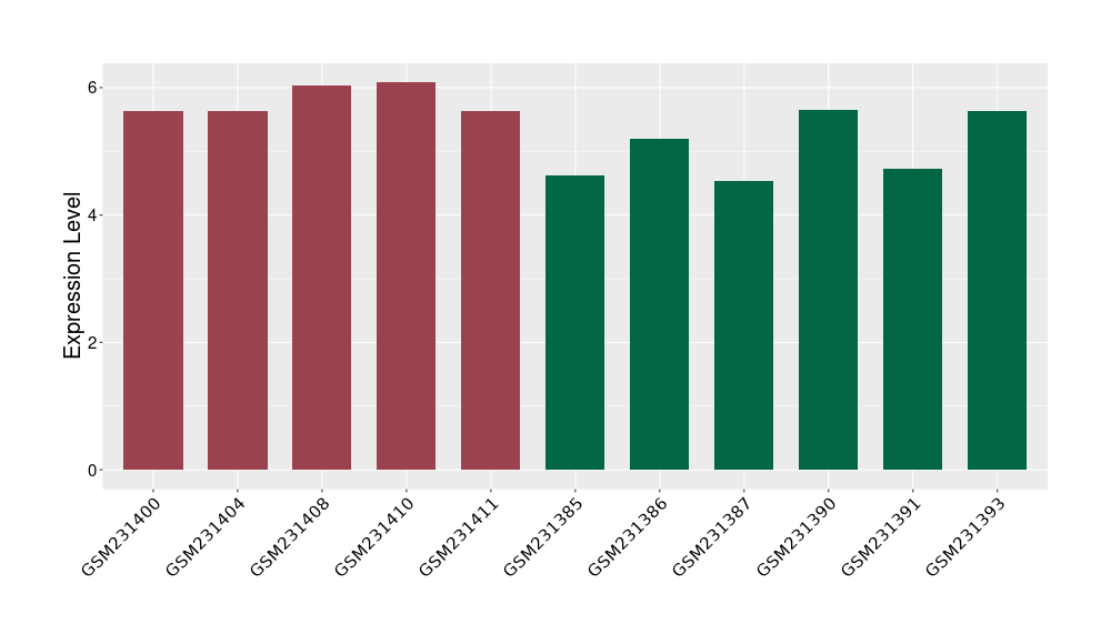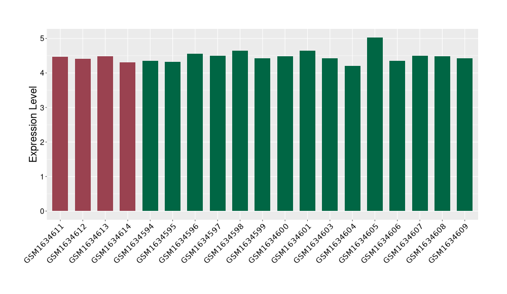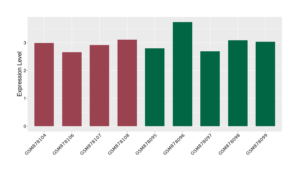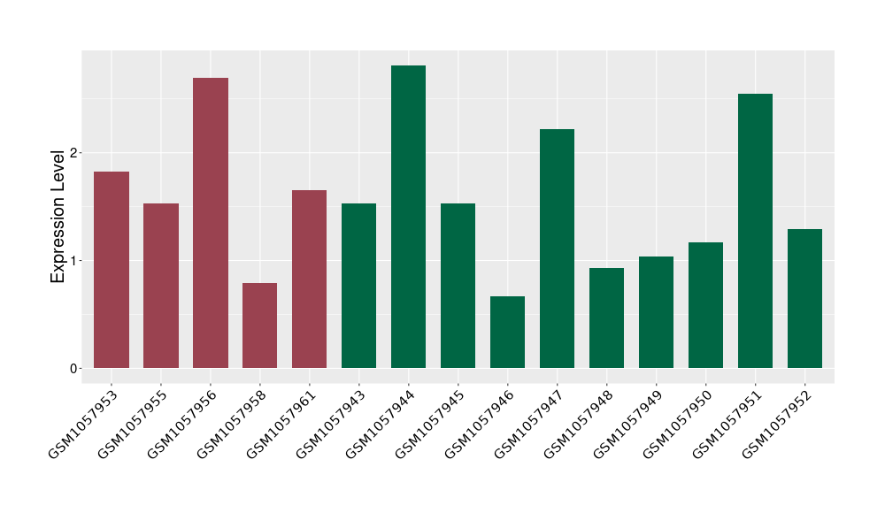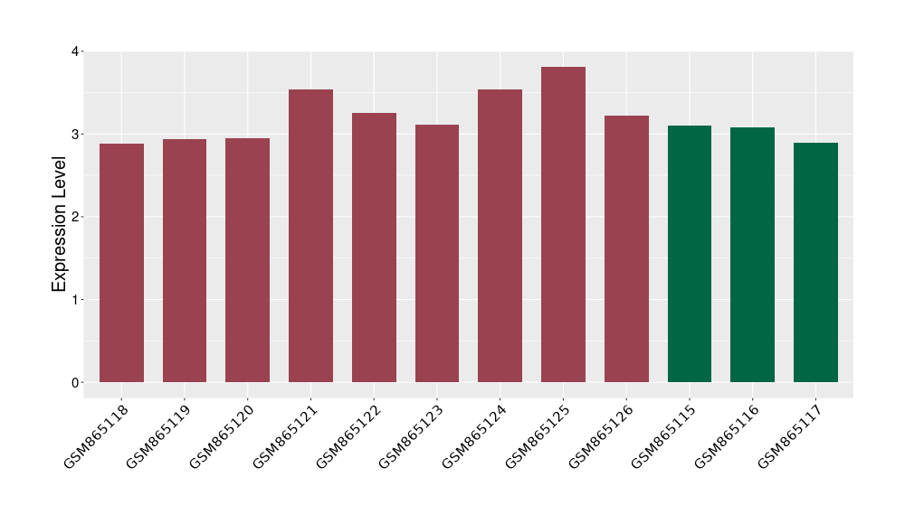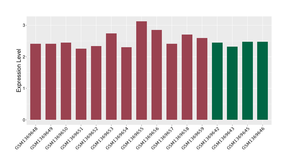 The Expression Level of Disease Section Compare with the Healthy Individual Tissue | p-value:0.001461291; Fold-change:-0.546183838; Z-score:-0.718408237 | ||||