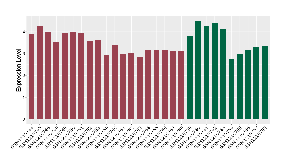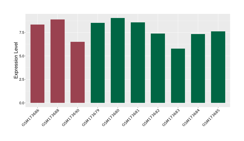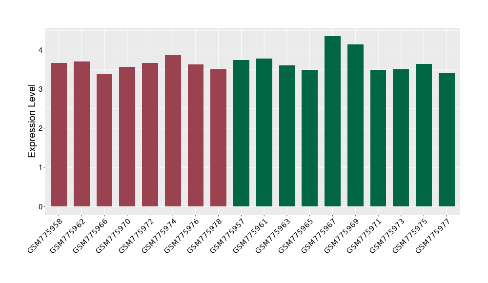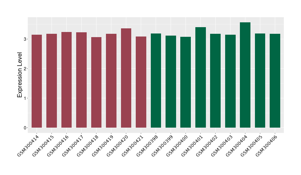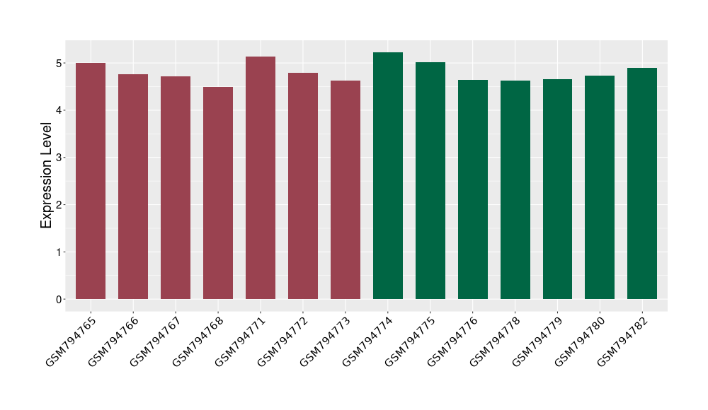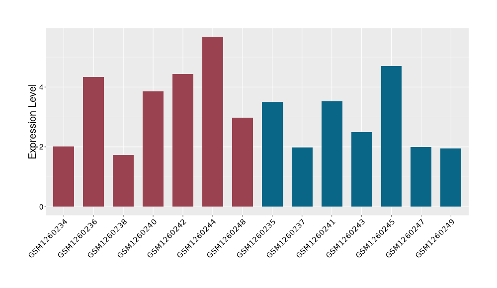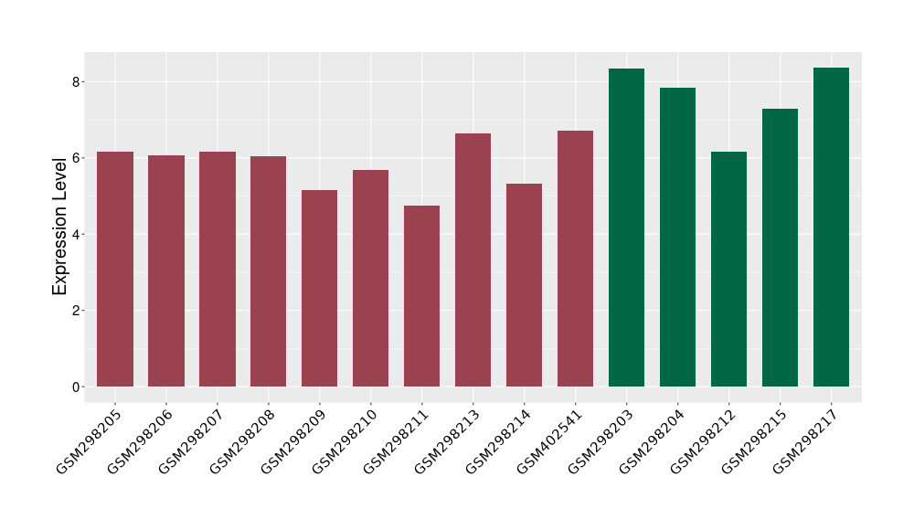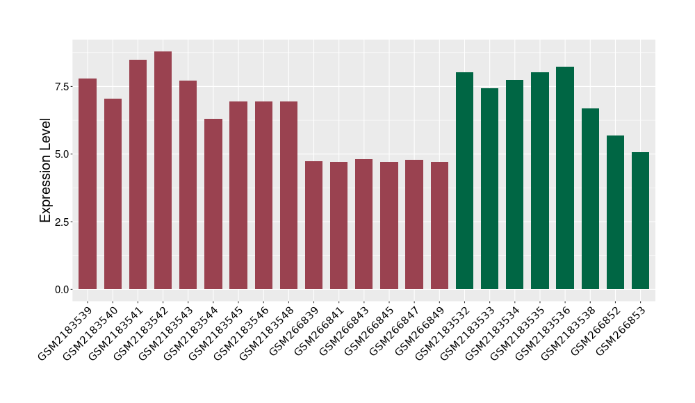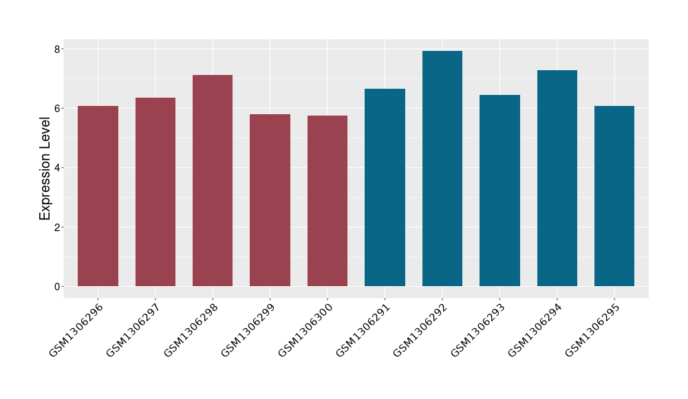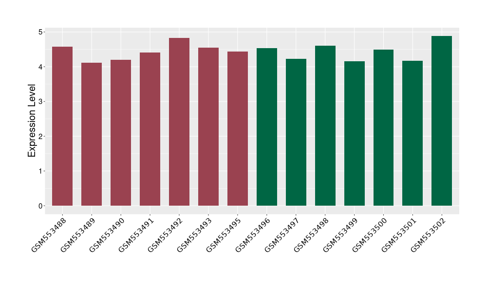 The Expression Level of Disease Section Compare with the Healthy Individual Tissue | p-value:0.001461291; Fold-change:-0.546183838; Z-score:-0.718408237 | ||||