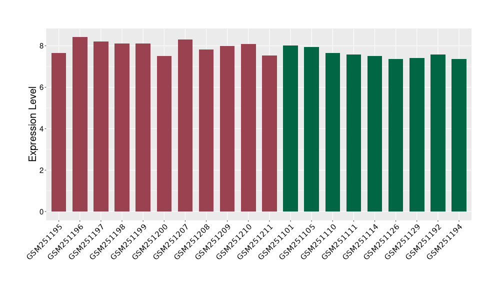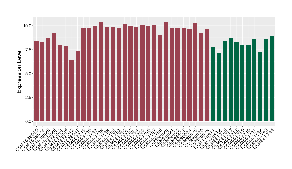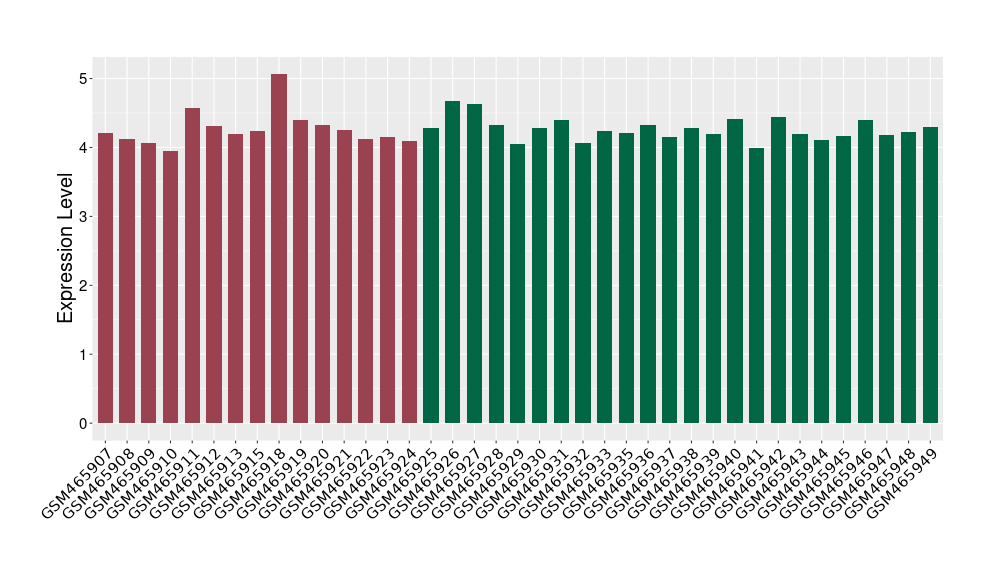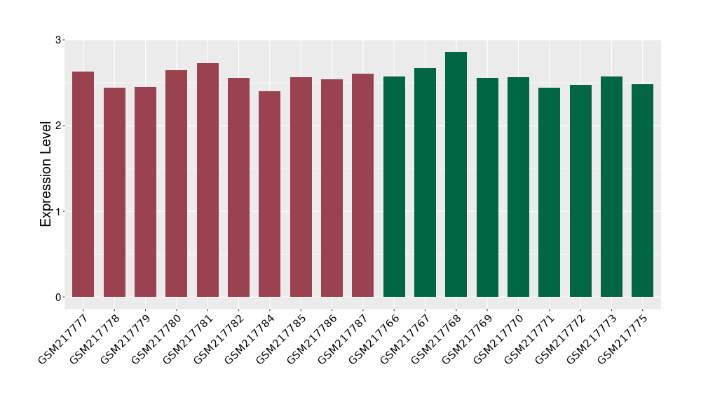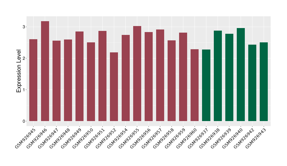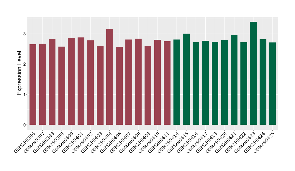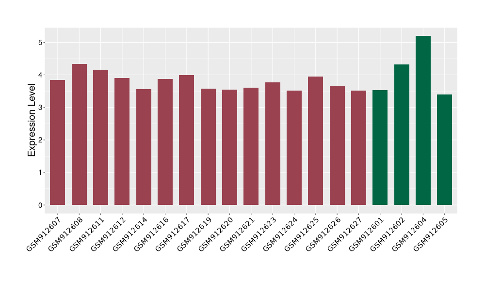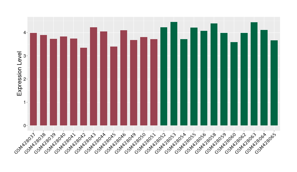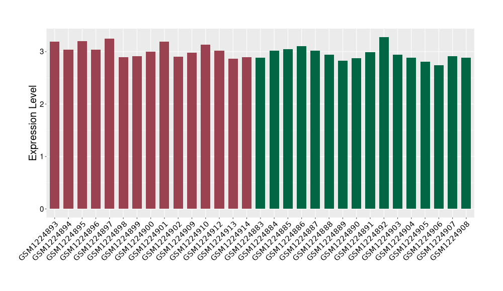 The Expression Level of Disease Section Compare with the Healthy Individual Tissue | p-value:0.001461291; Fold-change:-0.546183838; Z-score:-0.718408237 | ||||