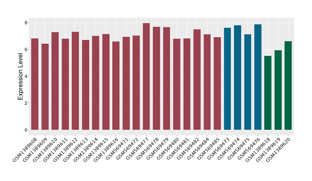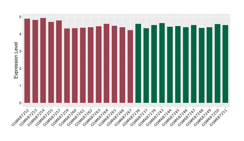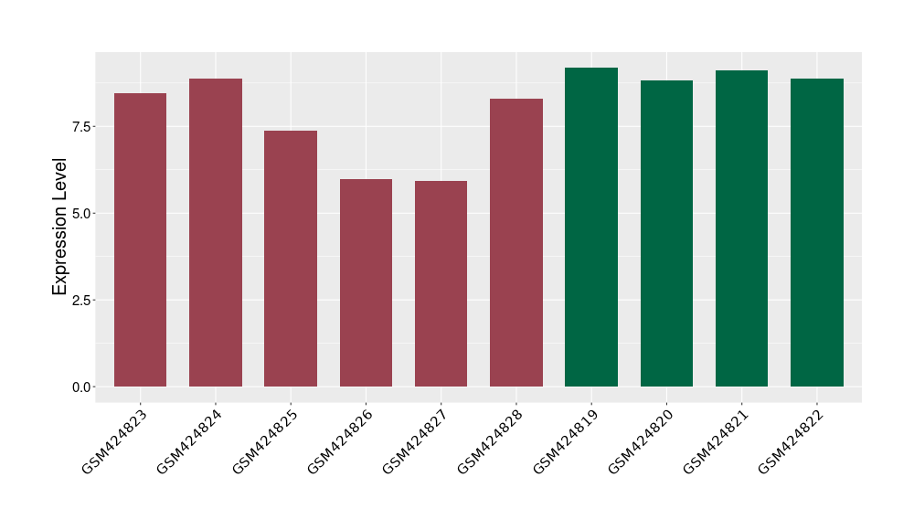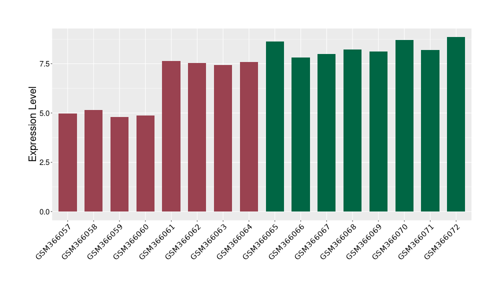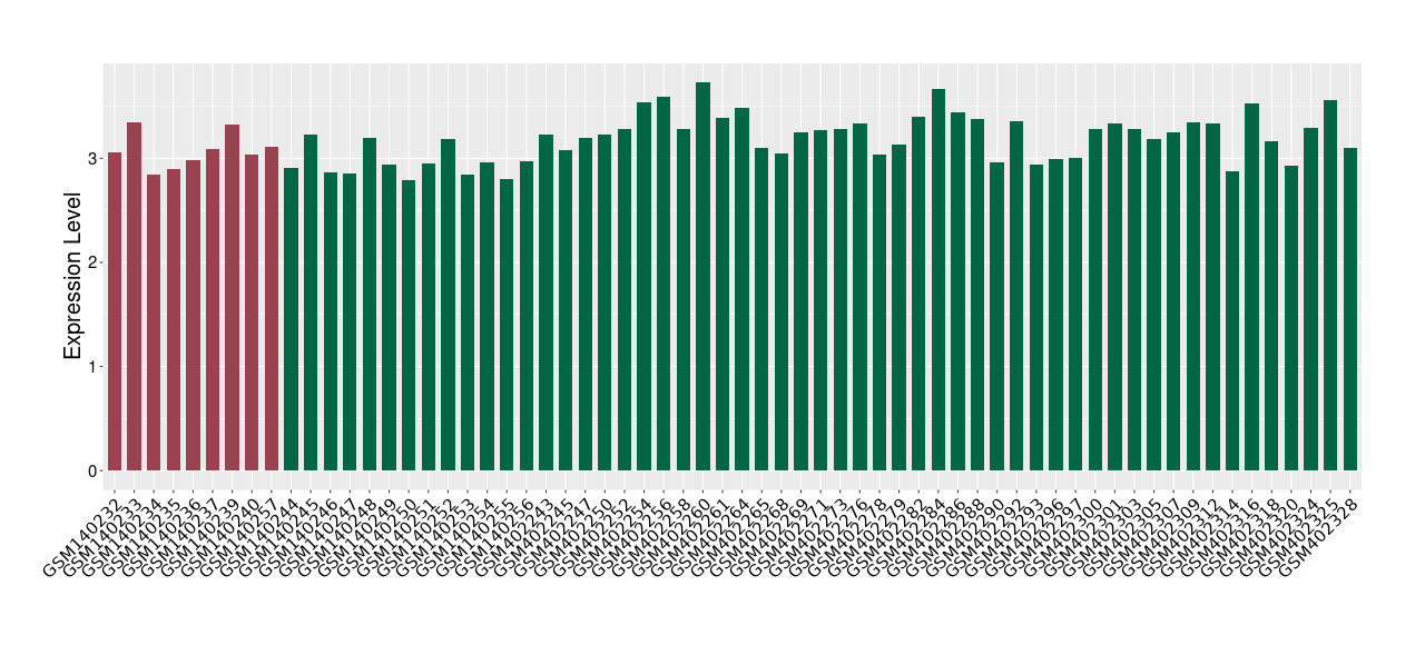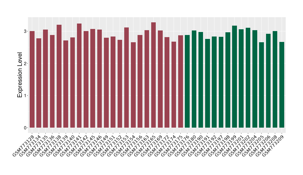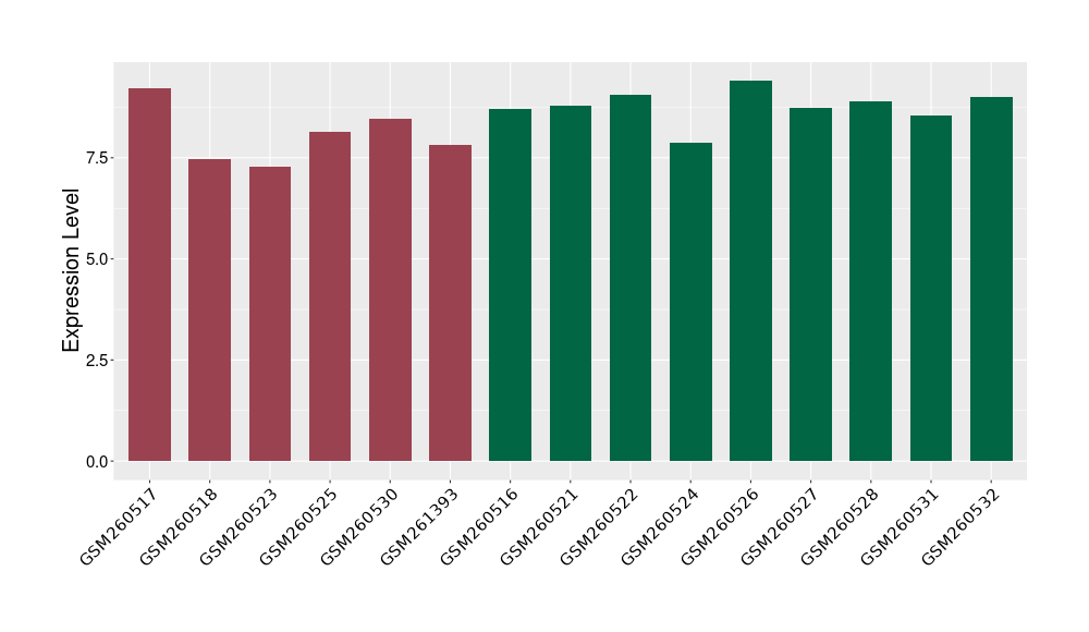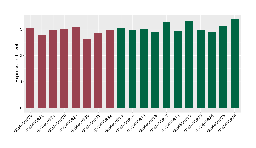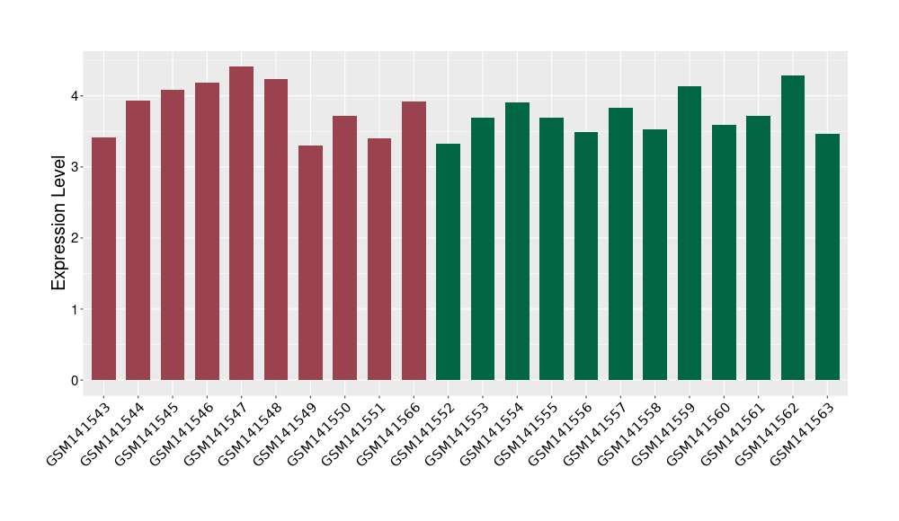 The Expression Level of Disease Section Compare with the Healthy Individual Tissue | p-value:0.001461291; Fold-change:-0.546183838; Z-score:-0.718408237 | ||||