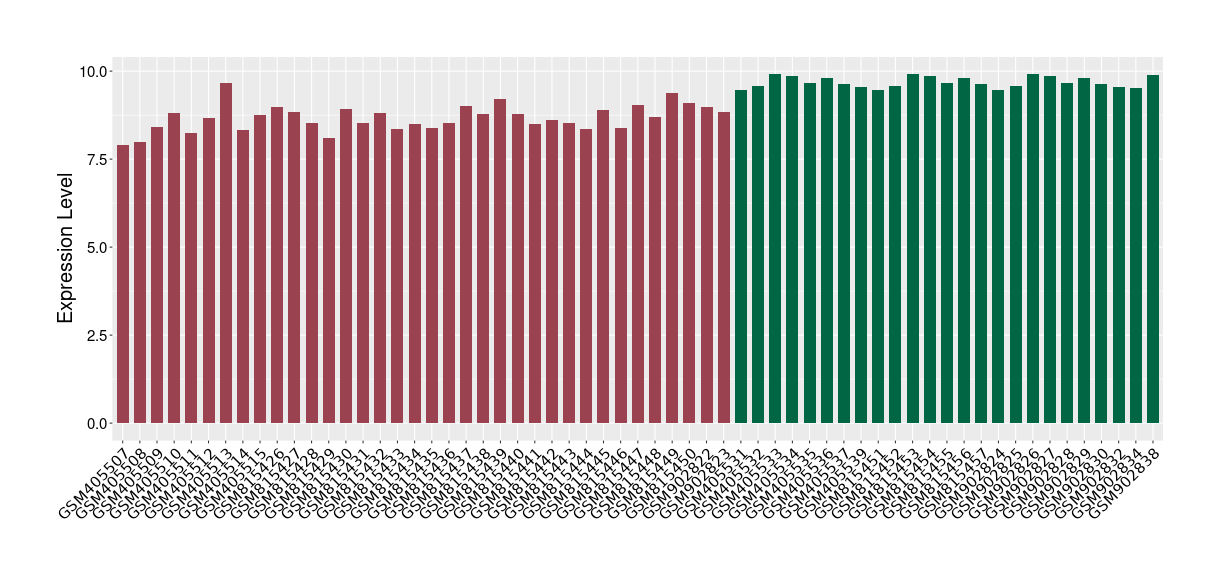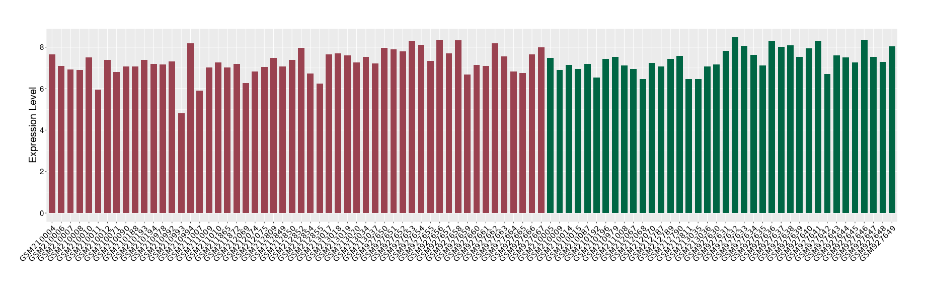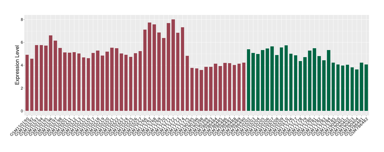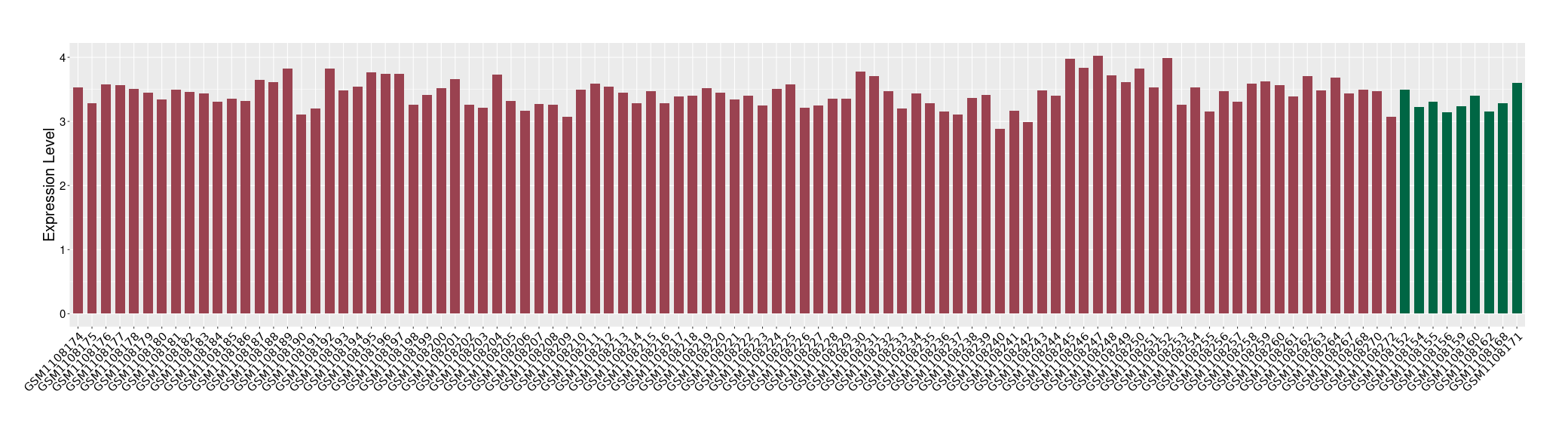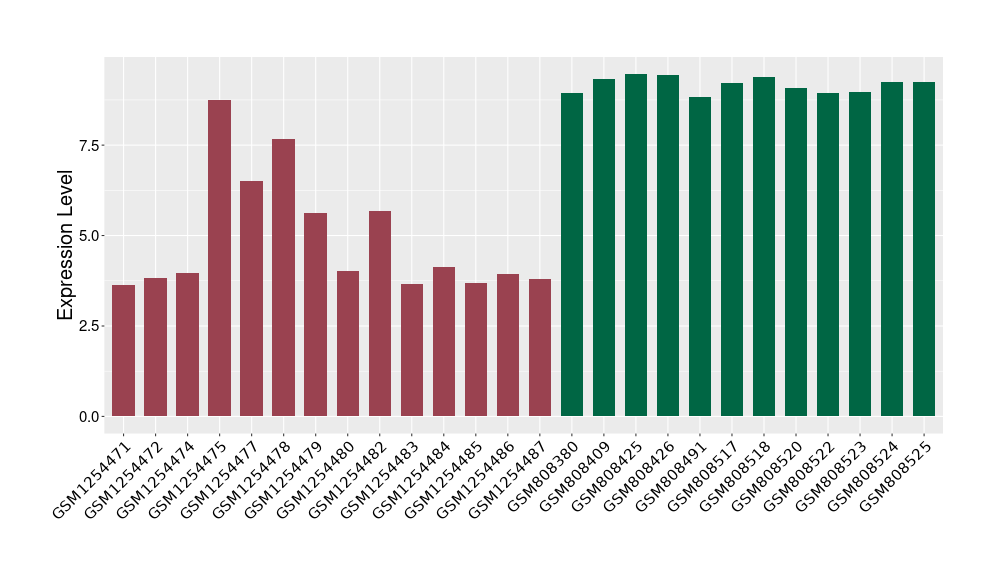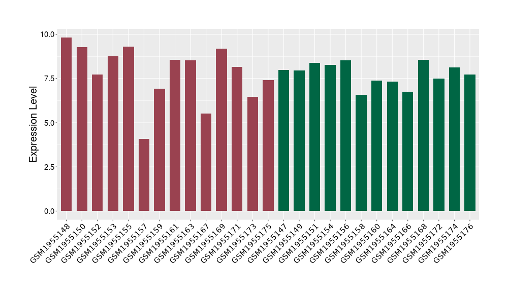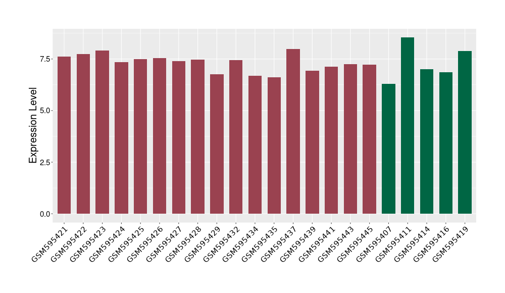 The Expression Level of Disease Section Compare with the Healthy Individual Tissue | p-value:2.22E-21; Fold-change:-1.063362113; Z-score:-1.757031813 | ||||