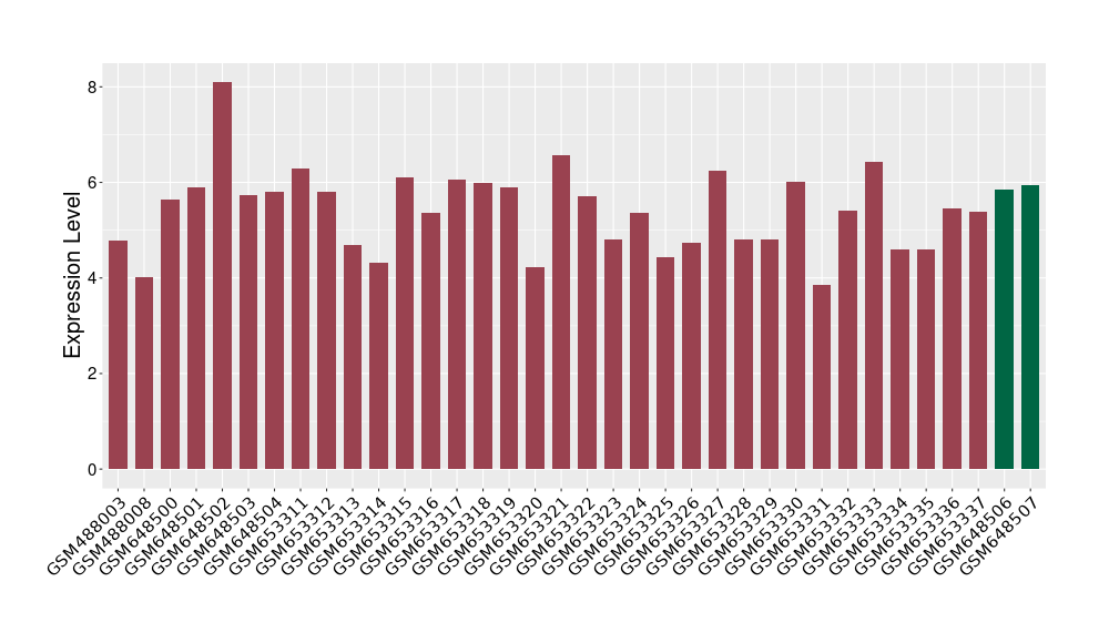 The Expression Level of Disease Section Compare with the Healthy Individual Tissue | p-value:0.003695862; Fold-change:-1.911426658; Z-score:-5.128868168 | ||||