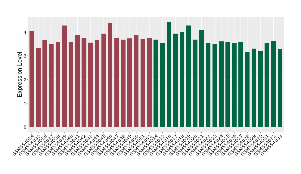 The Expression Level of Disease Section Compare with the Healthy Individual Tissue | p-value:0.004005417; Fold-change:-0.684520671; Z-score:-1.302502398 | ||||