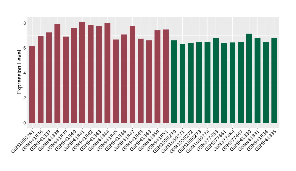 The Expression Level of Disease Section Compare with the Healthy Individual Tissue | p-value:0.033500504; Fold-change:-1.157670623; Z-score:-6.515063037 | ||||