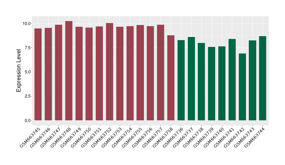 The Expression Level of Disease Section Compare with the Healthy Individual Tissue | p-value:0.00013761; Fold-change:-0.859550618; Z-score:-0.868800163 | ||||