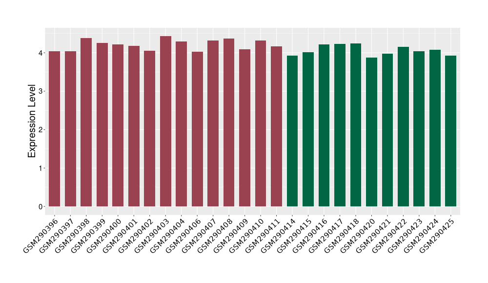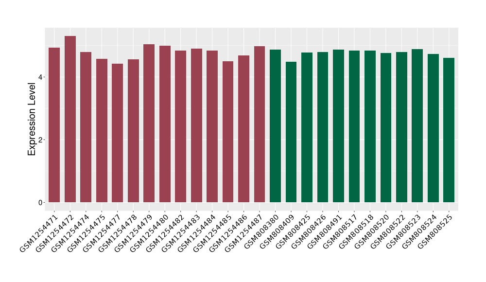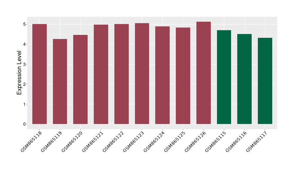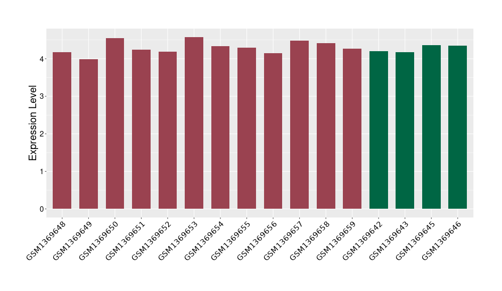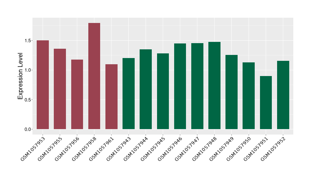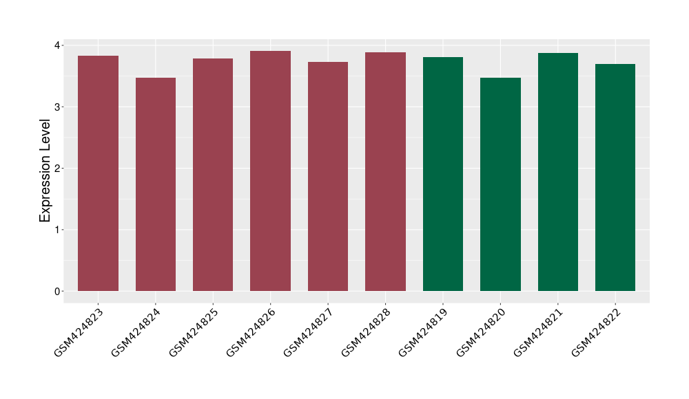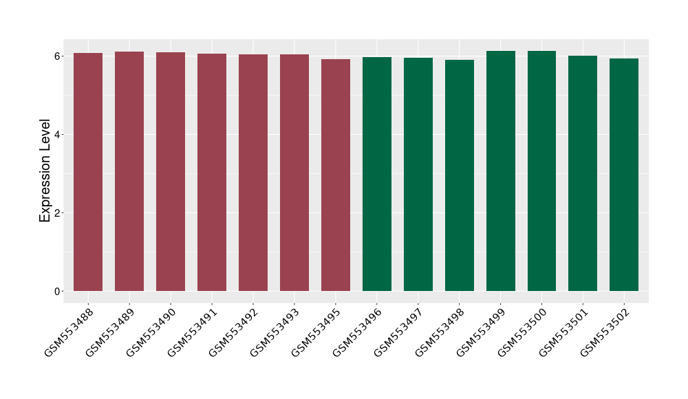 The Expression Level of Disease Section Compare with the Healthy Individual Tissue | p-value:1.97E-05; Fold-change:-0.374621069; Z-score:-0.789178492 | ||||