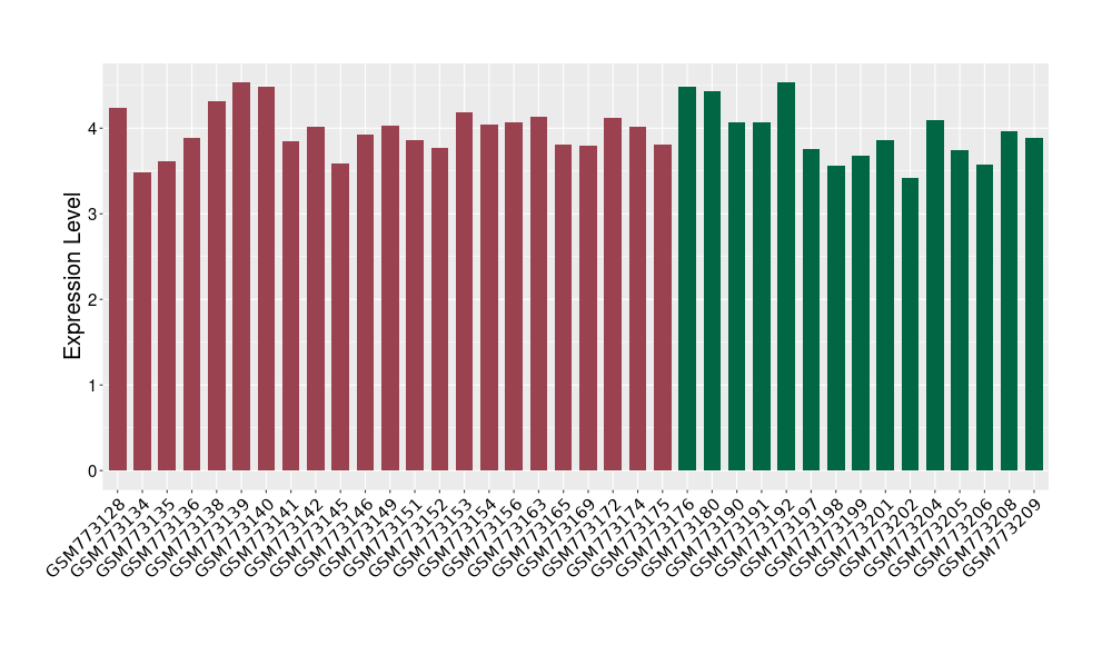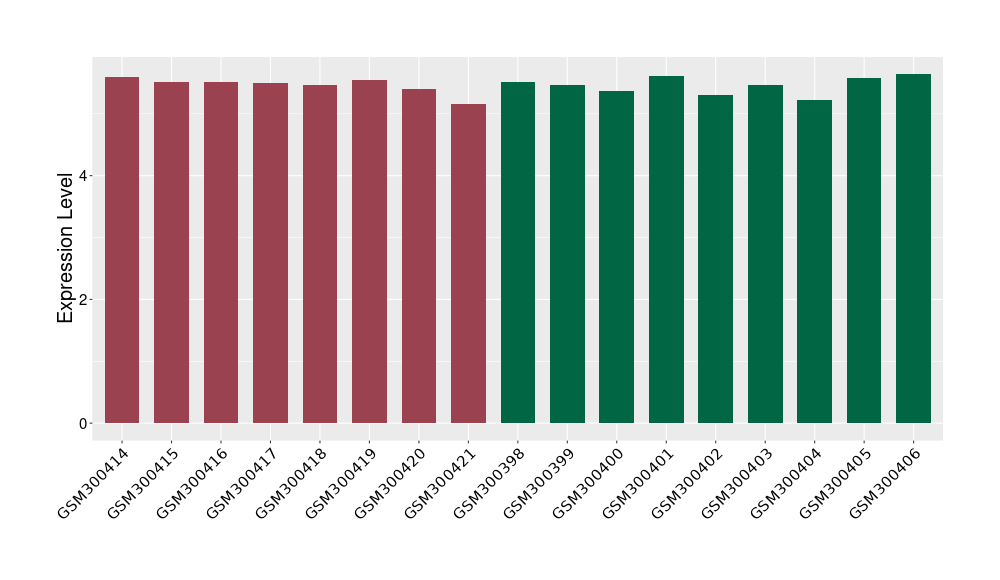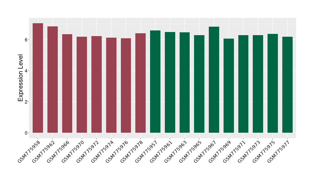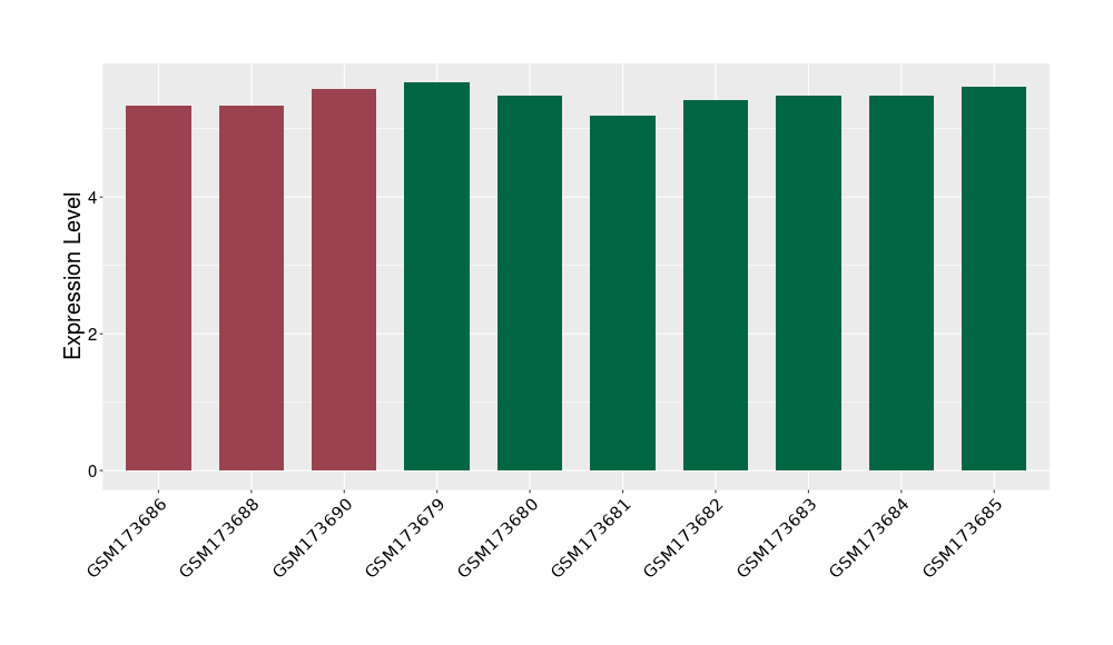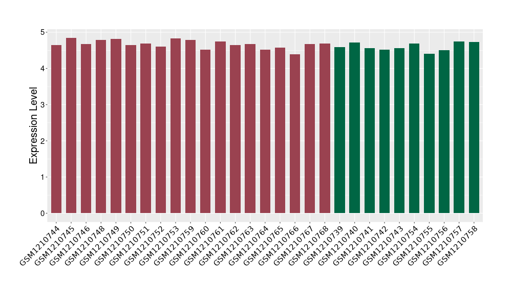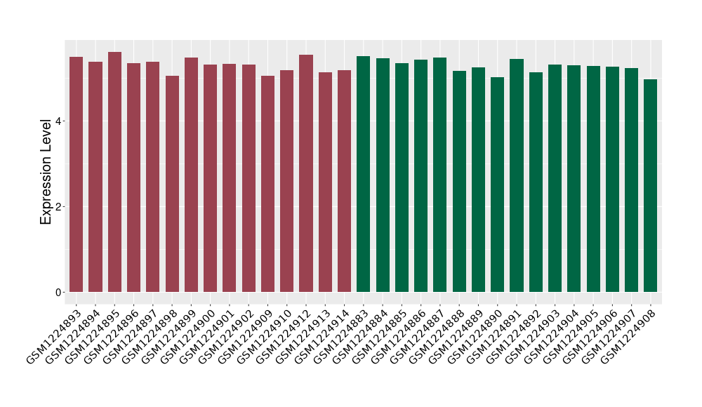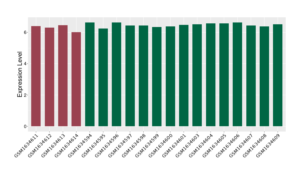 The Expression Level of Disease Section Compare with the Healthy Individual Tissue | p-value:1.97E-05; Fold-change:-0.374621069; Z-score:-0.789178492 | ||||