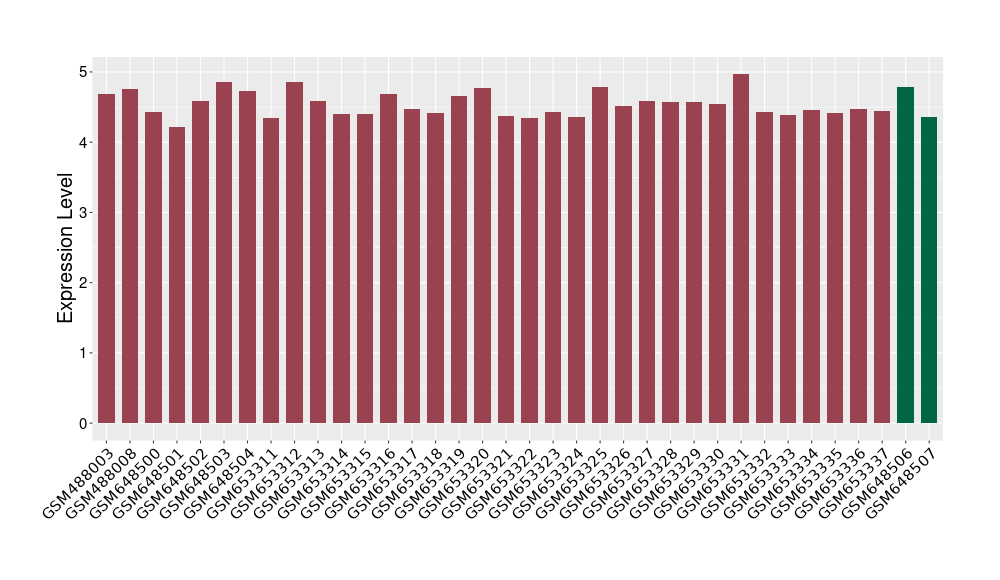 The Expression Level of Disease Section Compare with the Healthy Individual Tissue | p-value:0.012101019; Fold-change:-0.400240526; Z-score:-1.585097891 | ||||