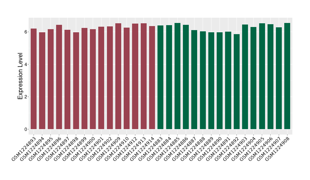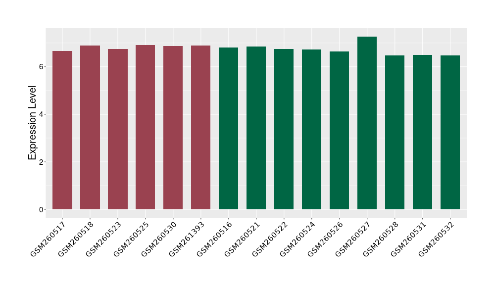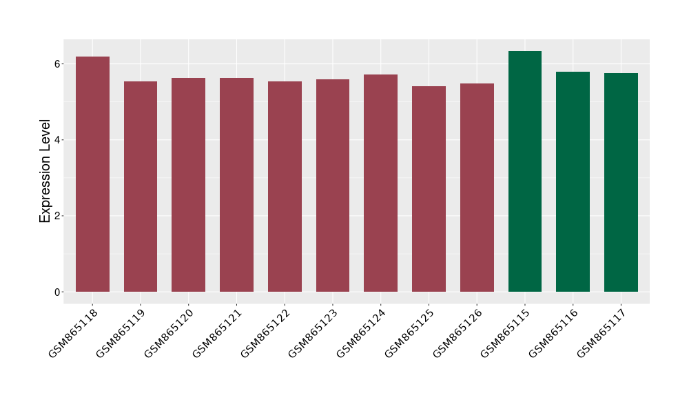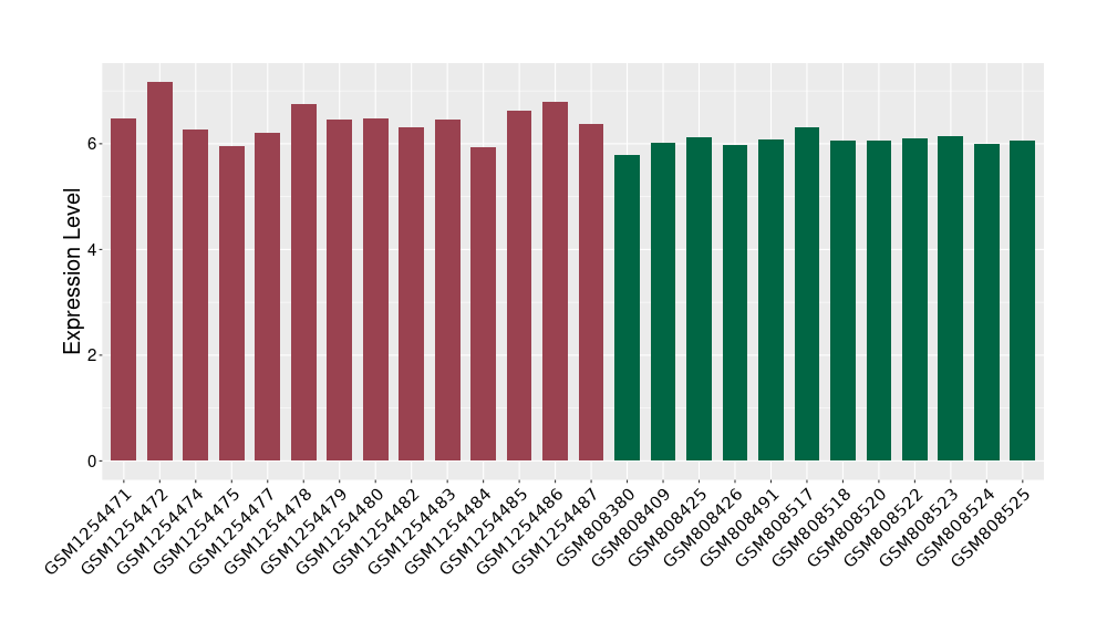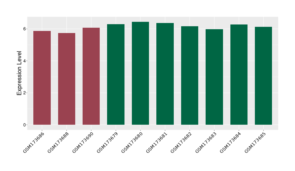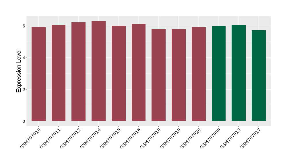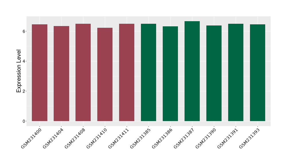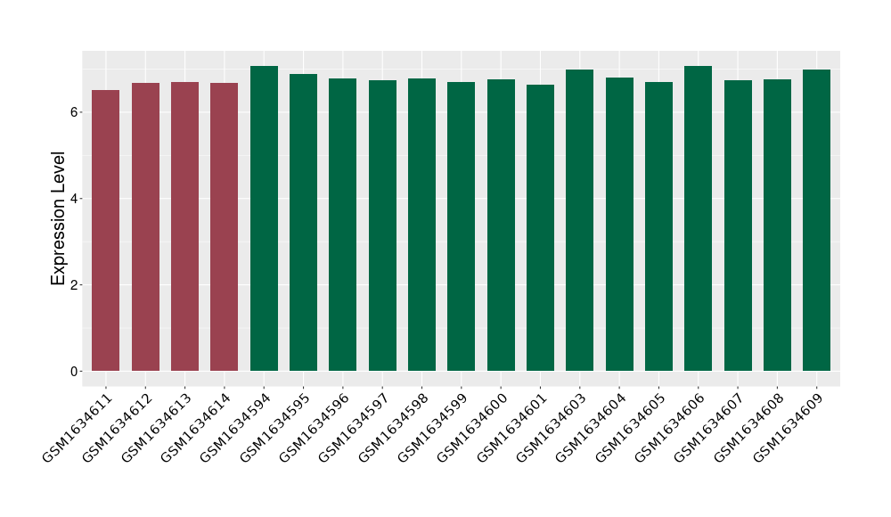 The Expression Level of Disease Section Compare with the Healthy Individual Tissue | p-value:0.918630708; Fold-change:-0.049777273; Z-score:-0.121553891 | ||||