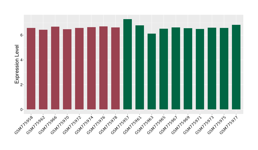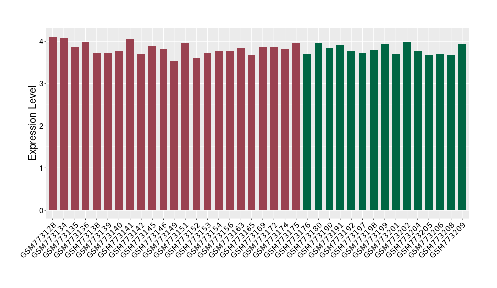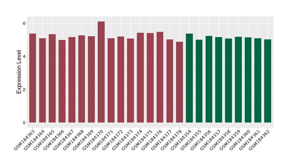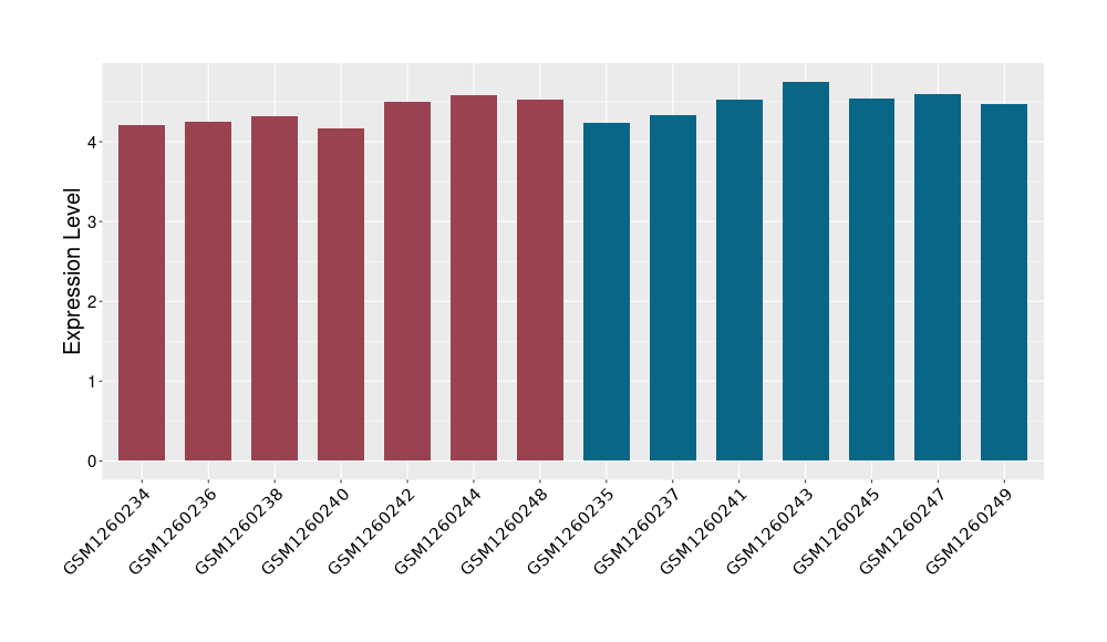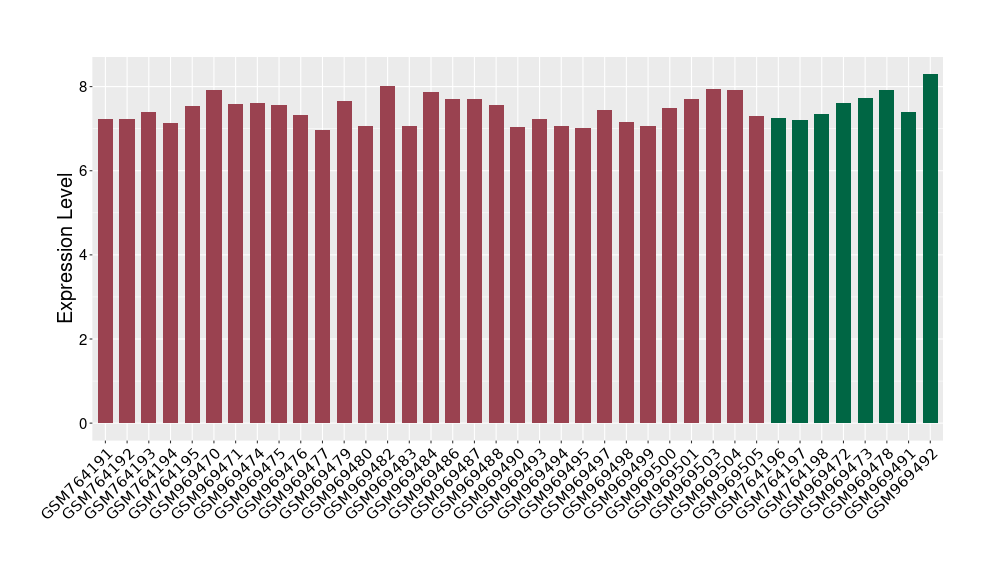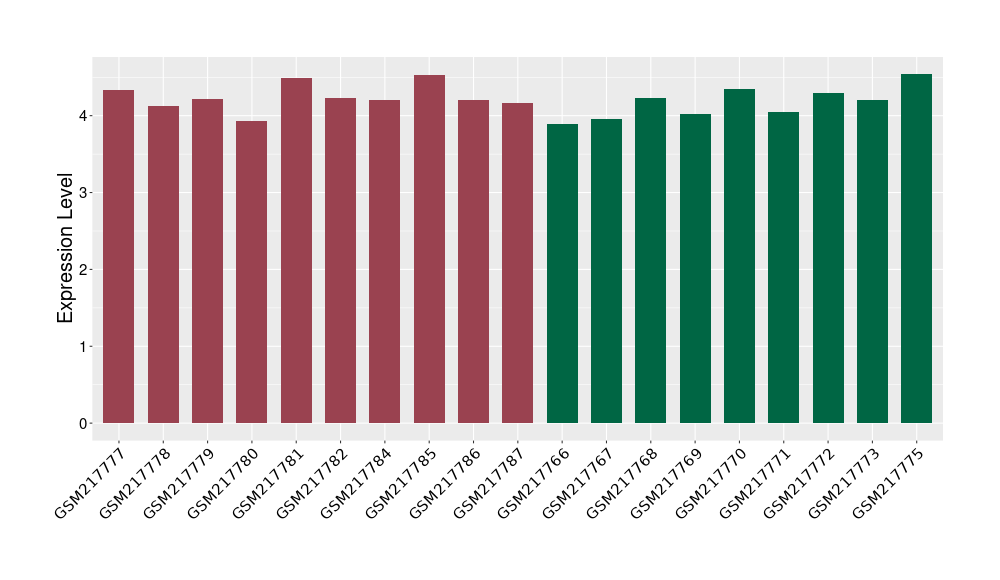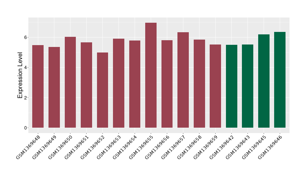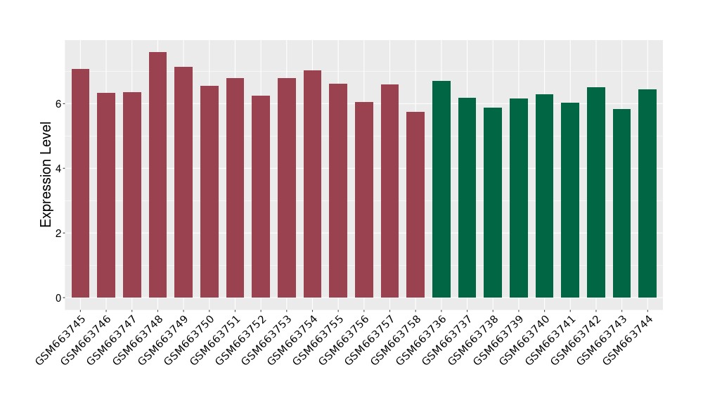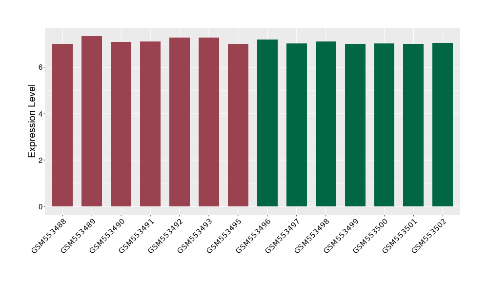 The Expression Level of Disease Section Compare with the Healthy Individual Tissue | p-value:0.918630708; Fold-change:-0.049777273; Z-score:-0.121553891 | ||||