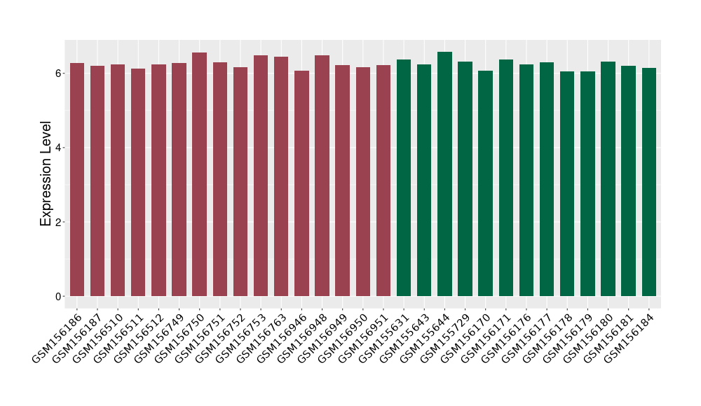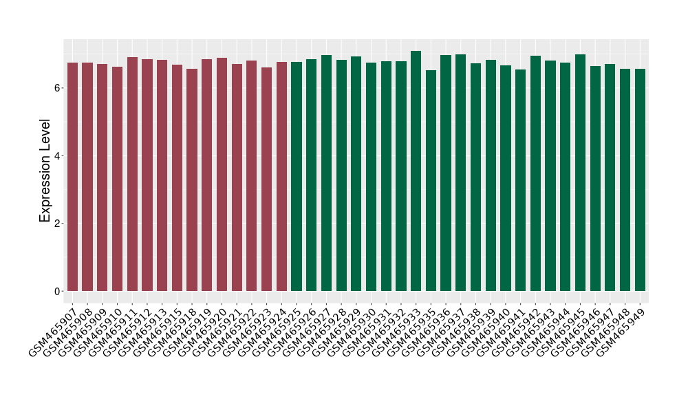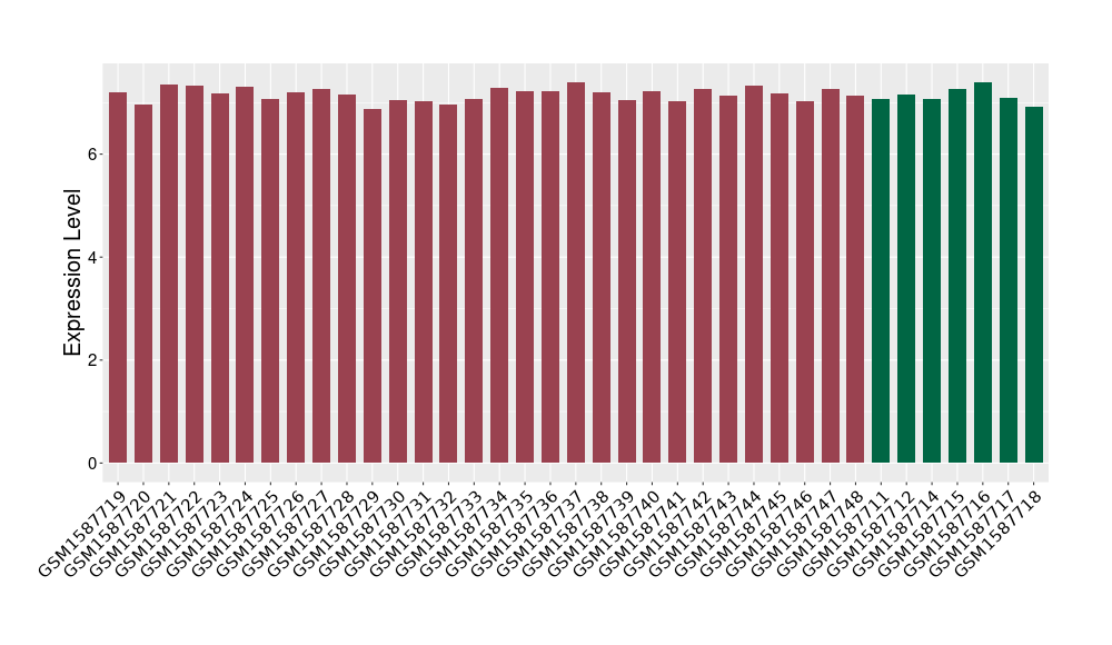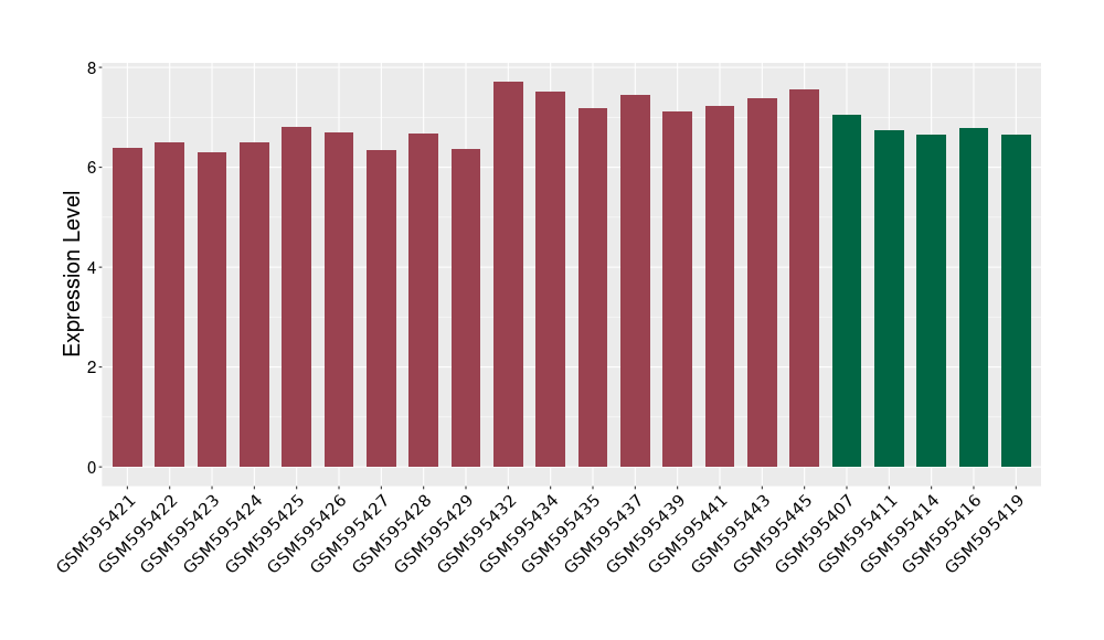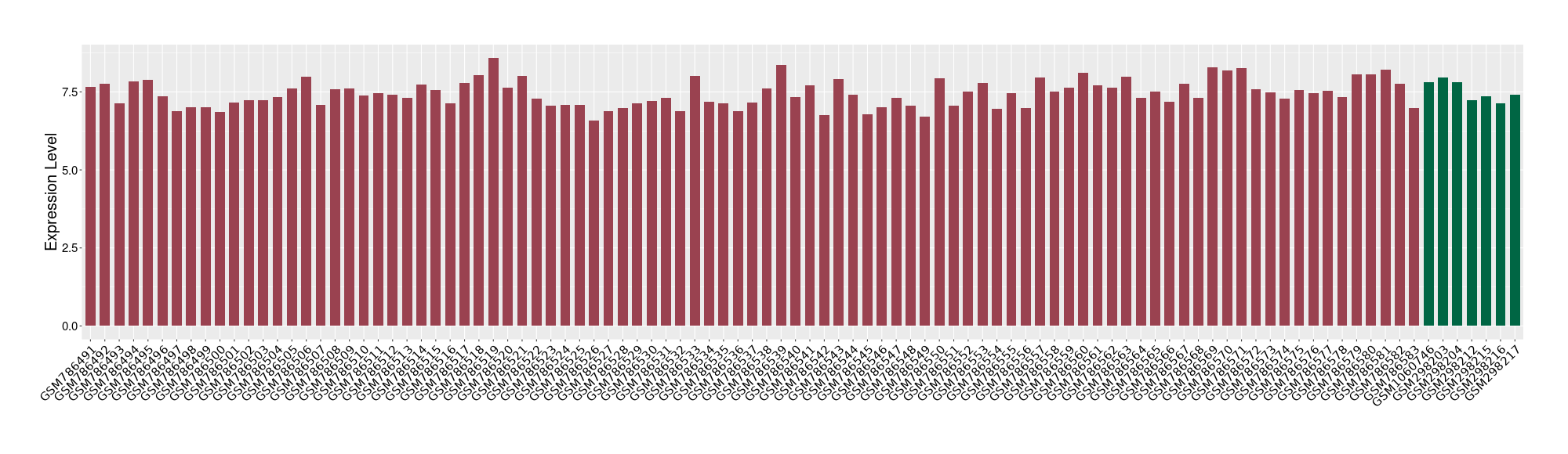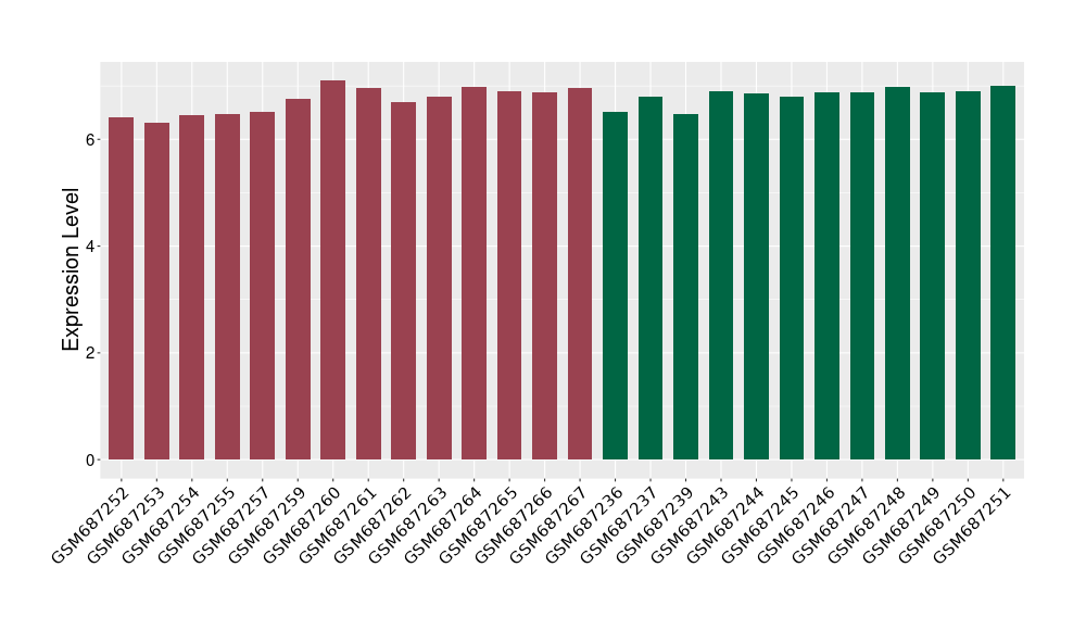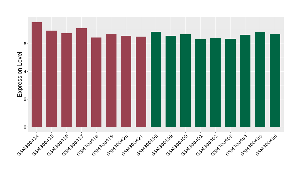 The Expression Level of Disease Section Compare with the Healthy Individual Tissue | p-value:0.918630708; Fold-change:-0.049777273; Z-score:-0.121553891 | ||||