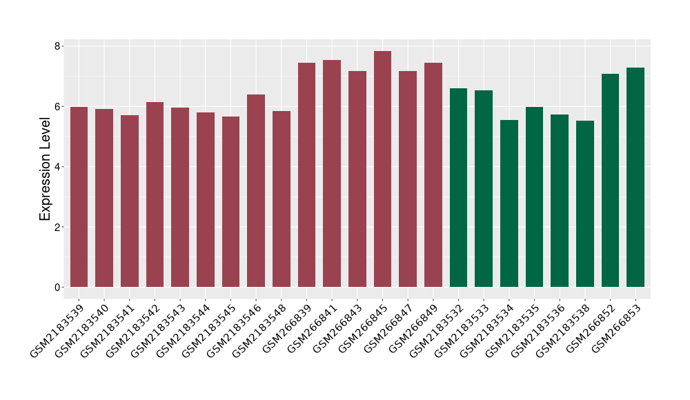 The Expression Level of Disease Section Compare with the Healthy Individual Tissue | p-value:0.013728417; Fold-change:0.775171258; Z-score:1.756717055 | ||||