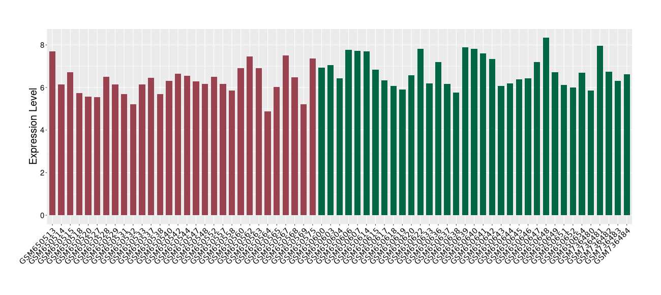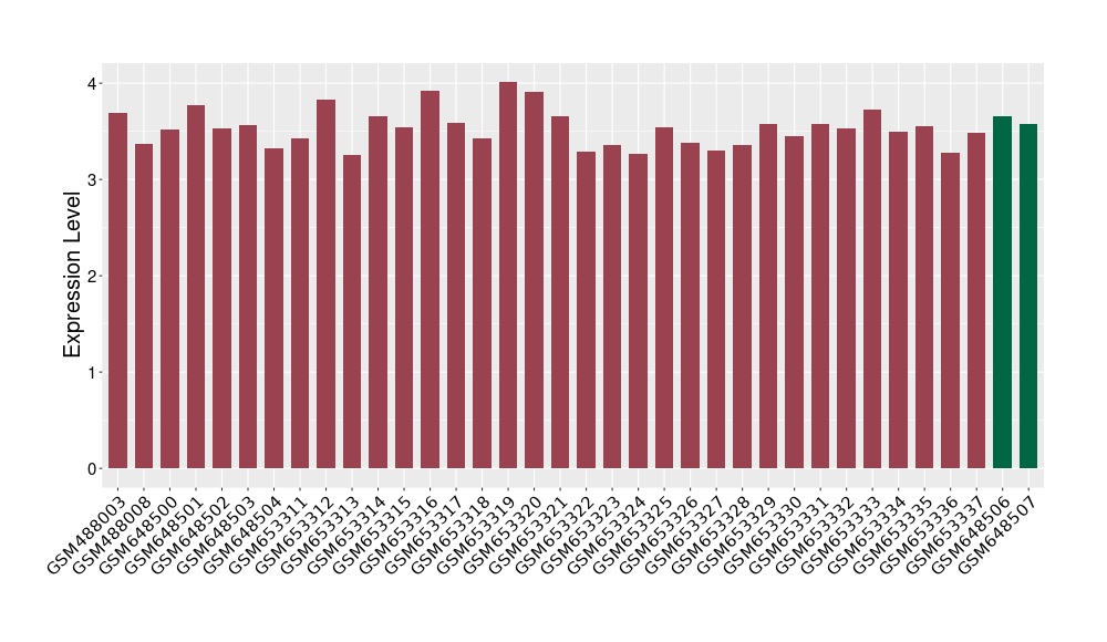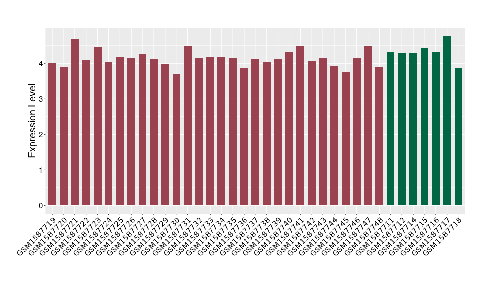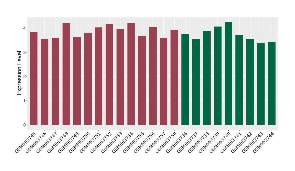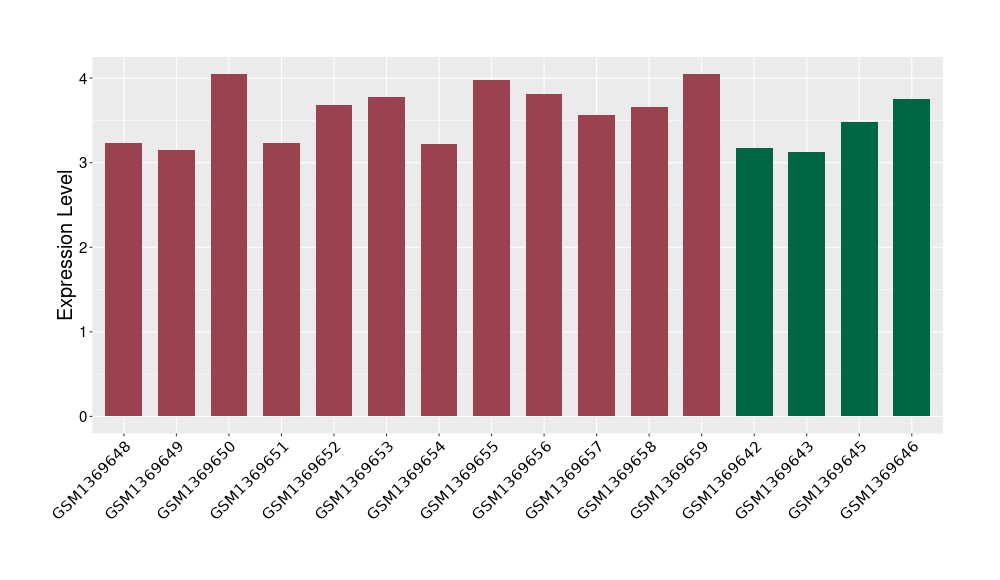 The Expression Level of Disease Section Compare with the Healthy Individual Tissue | p-value:0.736730234; Fold-change:-0.043712331; Z-score:-0.375259895 | ||||