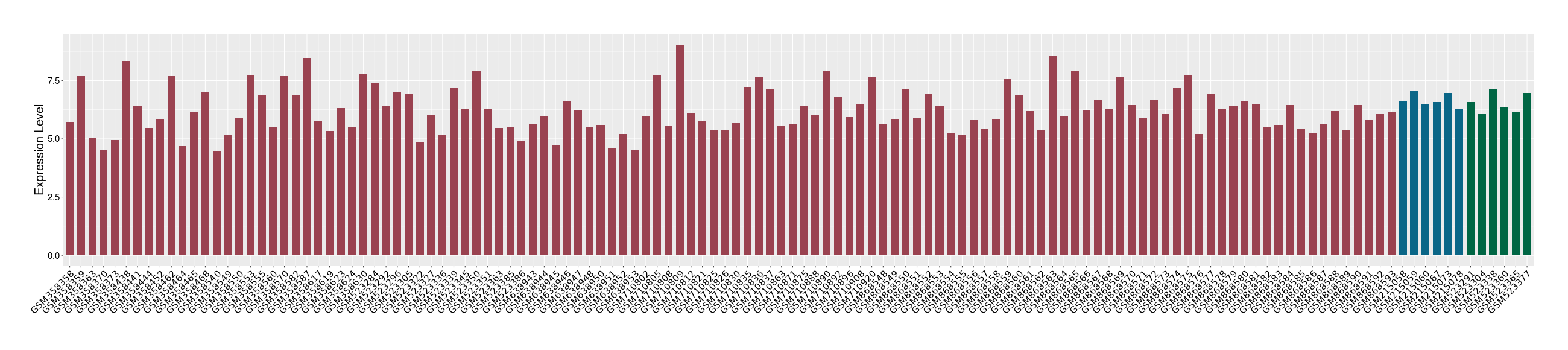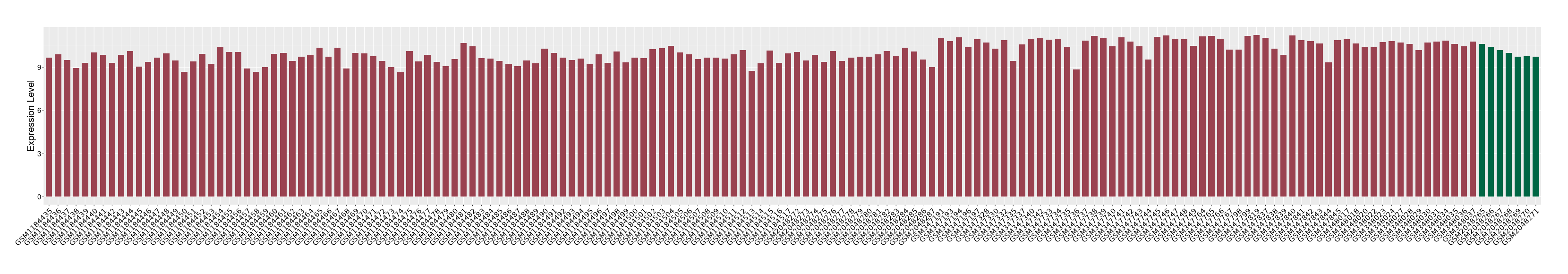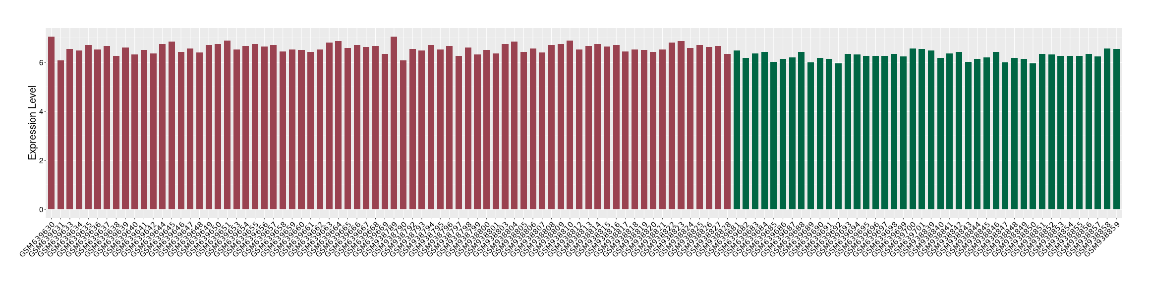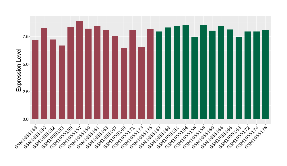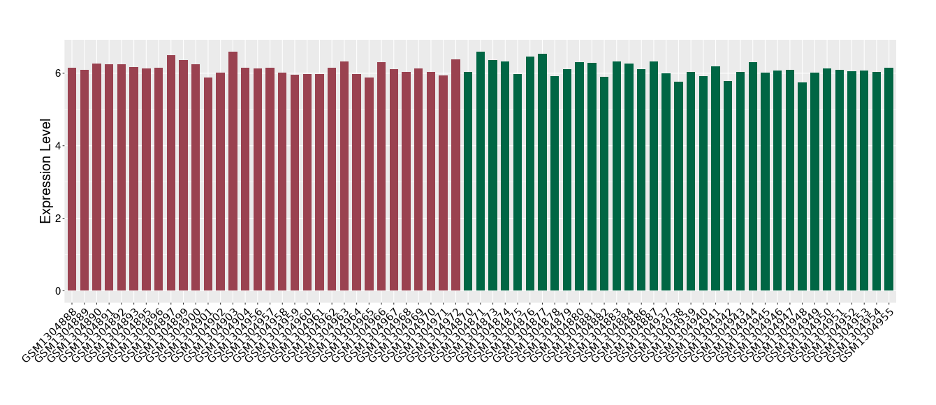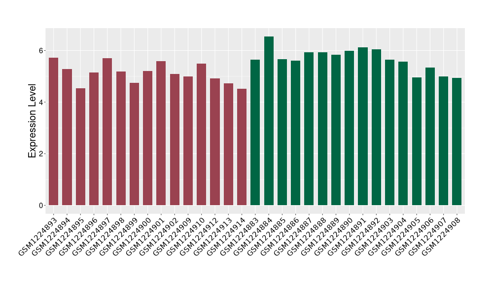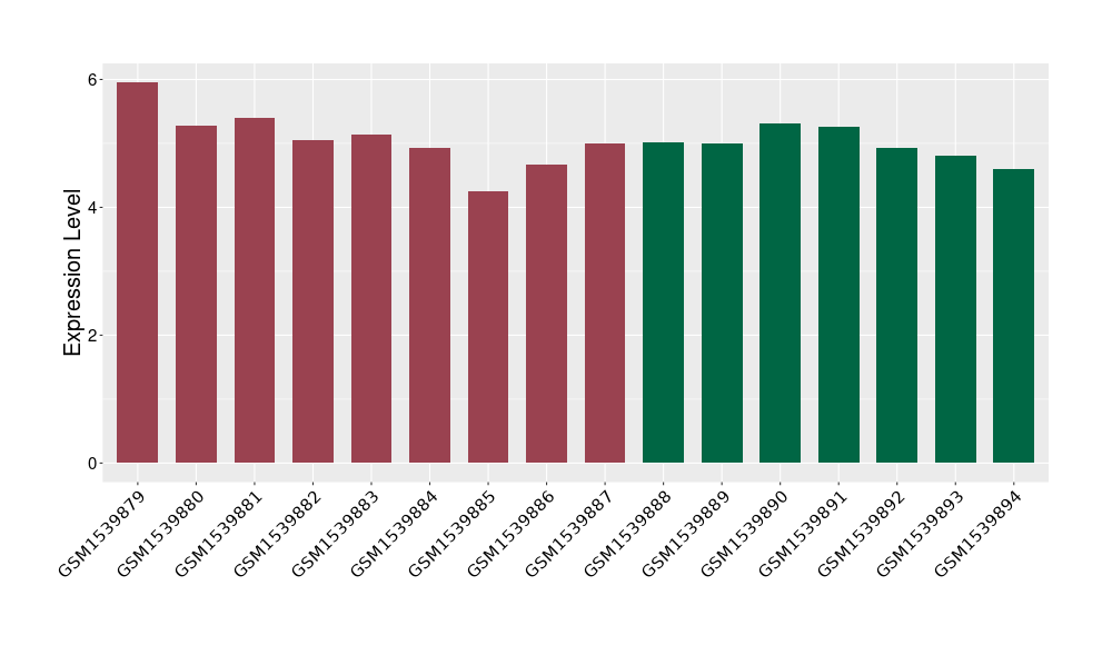 The Expression Level of Disease Section Compare with the Healthy Individual Tissue | p-value:0.00058258; Fold-change:-0.358444474; Z-score:-1.613947666 | ||||