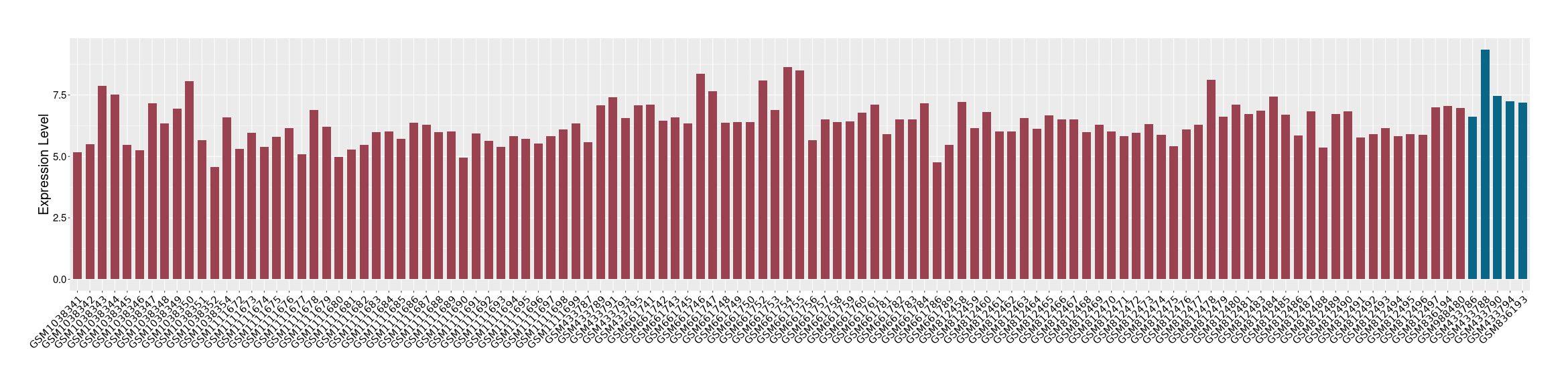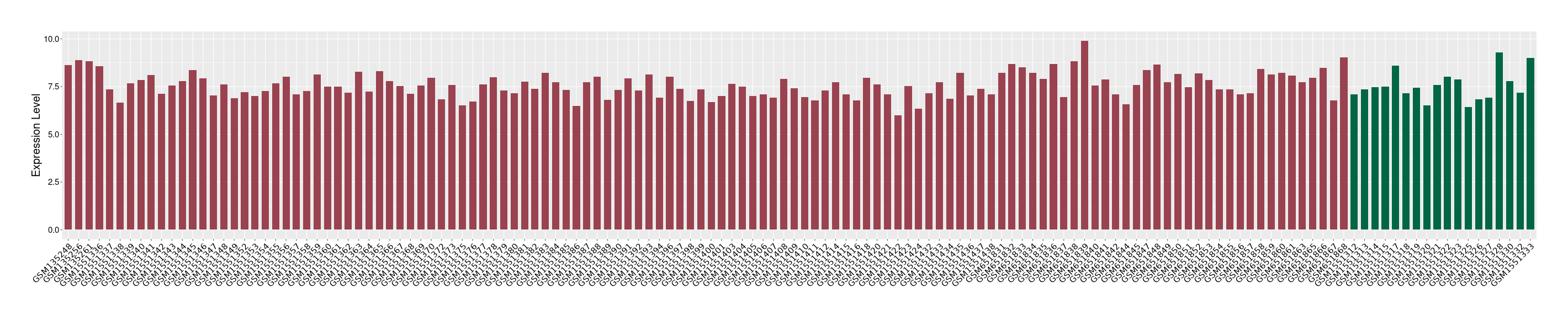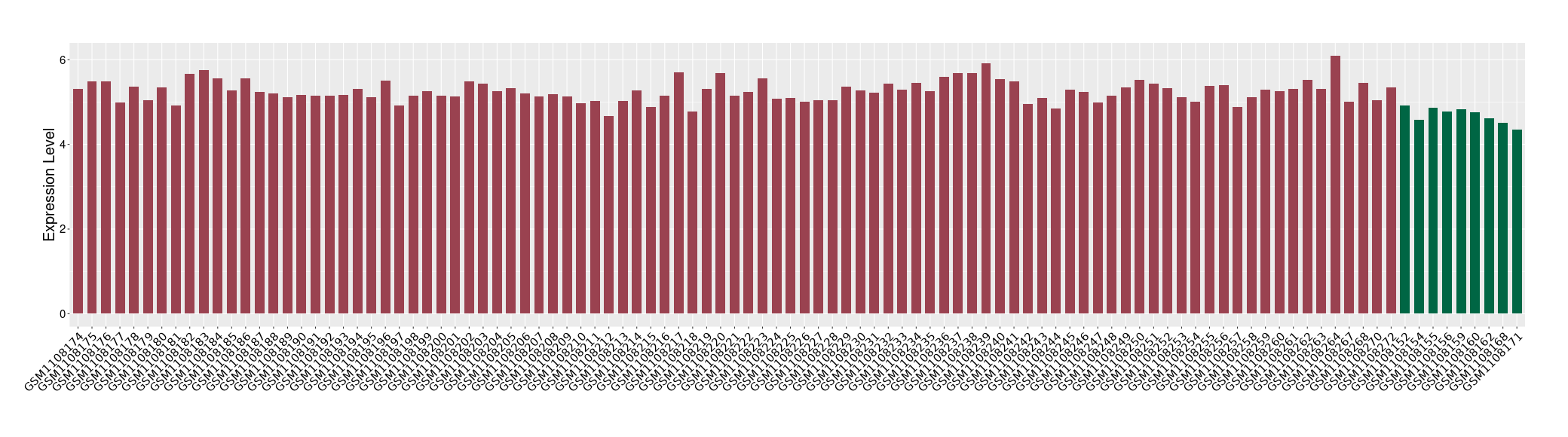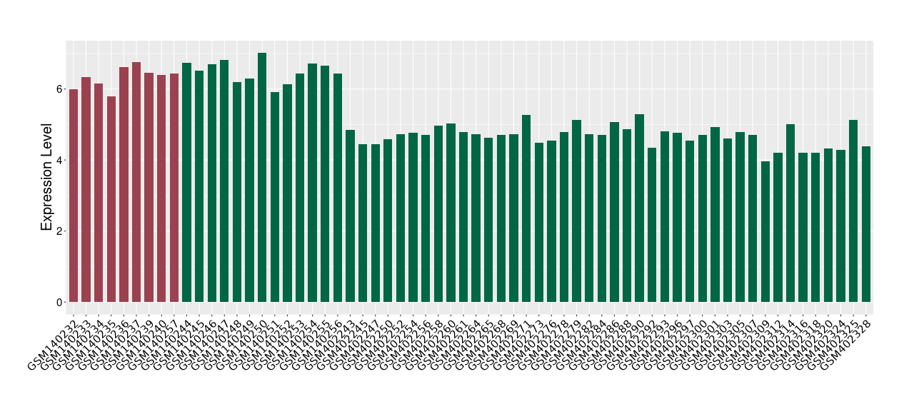 The Expression Level of Disease Section Compare with the Healthy Individual Tissue | p-value:0.000469293; Fold-change:-0.929644424; Z-score:-1.622610277 | ||||