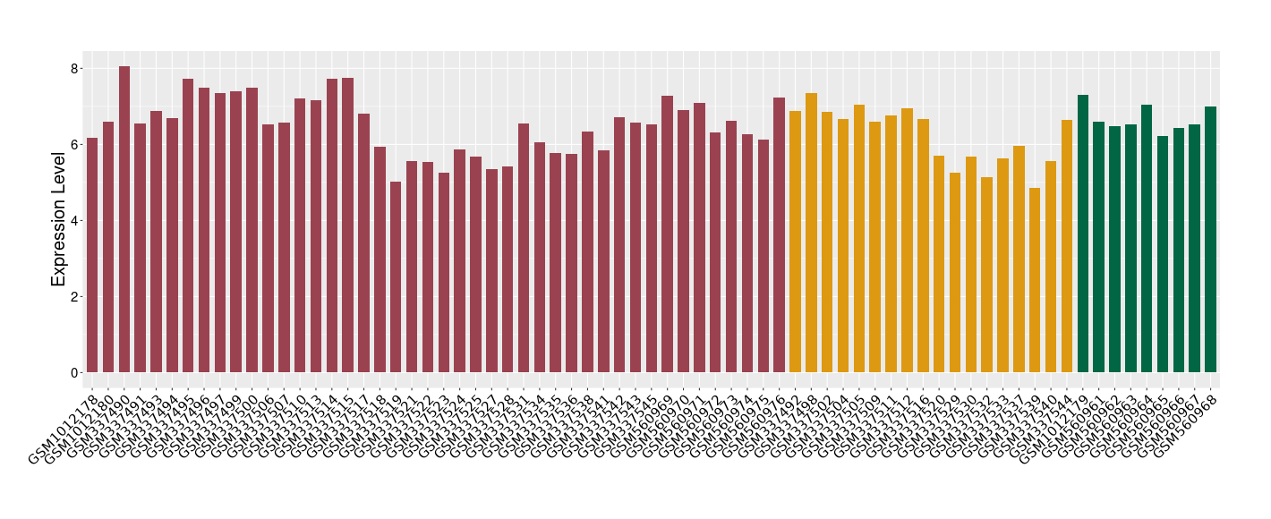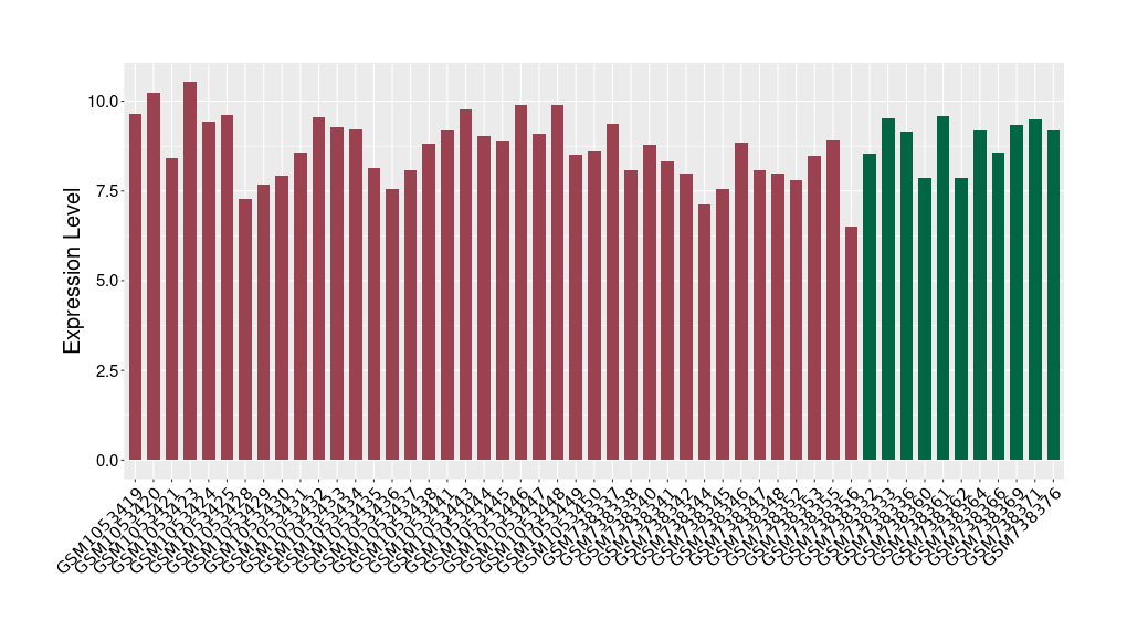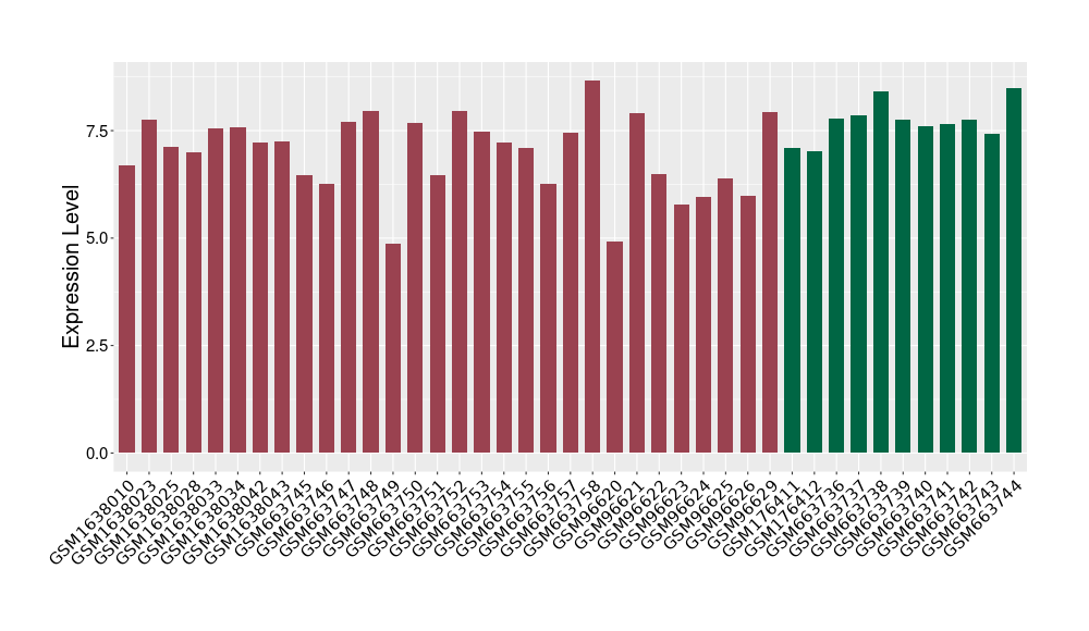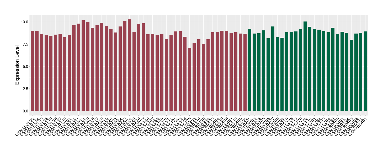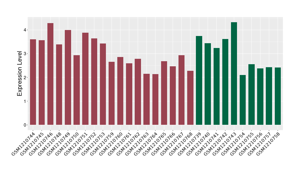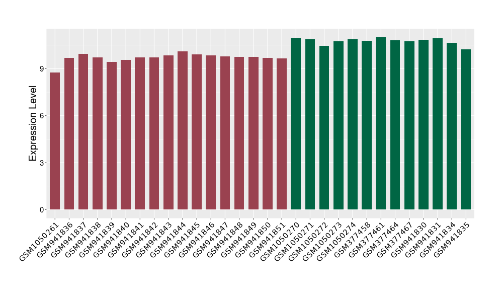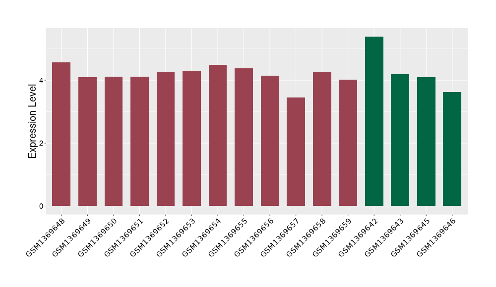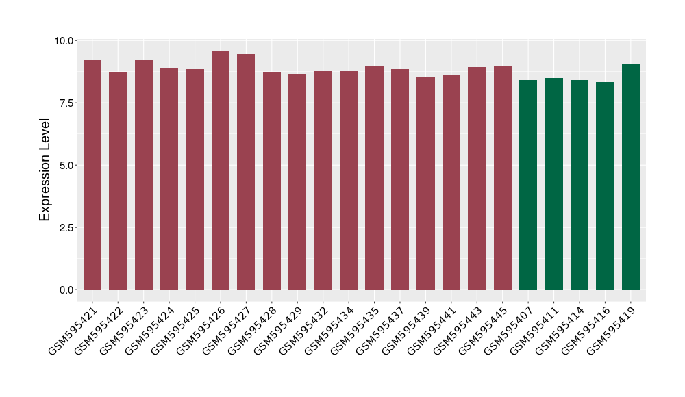 The Expression Level of Disease Section Compare with the Healthy Individual Tissue | p-value:4.41E-17; Fold-change:0.612741313; Z-score:1.68380615 | ||||