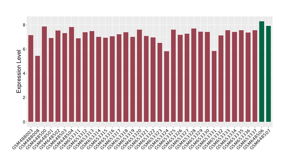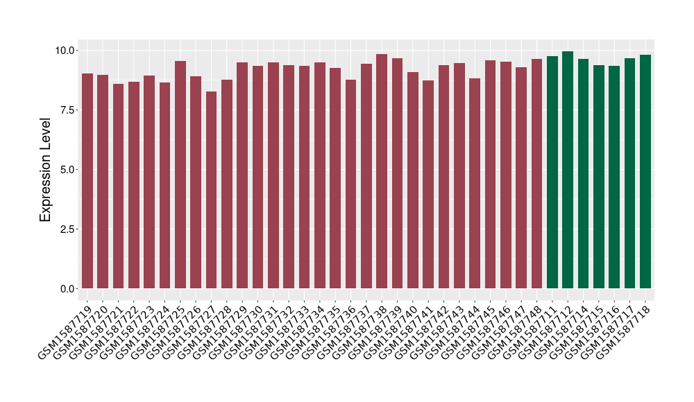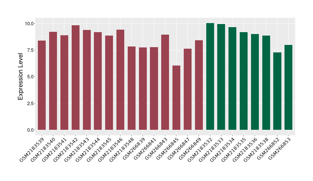 The Expression Level of Disease Section Compare with the Healthy Individual Tissue | p-value:0.044512605; Fold-change:0.440971445; Z-score:1.455007601 | ||||