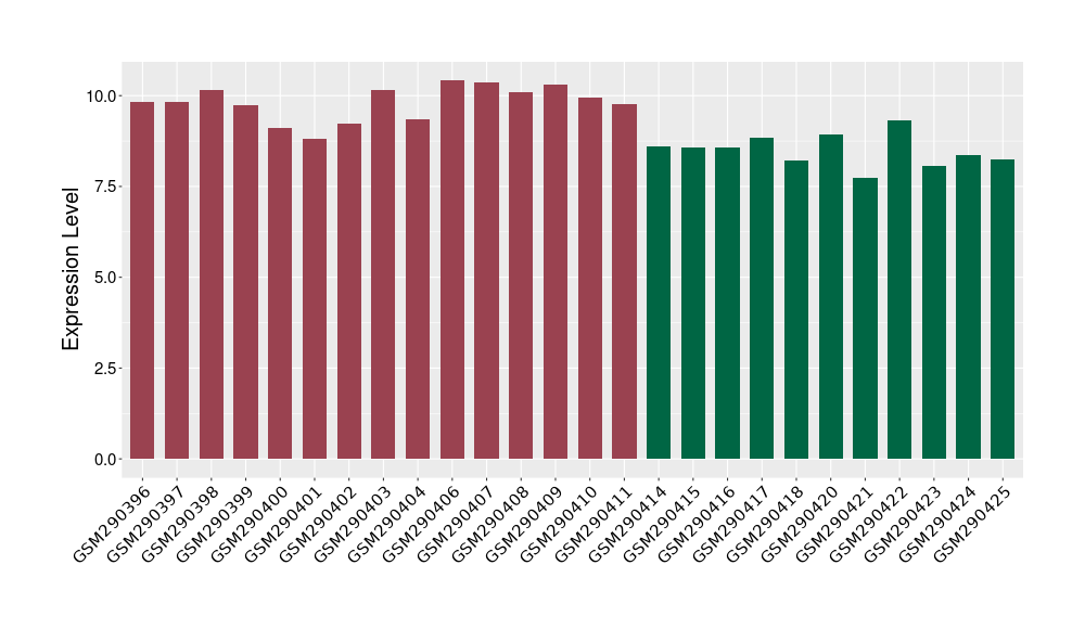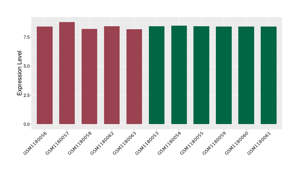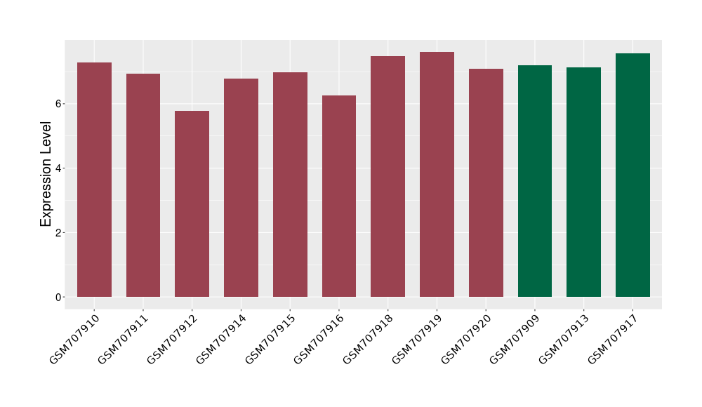 The Expression Level of Disease Section Compare with the Healthy Individual Tissue | p-value:0.649596191; Fold-change:-0.100745562; Z-score:-0.562693721 | ||||