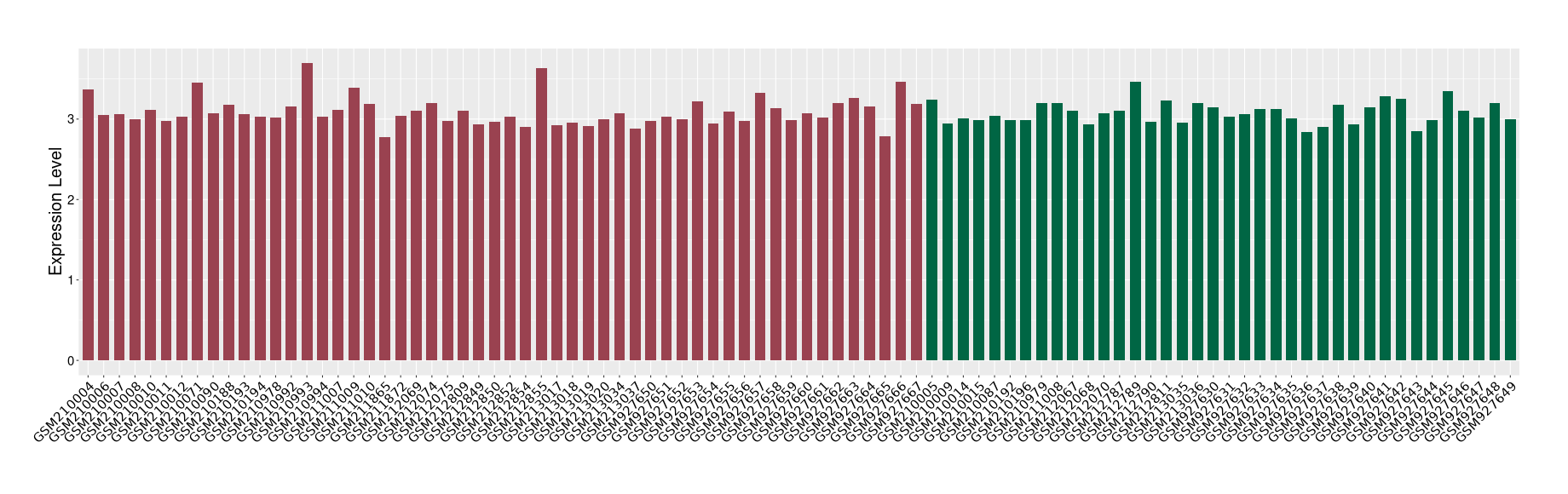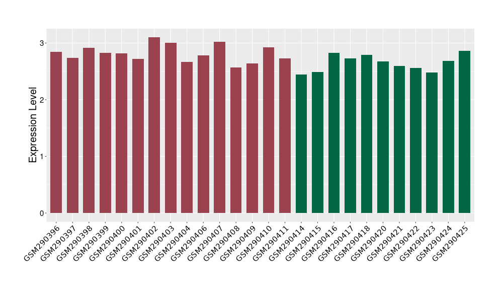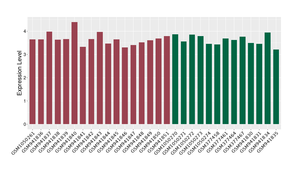 The Expression Level of Disease Section Compare with the Healthy Individual Tissue | p-value:0.659211916; Fold-change:-0.05507425; Z-score:-0.407956888 | ||||