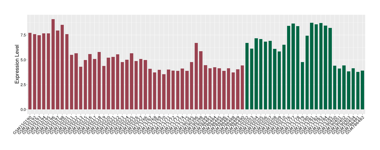 The Expression Level of Disease Section Compare with the Healthy Individual Tissue | p-value:7.00E-07; Fold-change:-1.642034159; Z-score:-9.000655111 | ||||