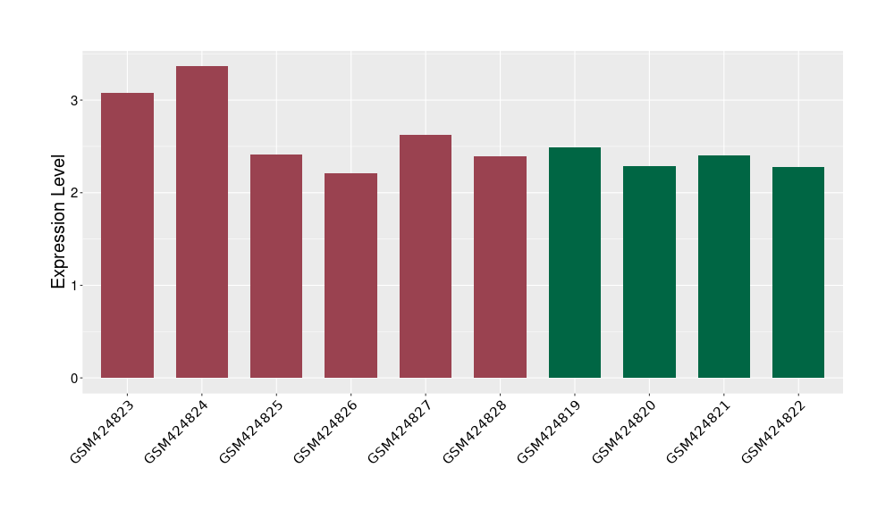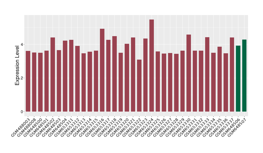 The Expression Level of Disease Section Compare with the Healthy Individual Tissue | p-value:0.000548027; Fold-change:-0.182835593; Z-score:-0.485143289 | ||||