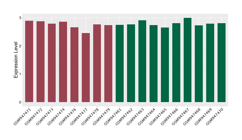 The Expression Level of Disease Section Compare with the Healthy Individual Tissue | p-value:0.151520396; Fold-change:0.171284862; Z-score:1.698926784 | ||||