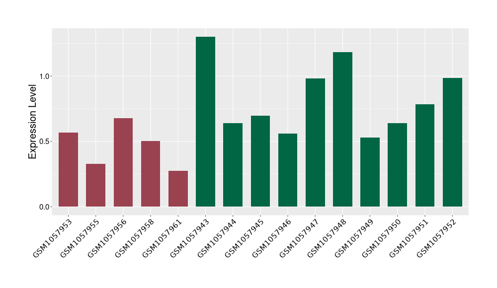The Expression Level of Disease Section Compare with the Healthy Individual Tissue | p-value:0.158501459; Fold-change:0.253757894; Z-score:1.724809053 | ||||