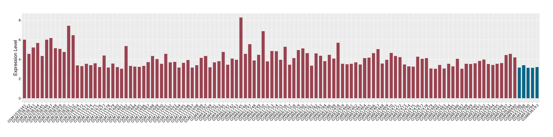 The Expression Level of Disease Section Compare with the Healthy Individual Tissue | p-value:1.69E-29; Fold-change:0.173882472; Z-score:0.362579045 | ||||