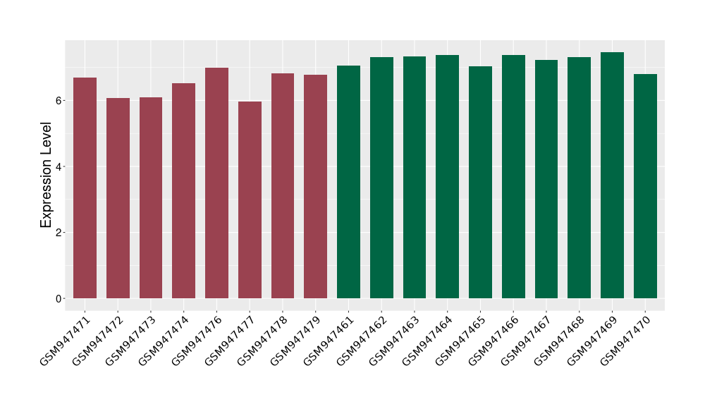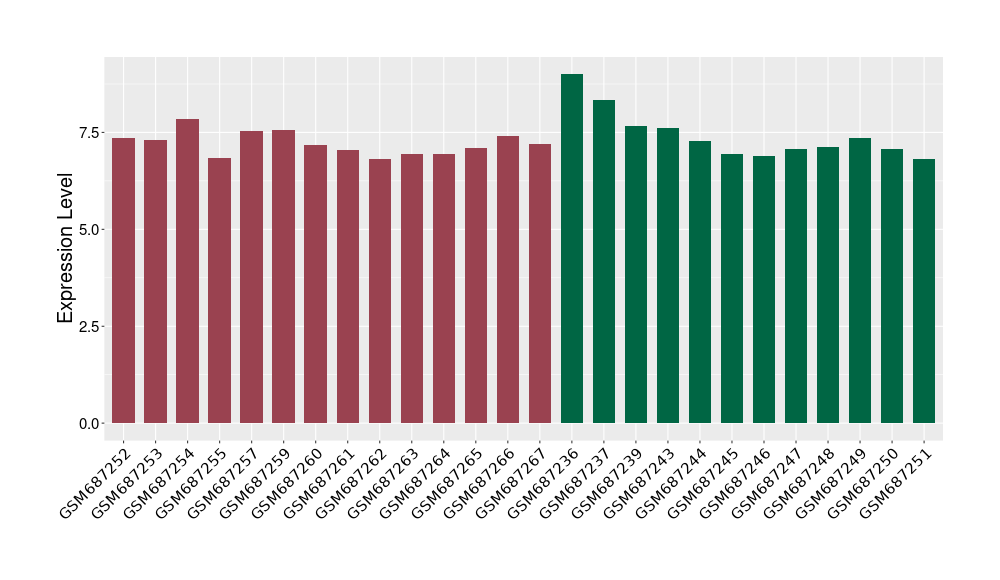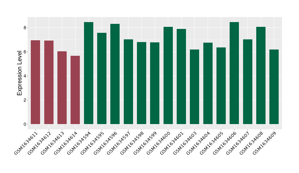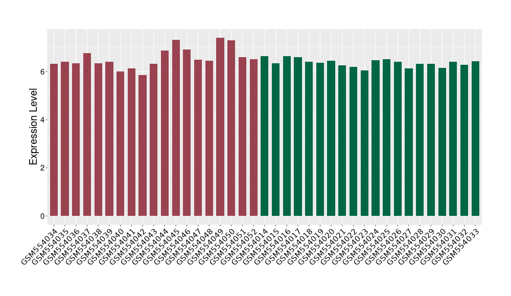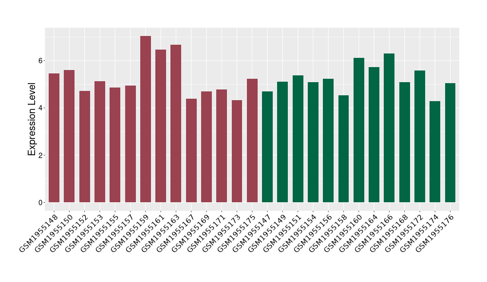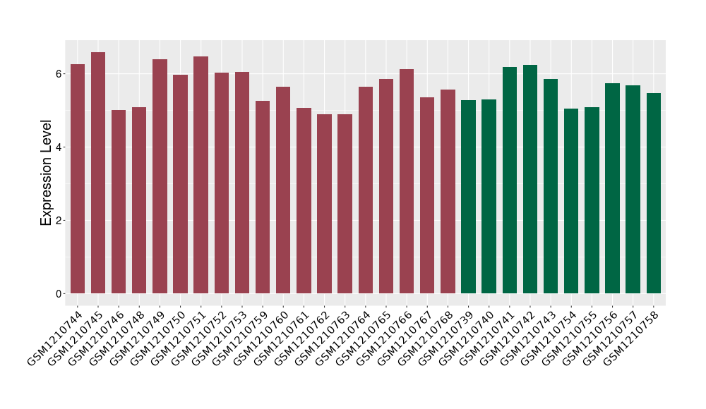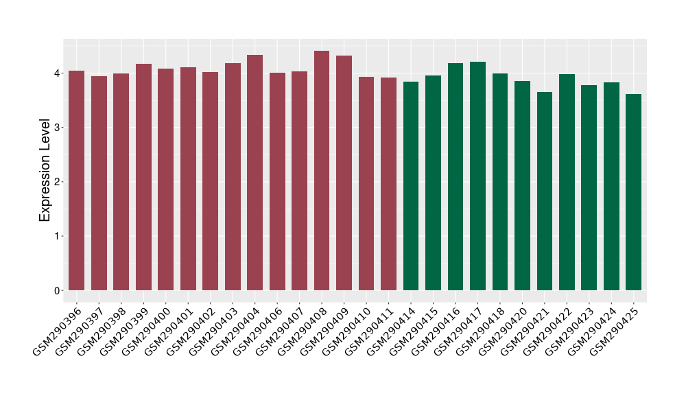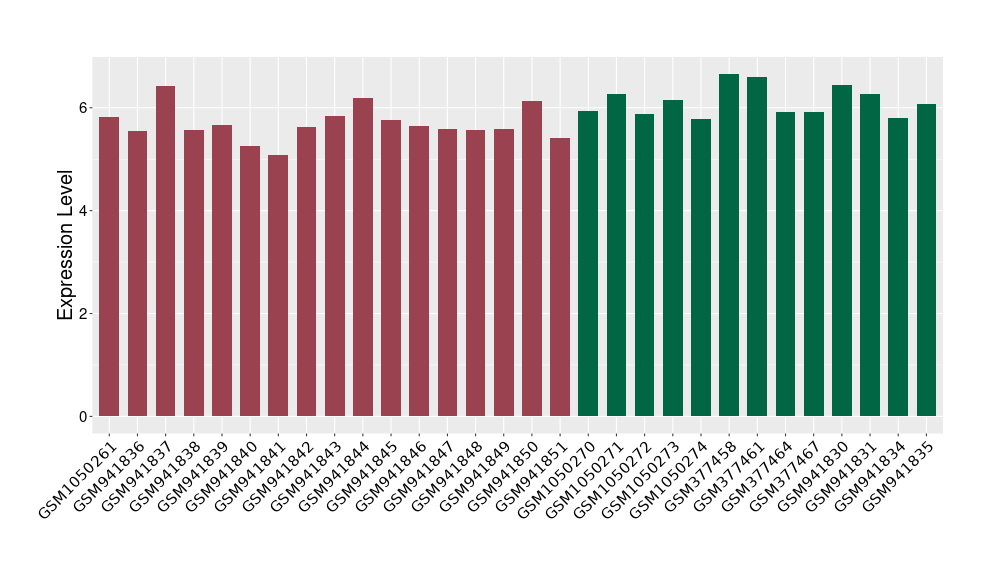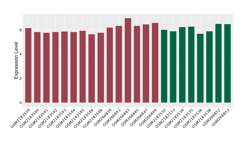 The Expression Level of Disease Section Compare with the Healthy Individual Tissue | p-value:1.37E-05; Fold-change:-0.364357698; Z-score:-2.467486536 | ||||