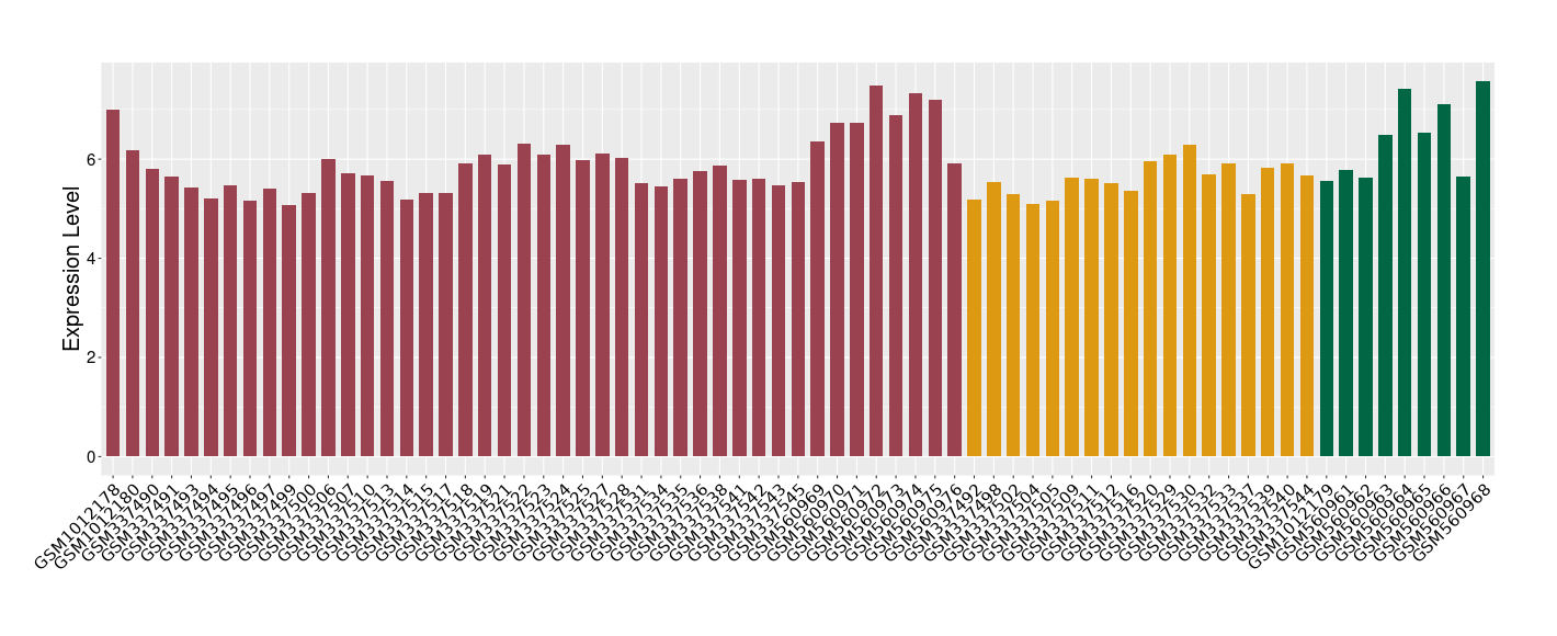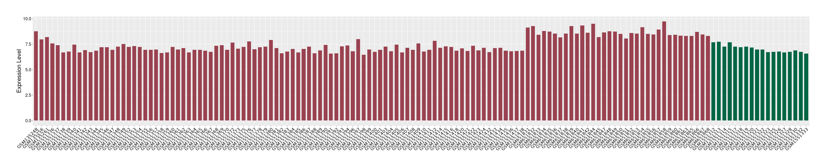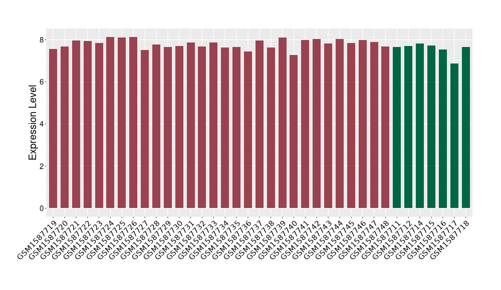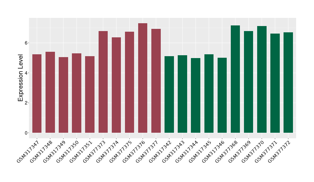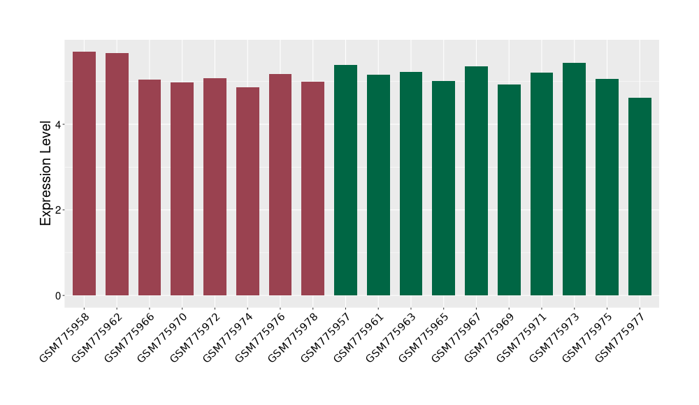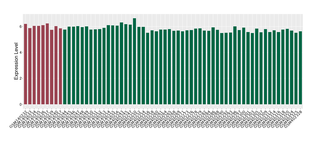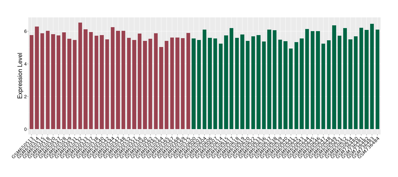 The Expression Level of Disease Section Compare with the Healthy Individual Tissue | p-value:1.37E-05; Fold-change:-0.364357698; Z-score:-2.467486536 | ||||