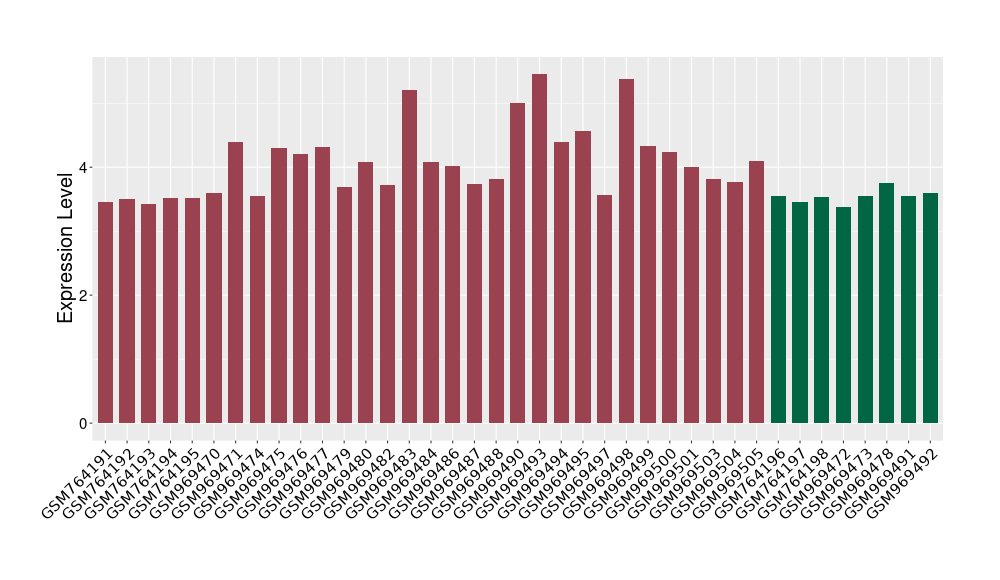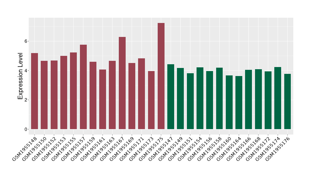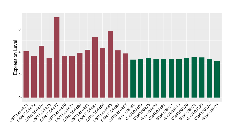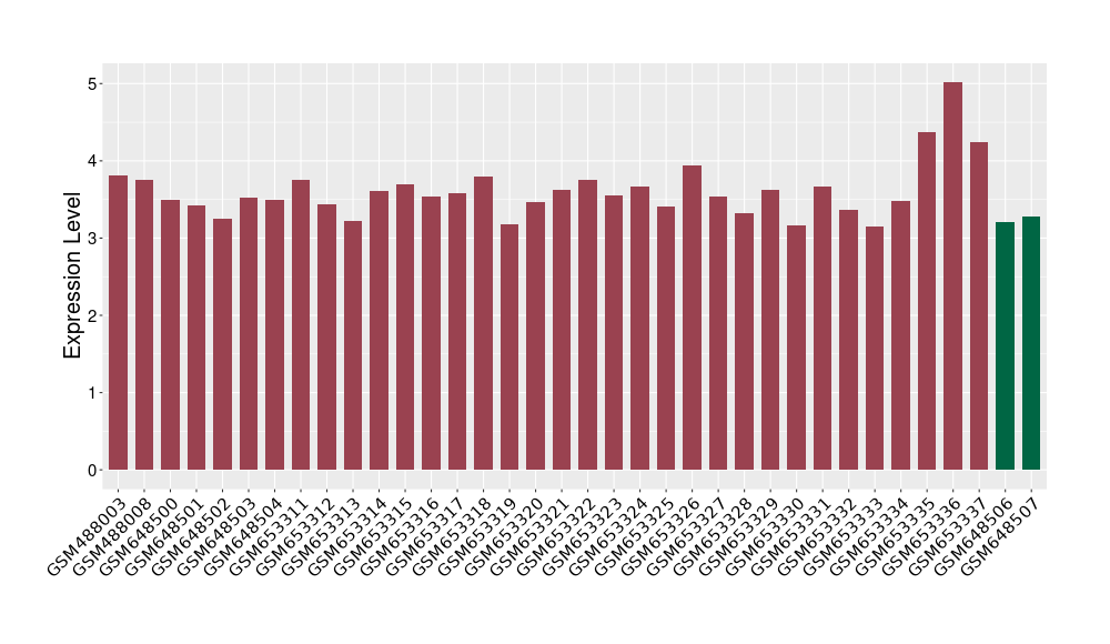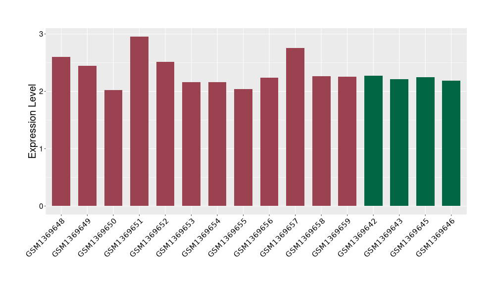 The Expression Level of Disease Section Compare with the Healthy Individual Tissue | p-value:0.002053449; Fold-change:0.704637065; Z-score:55.80340641 | ||||