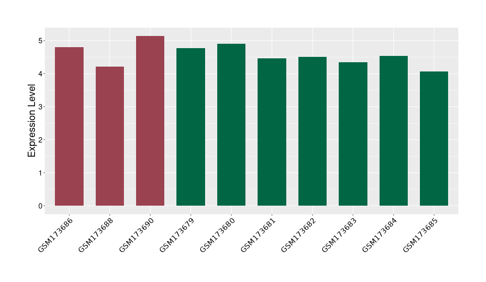The Expression Level of Disease Section Compare with the Healthy Individual Tissue | p-value:0.000175118; Fold-change:0.311156004; Z-score:6.10623568 | ||||