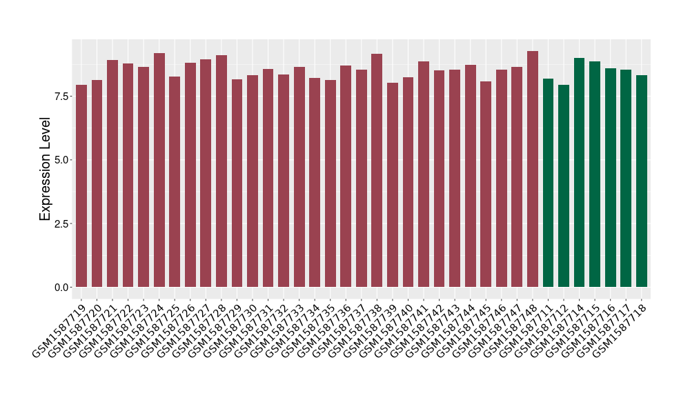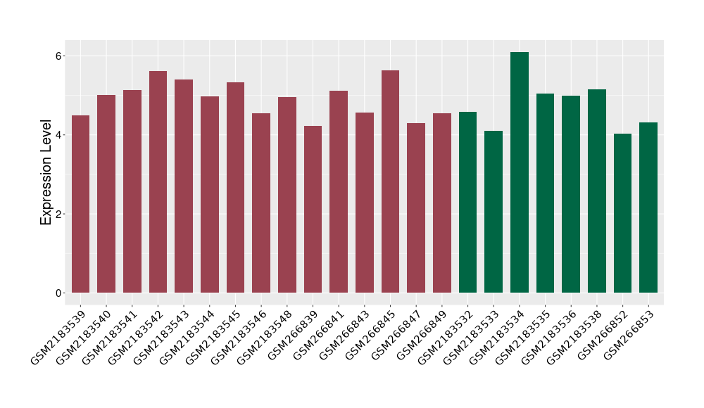 The Expression Level of Disease Section Compare with the Healthy Individual Tissue | p-value:0.010957113; Fold-change:0.435850801; Z-score:1.684201173 | ||||