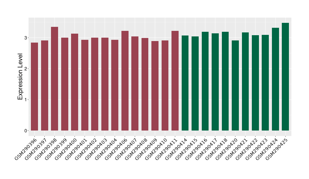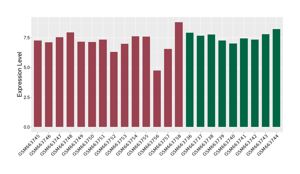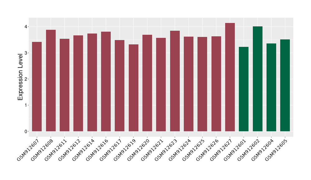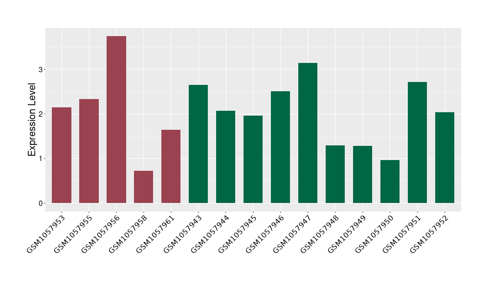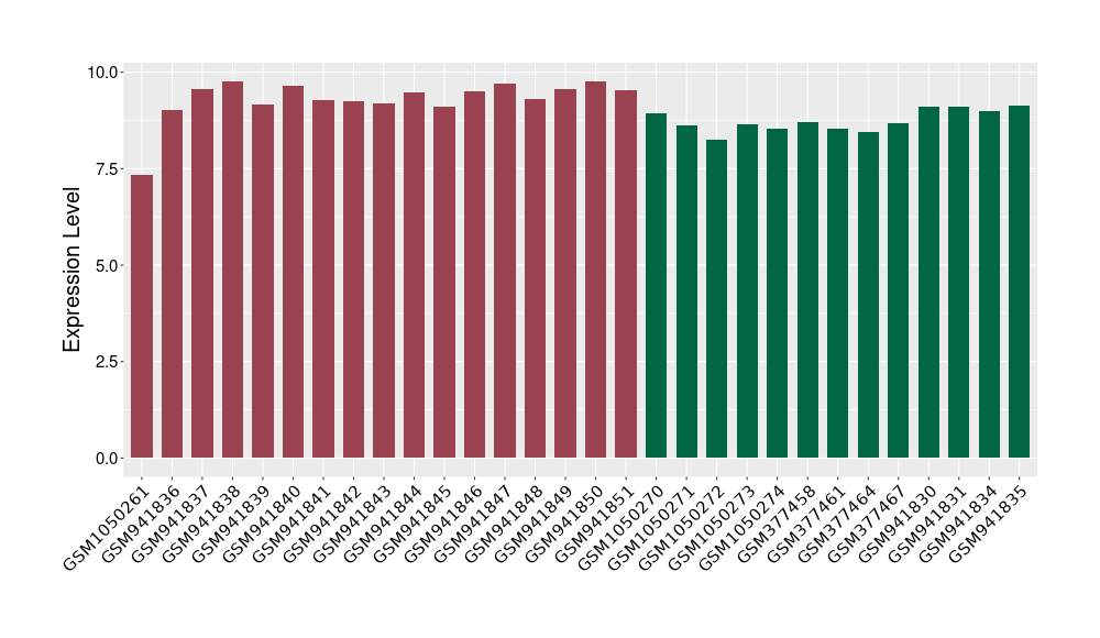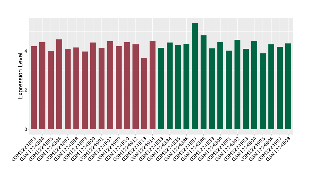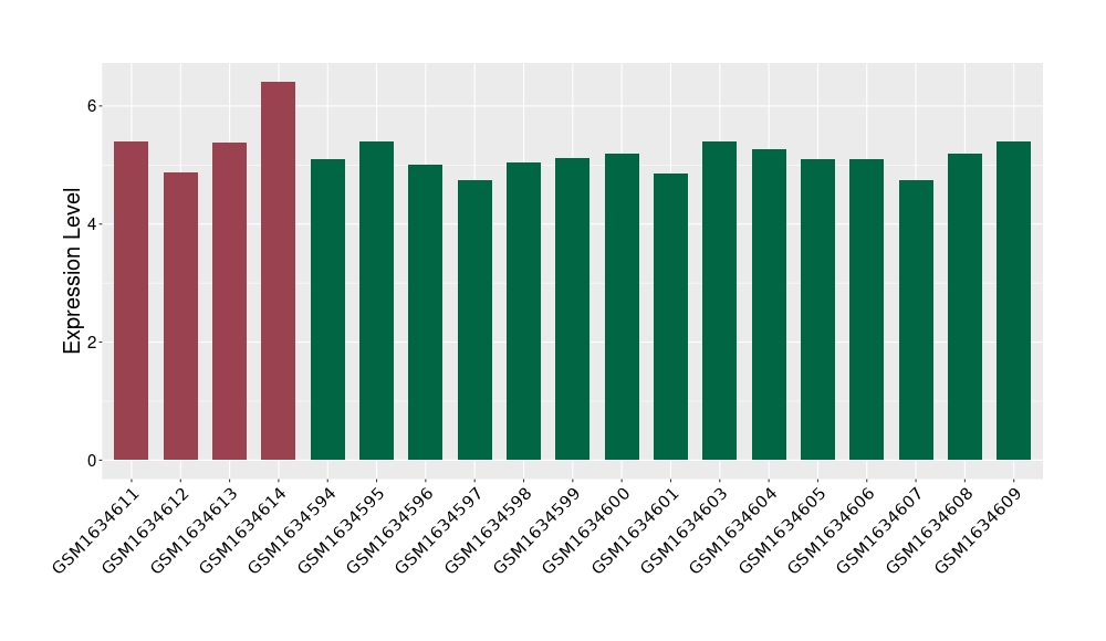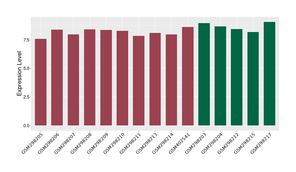 The Expression Level of Disease Section Compare with the Healthy Individual Tissue | p-value:0.294099391; Fold-change:-0.256669558; Z-score:-1.051473865 | ||||
