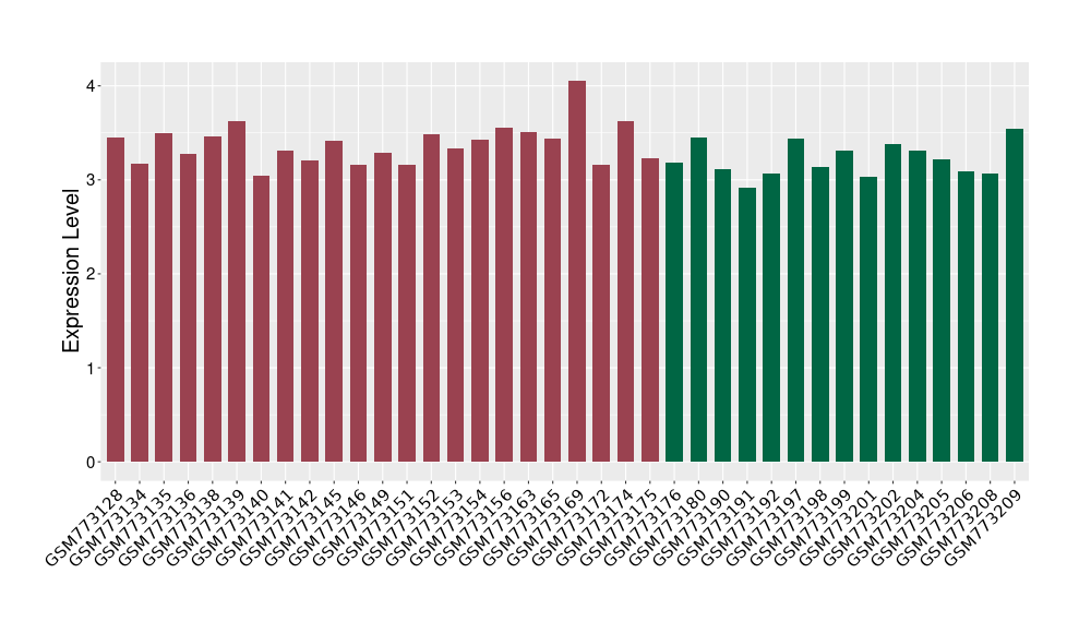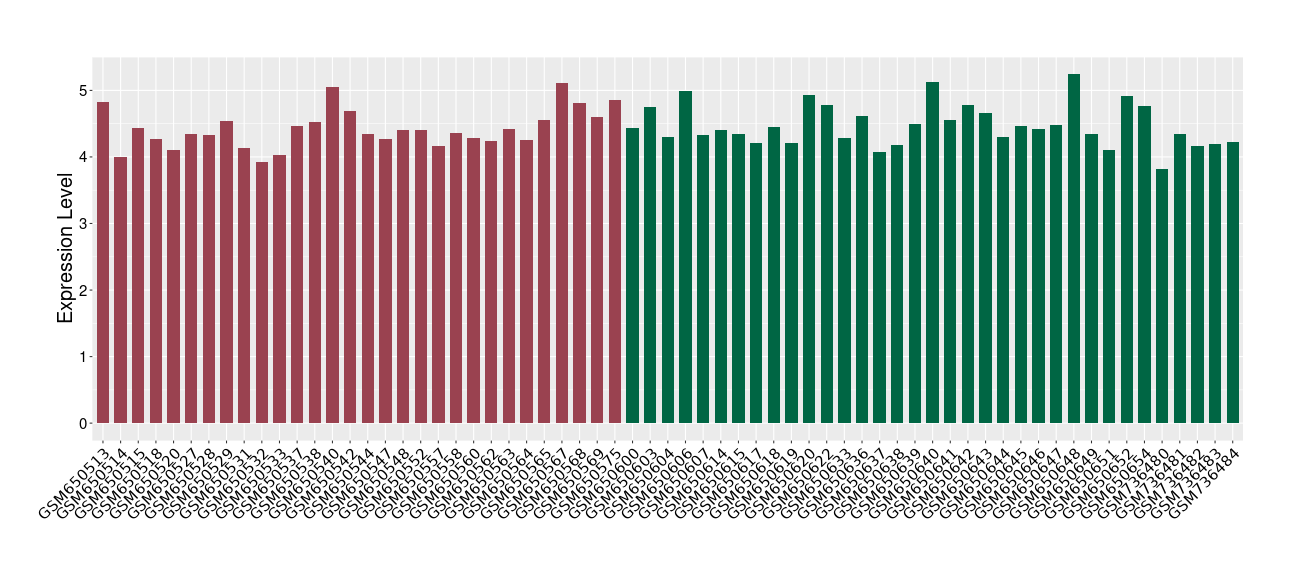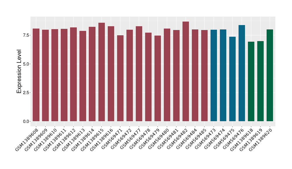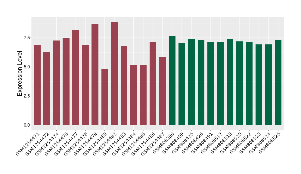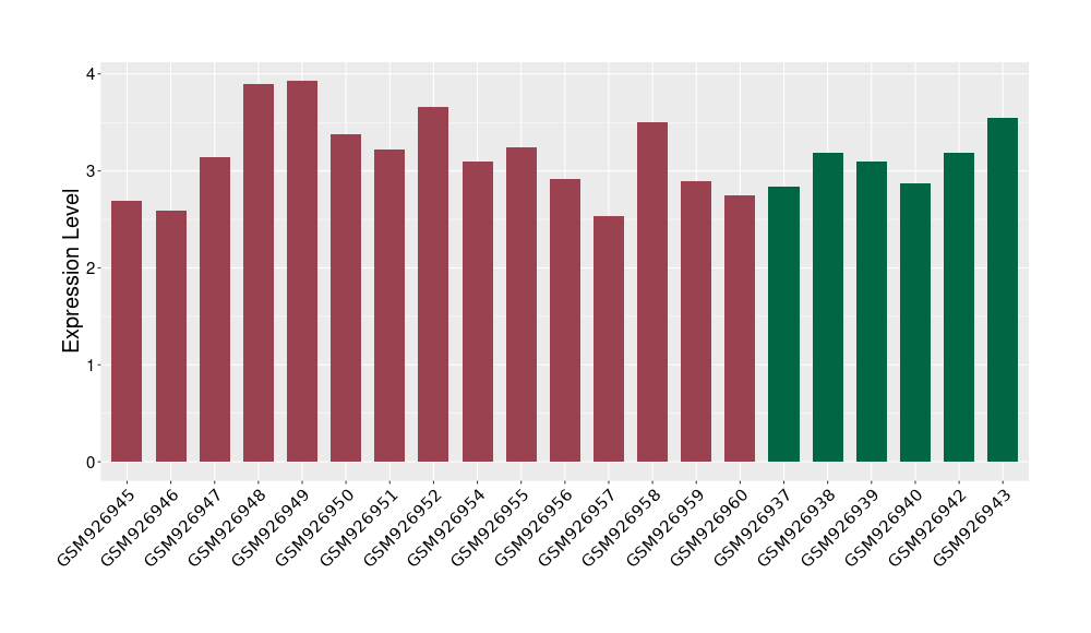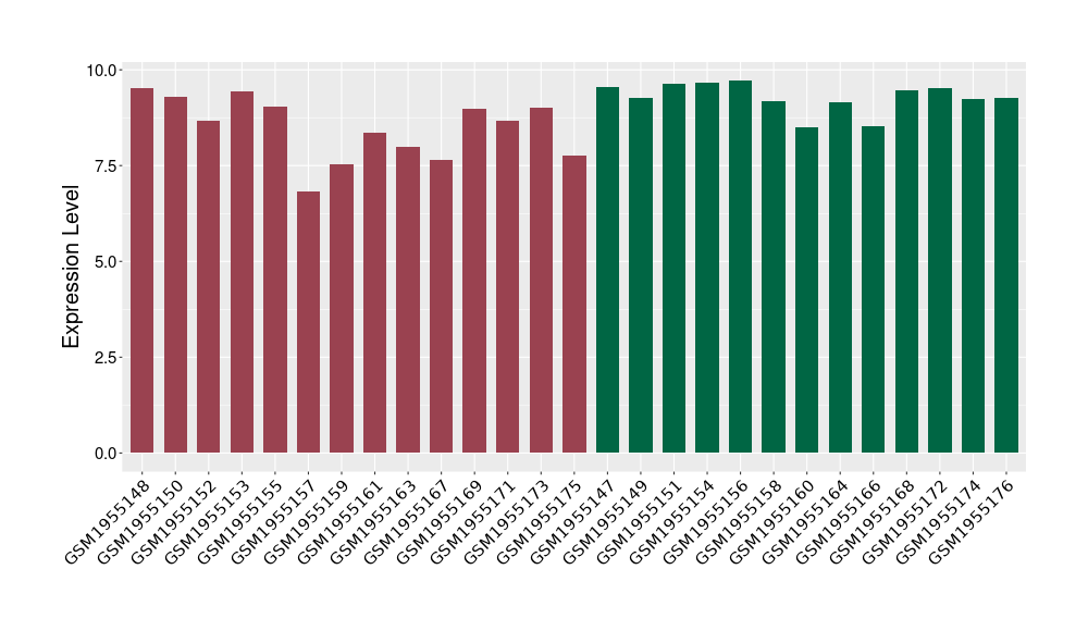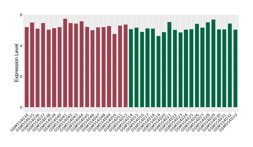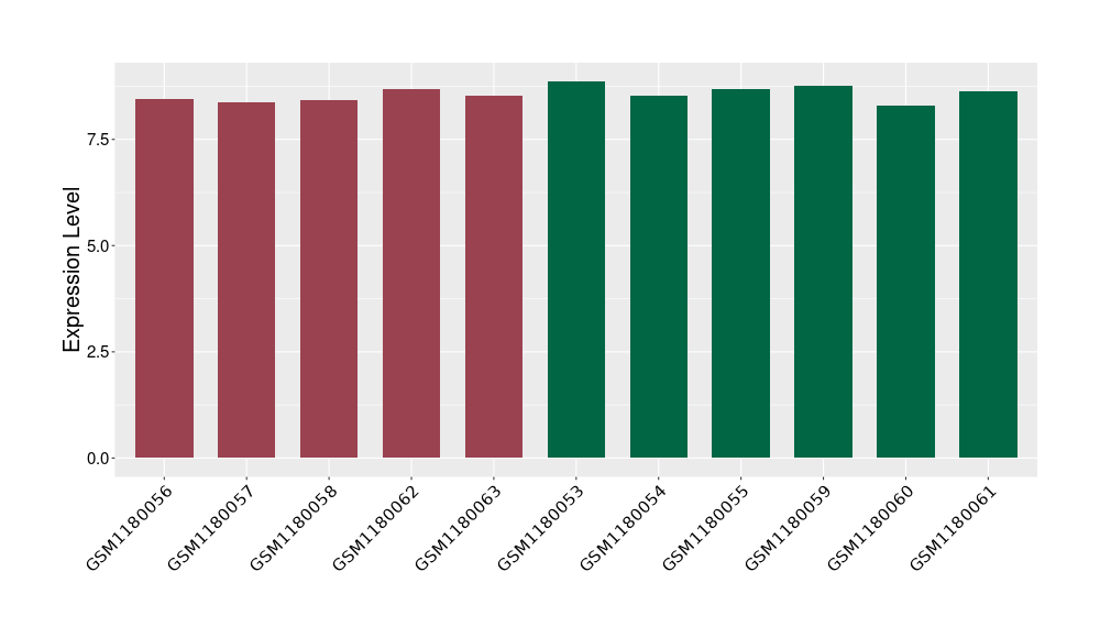 The Expression Level of Disease Section Compare with the Healthy Individual Tissue | p-value:0.294099391; Fold-change:-0.256669558; Z-score:-1.051473865 | ||||