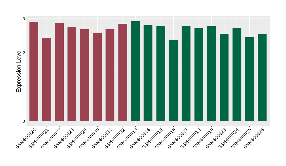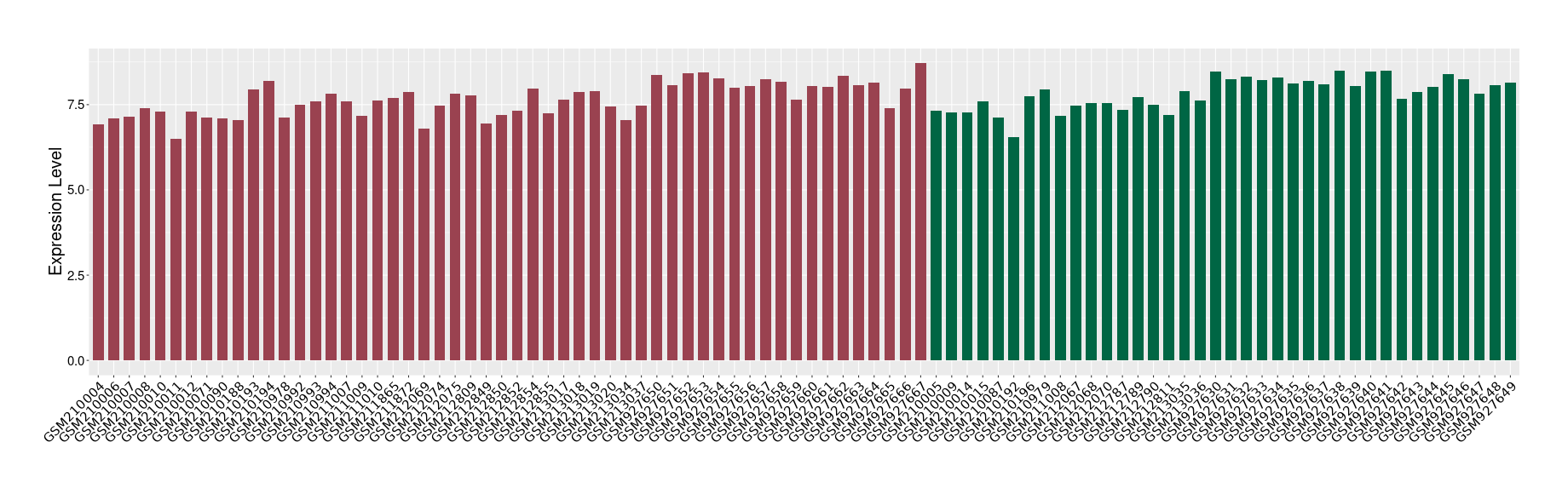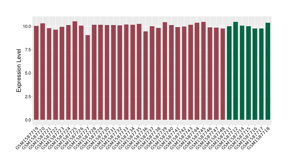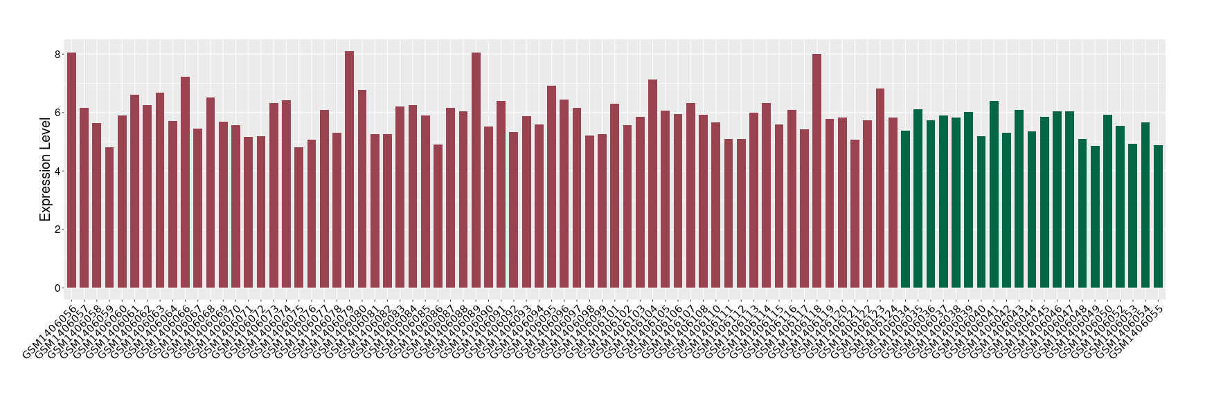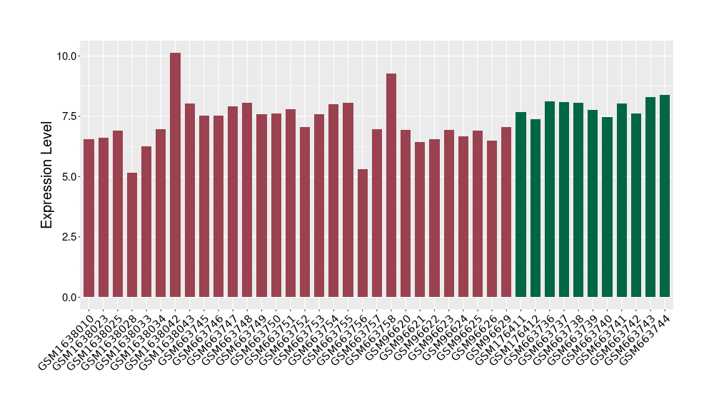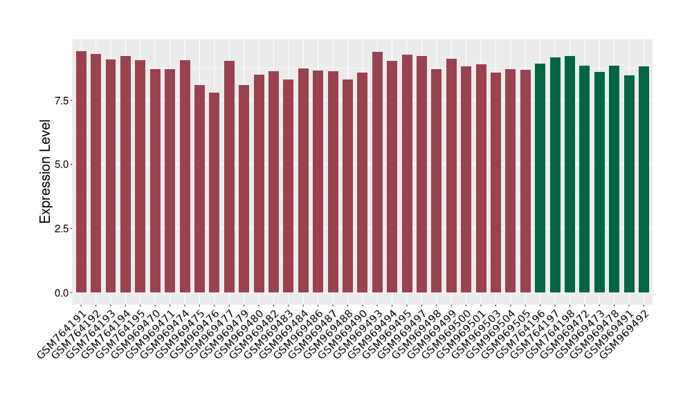 The Expression Level of Disease Section Compare with the Healthy Individual Tissue | p-value:0.294099391; Fold-change:-0.256669558; Z-score:-1.051473865 | ||||