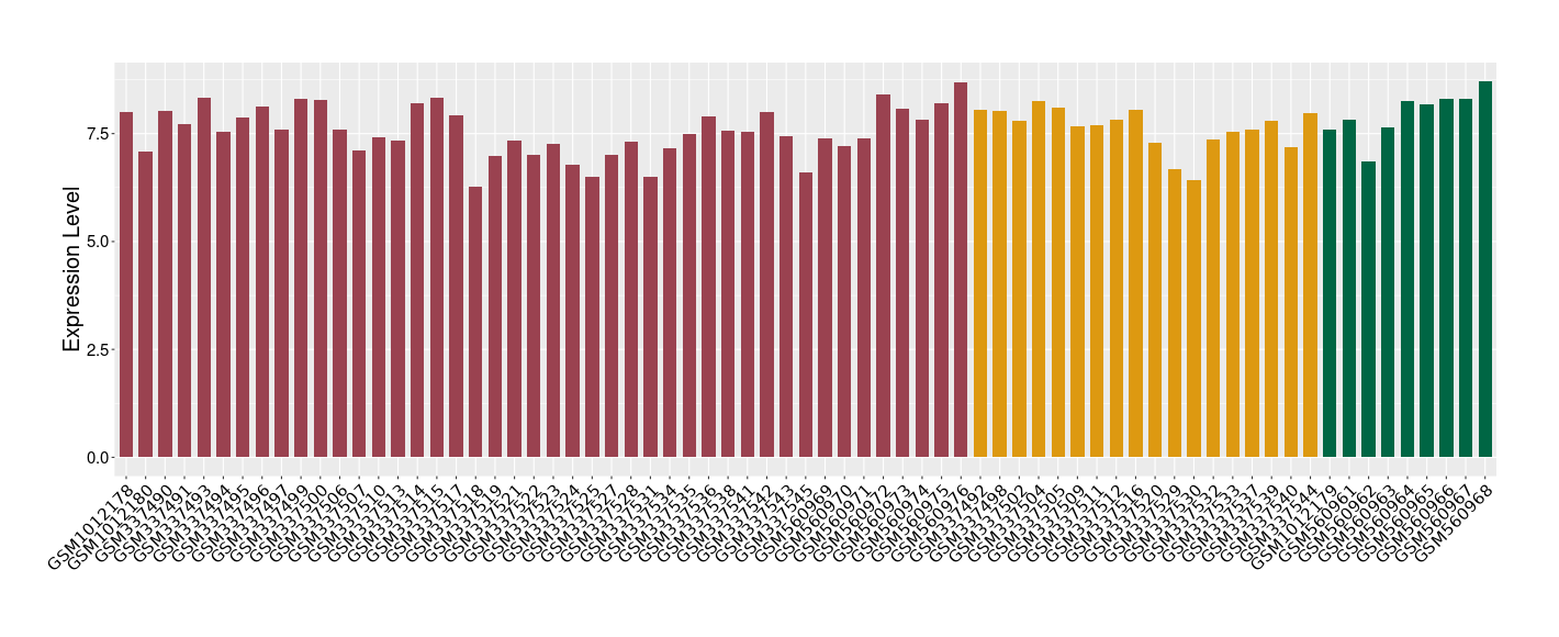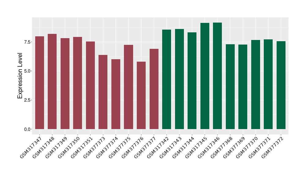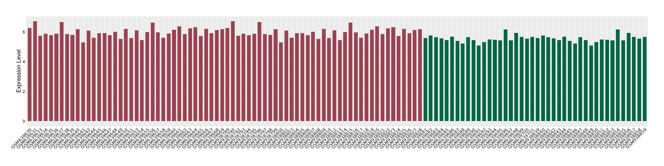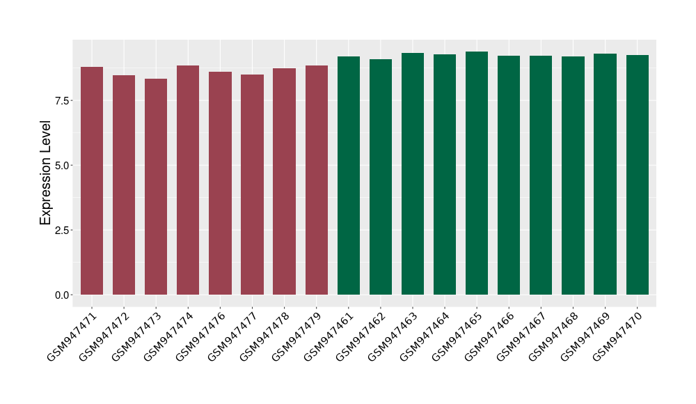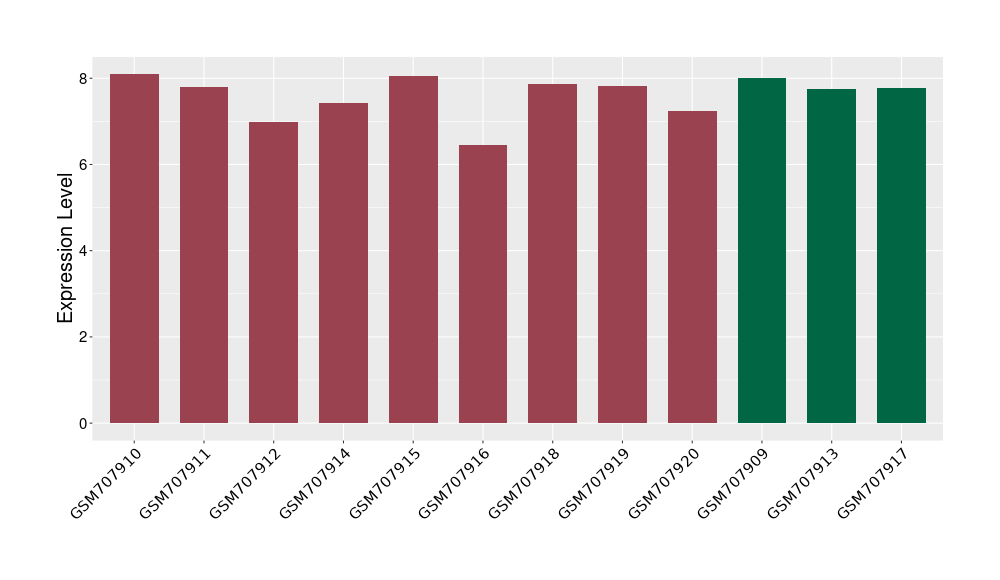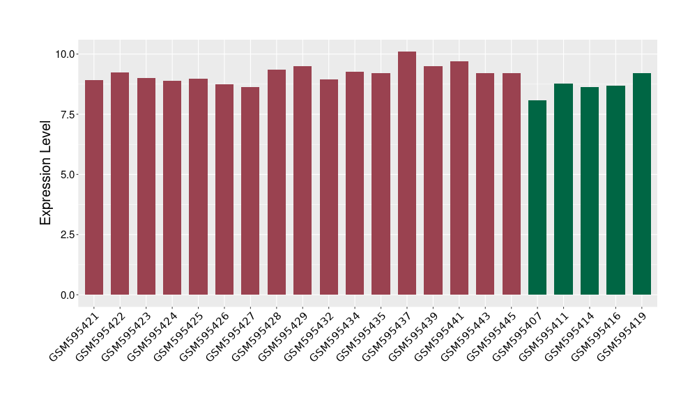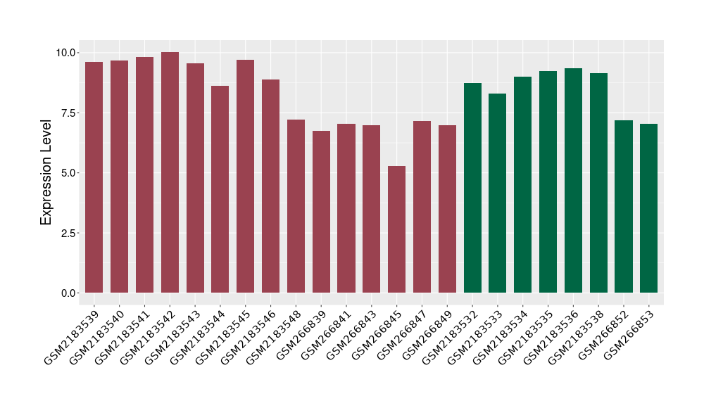 The Expression Level of Disease Section Compare with the Healthy Individual Tissue | p-value:4.12E-10; Fold-change:-0.338977908; Z-score:-0.840578438 | ||||