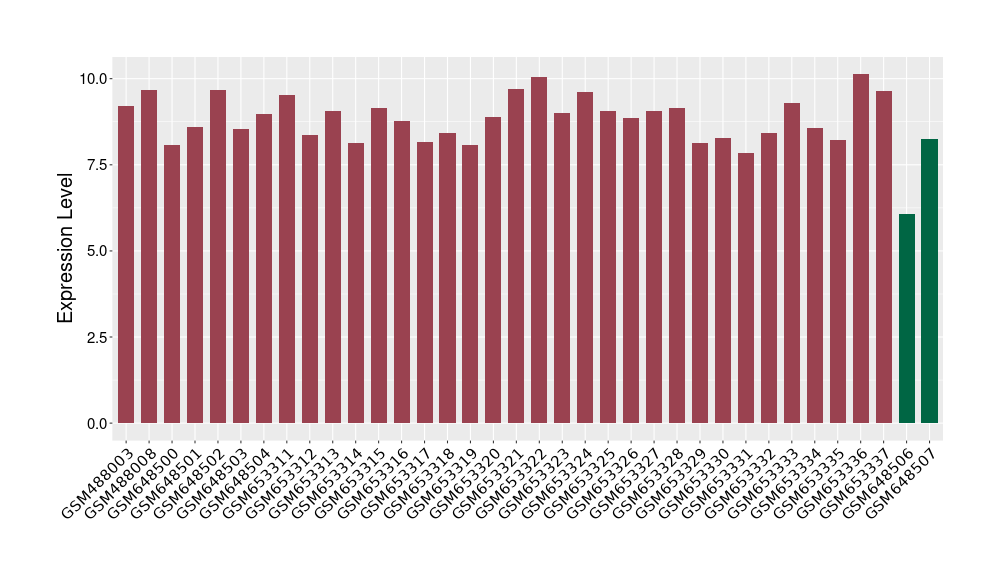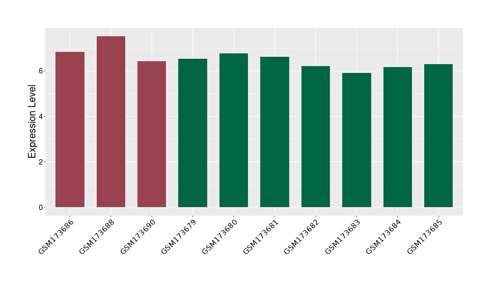 The Expression Level of Disease Section Compare with the Healthy Individual Tissue | p-value:0.000233737; Fold-change:-0.464265449; Z-score:-1.394597942 | ||||