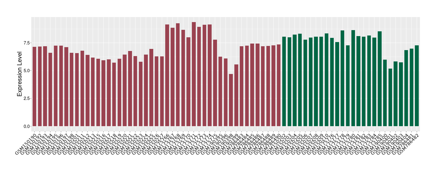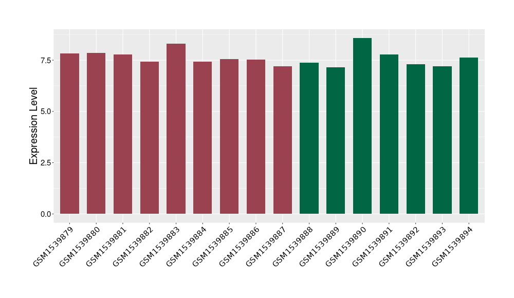 The Expression Level of Disease Section Compare with the Healthy Individual Tissue | p-value:0.14950086; Fold-change:-0.06697609; Z-score:-0.266115004 | ||||