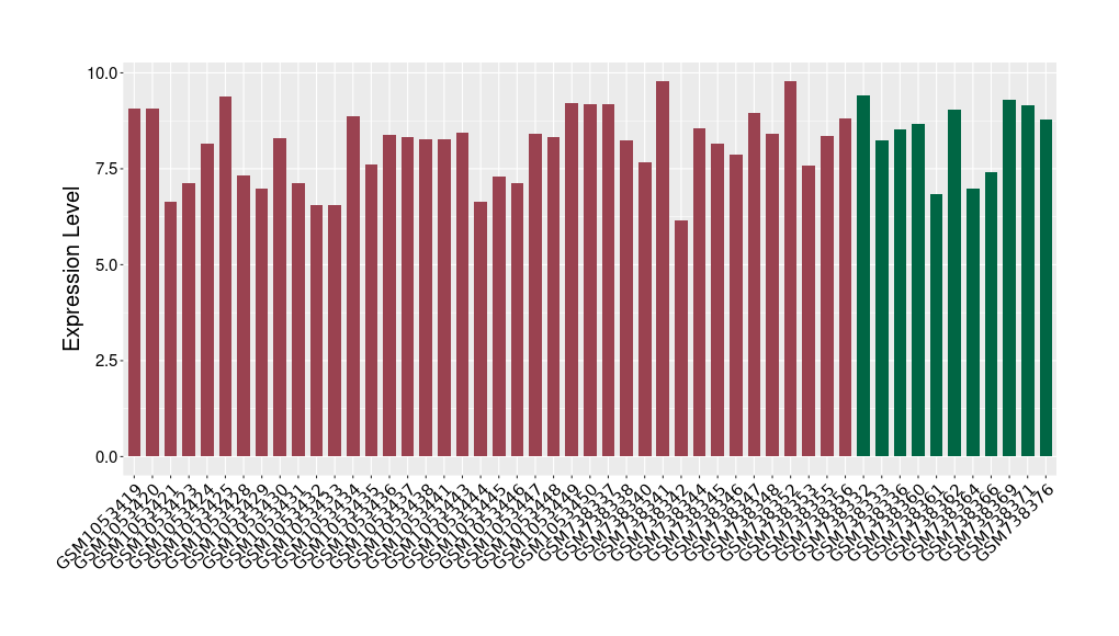 The Expression Level of Disease Section Compare with the Healthy Individual Tissue | p-value:0.039067695; Fold-change:0.520229648; Z-score:1.302639634 | ||||