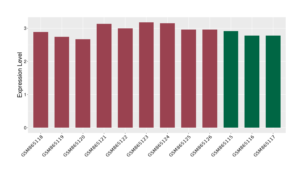 The Expression Level of Disease Section Compare with the Healthy Individual Tissue | p-value:0.355515513; Fold-change:1.760803165; Z-score:1.141612894 | ||||