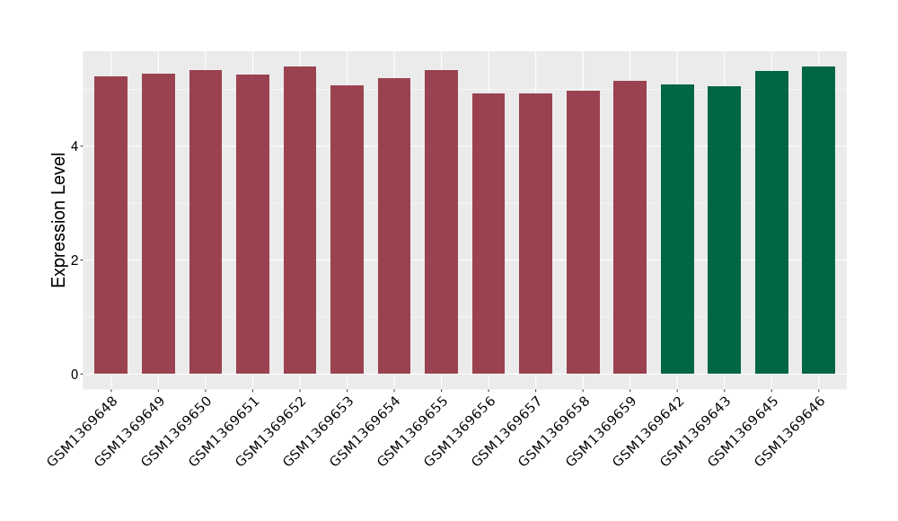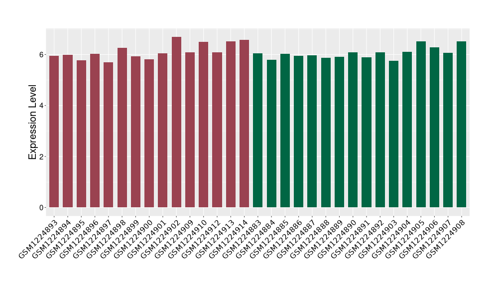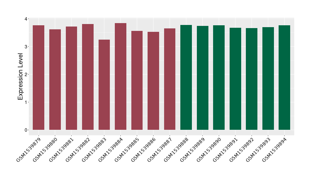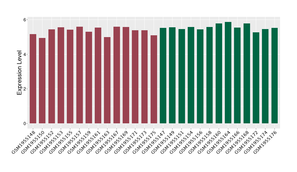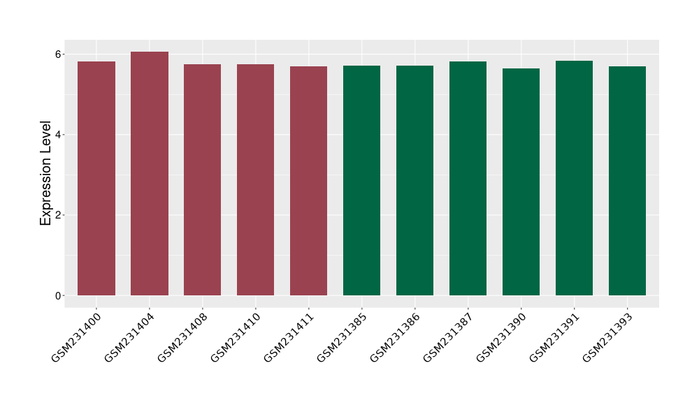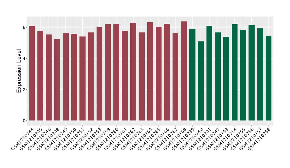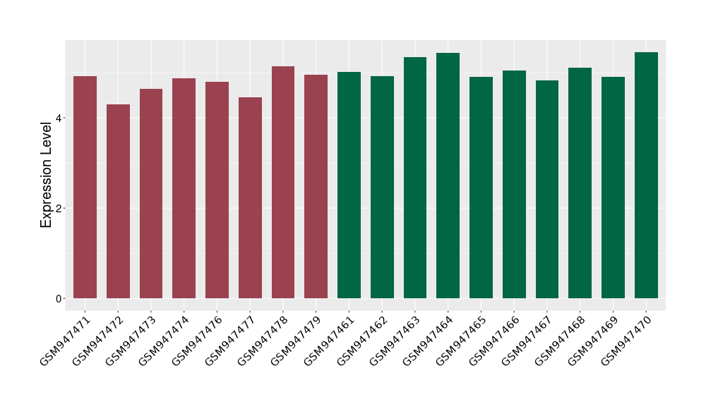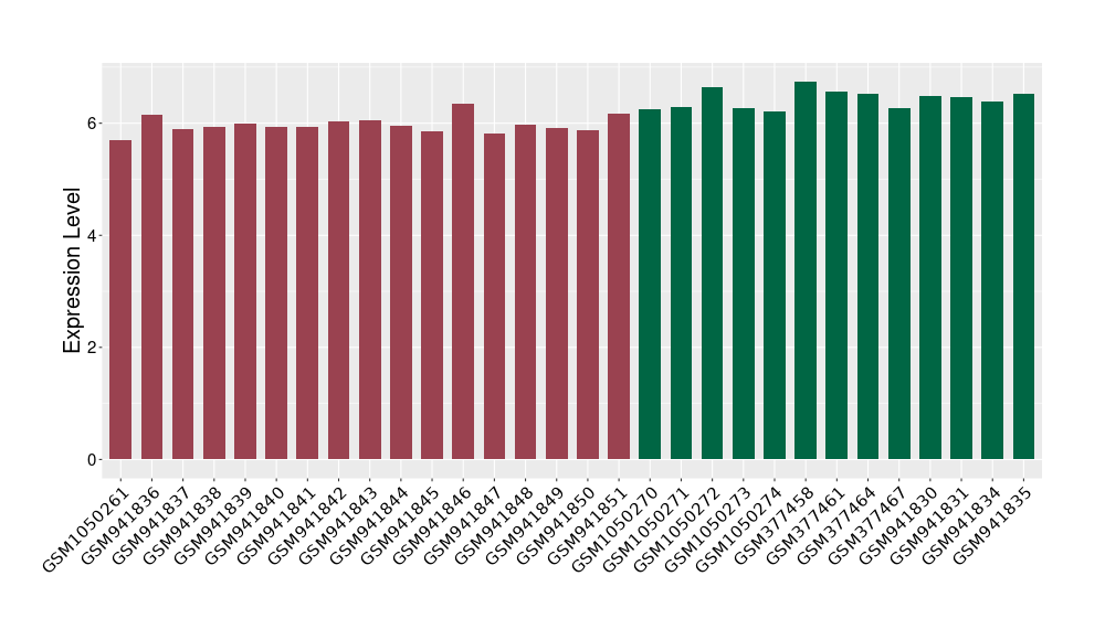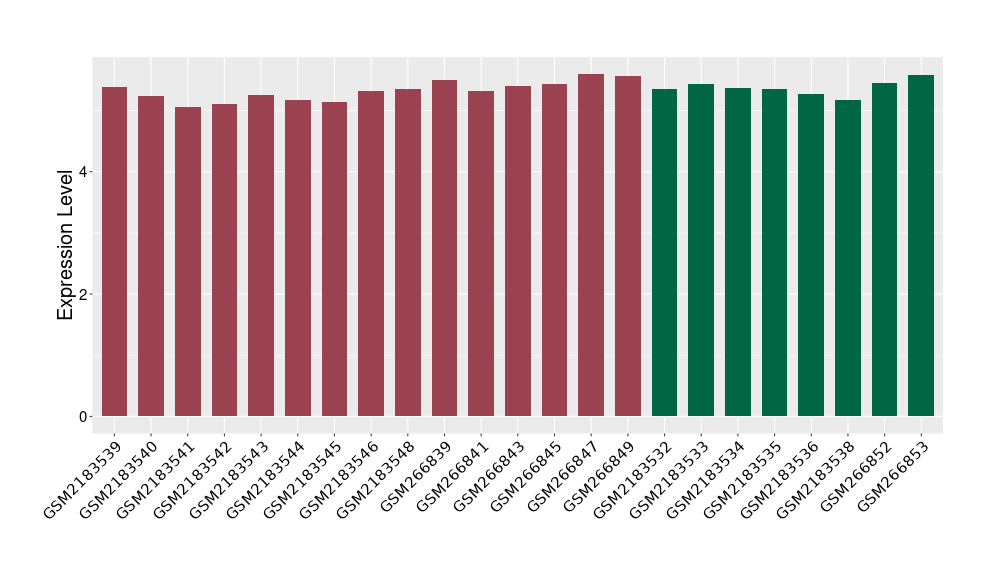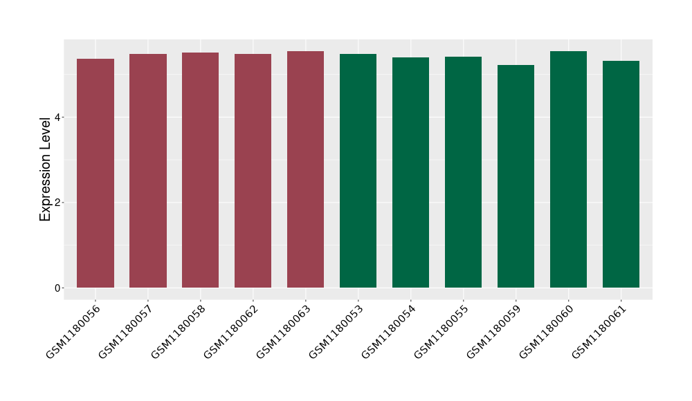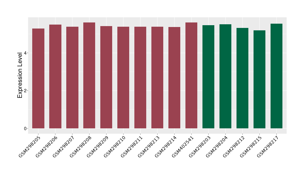 The Expression Level of Disease Section Compare with the Healthy Individual Tissue | p-value:0.11428374; Fold-change:-0.0911083; Z-score:-0.303960483 | ||||
